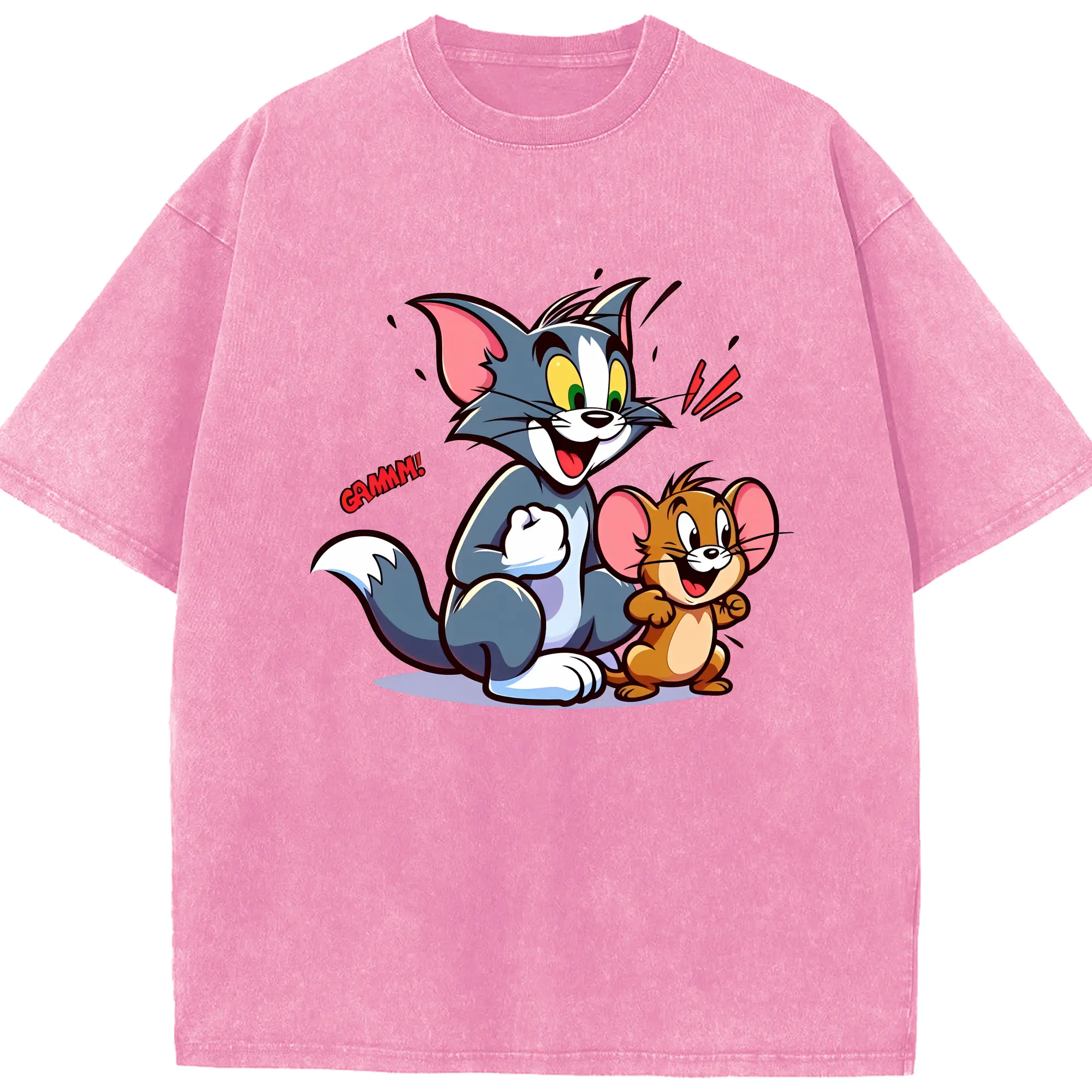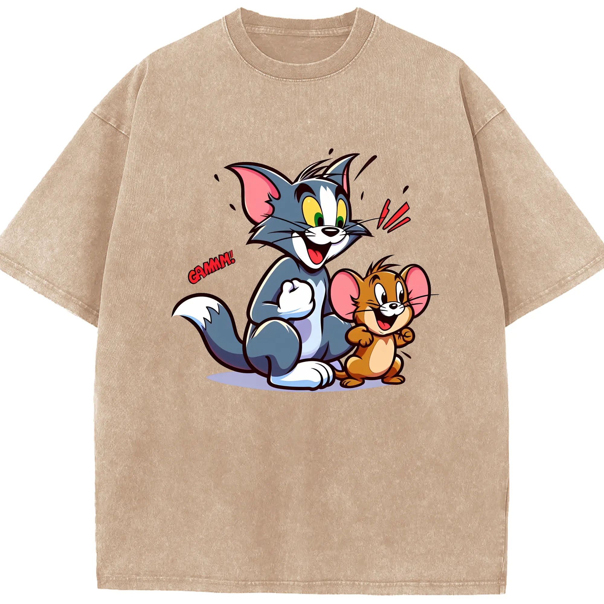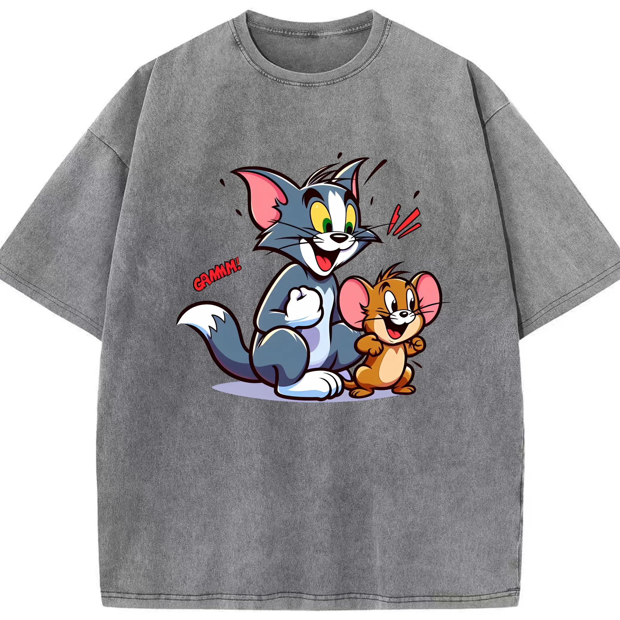 トムとジェリー グッズ ジェリー - 綿100% ヴィンテージ風 半袖Tシャツ ・ 背面プリント ・ 柔らか肌触り ・ 通気性 快適 ・ スポーツ カジュアル 外出用