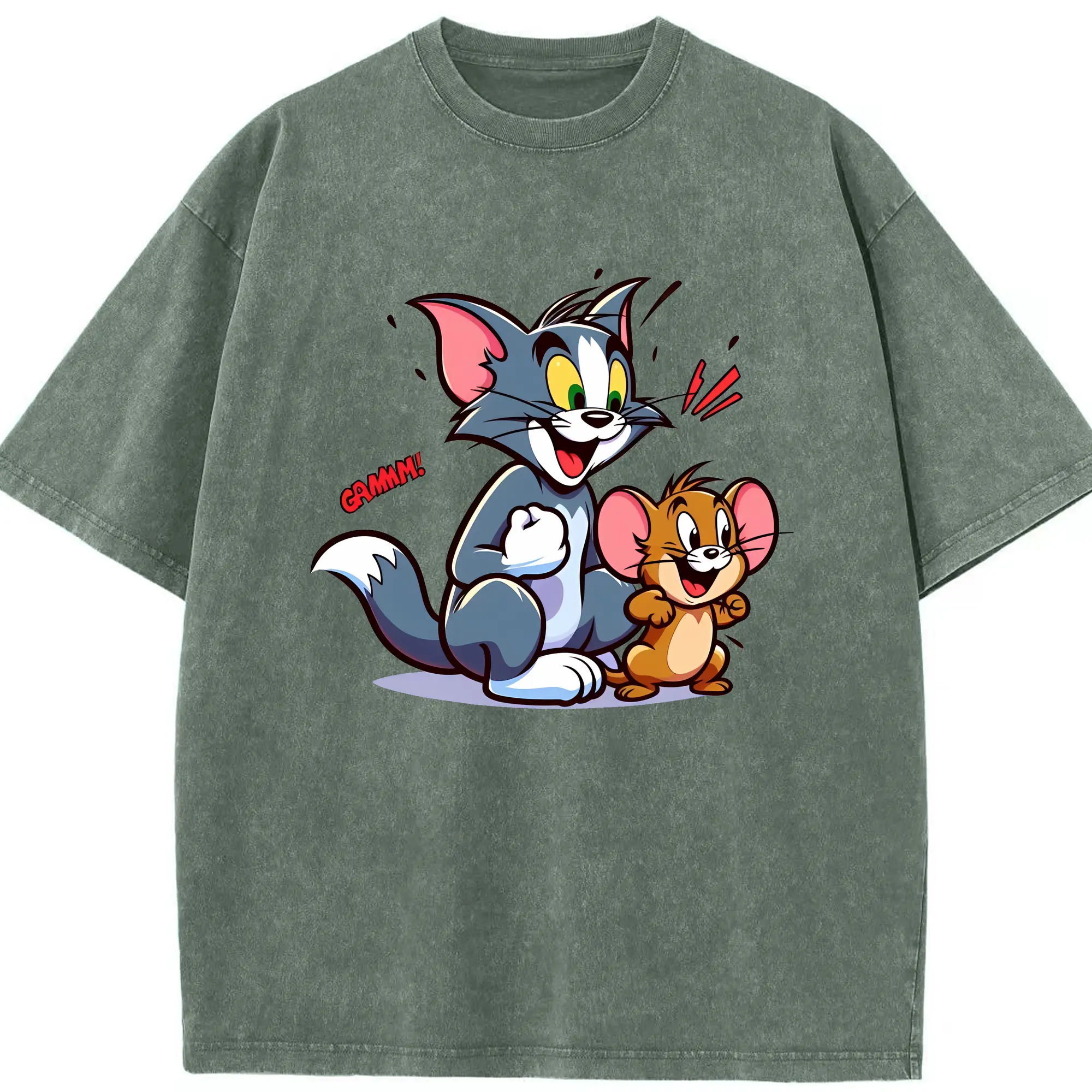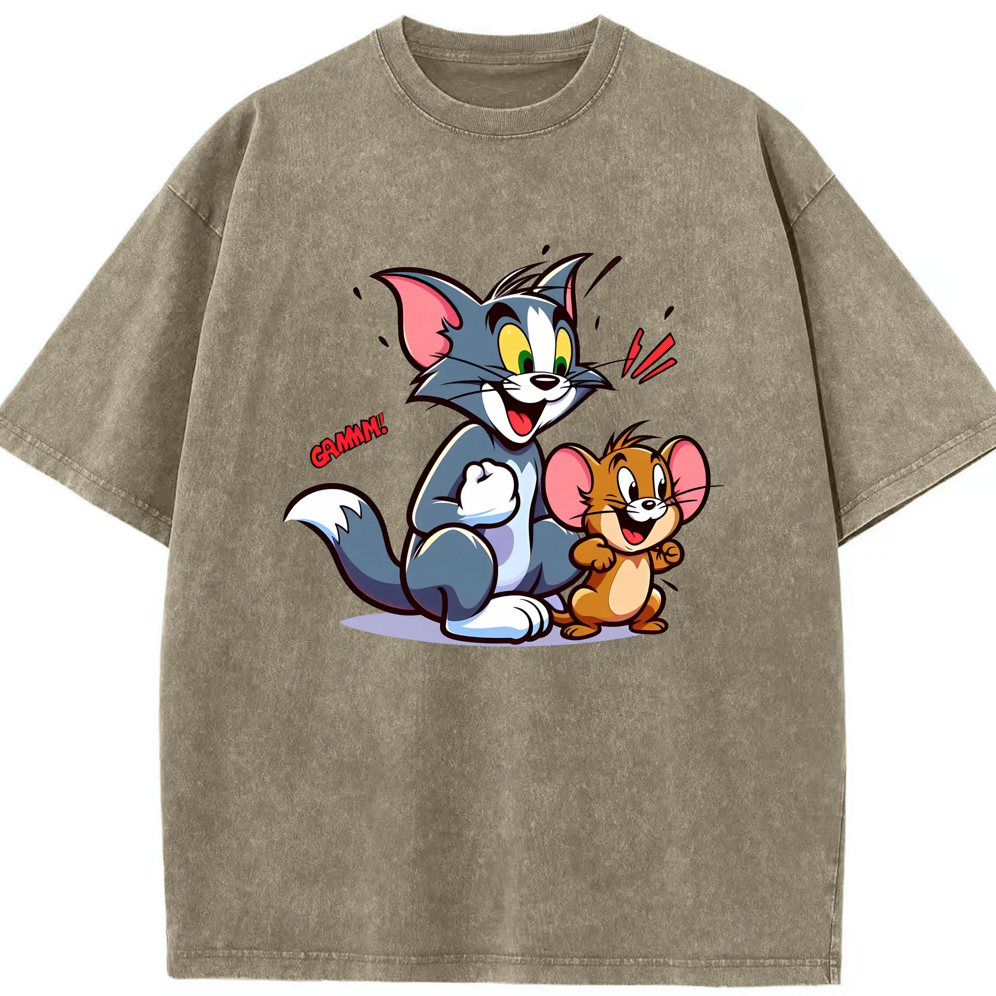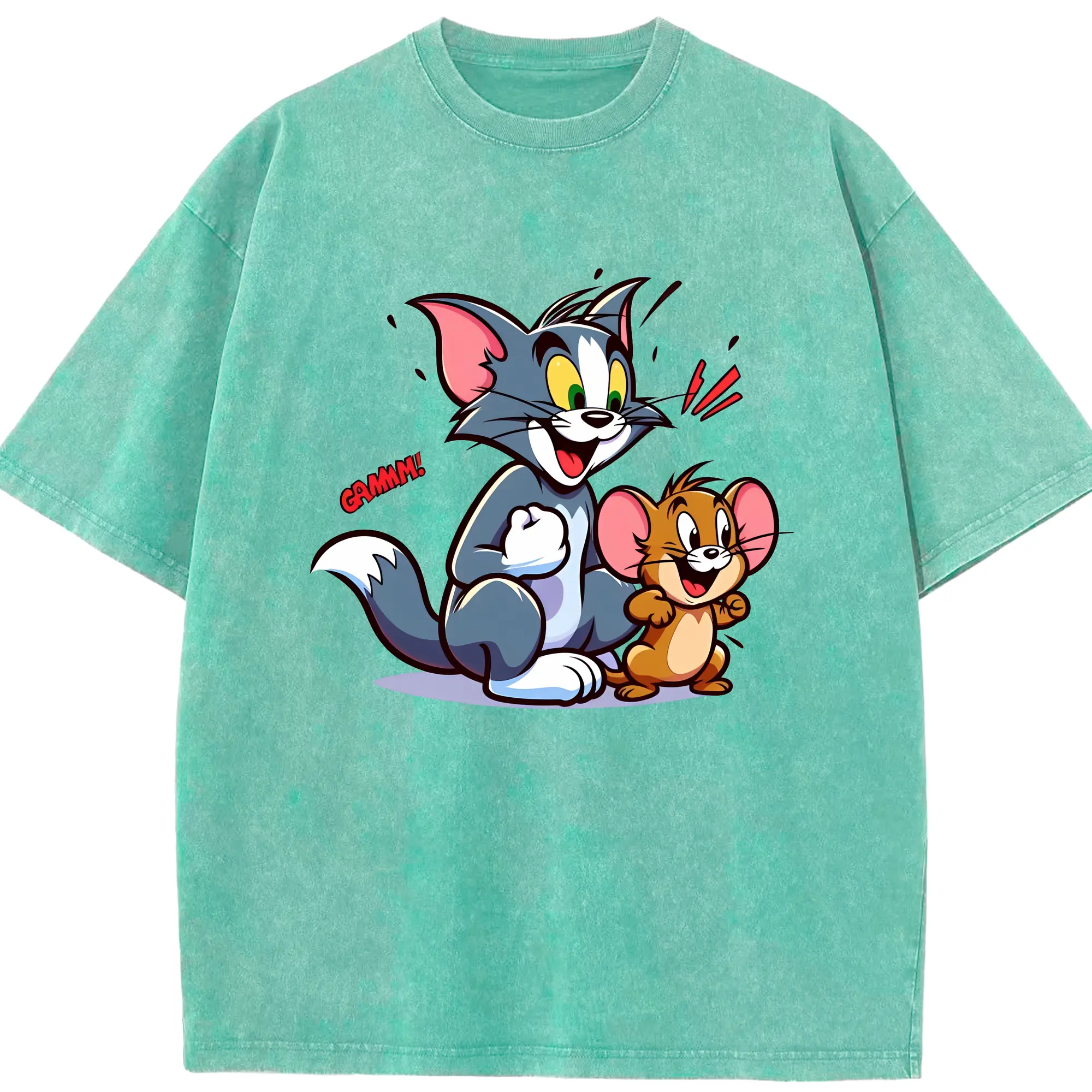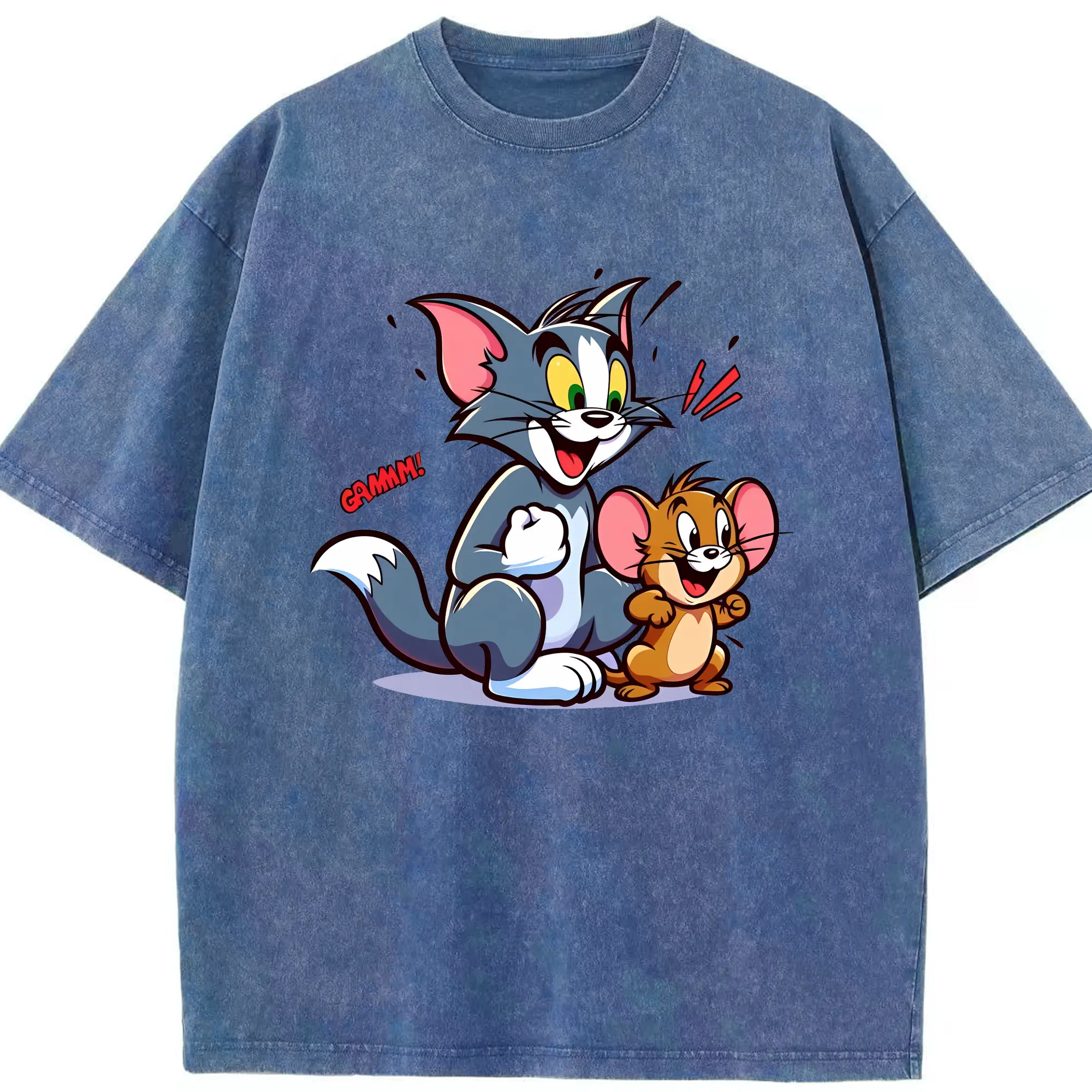 トムとジェリー グッズ ジェリー - 綿100% ヴィンテージ風 半袖Tシャツ ・ 背面プリント ・ 柔らか肌触り ・ 通気性 快適 ・ スポーツ カジュアル 外出用
