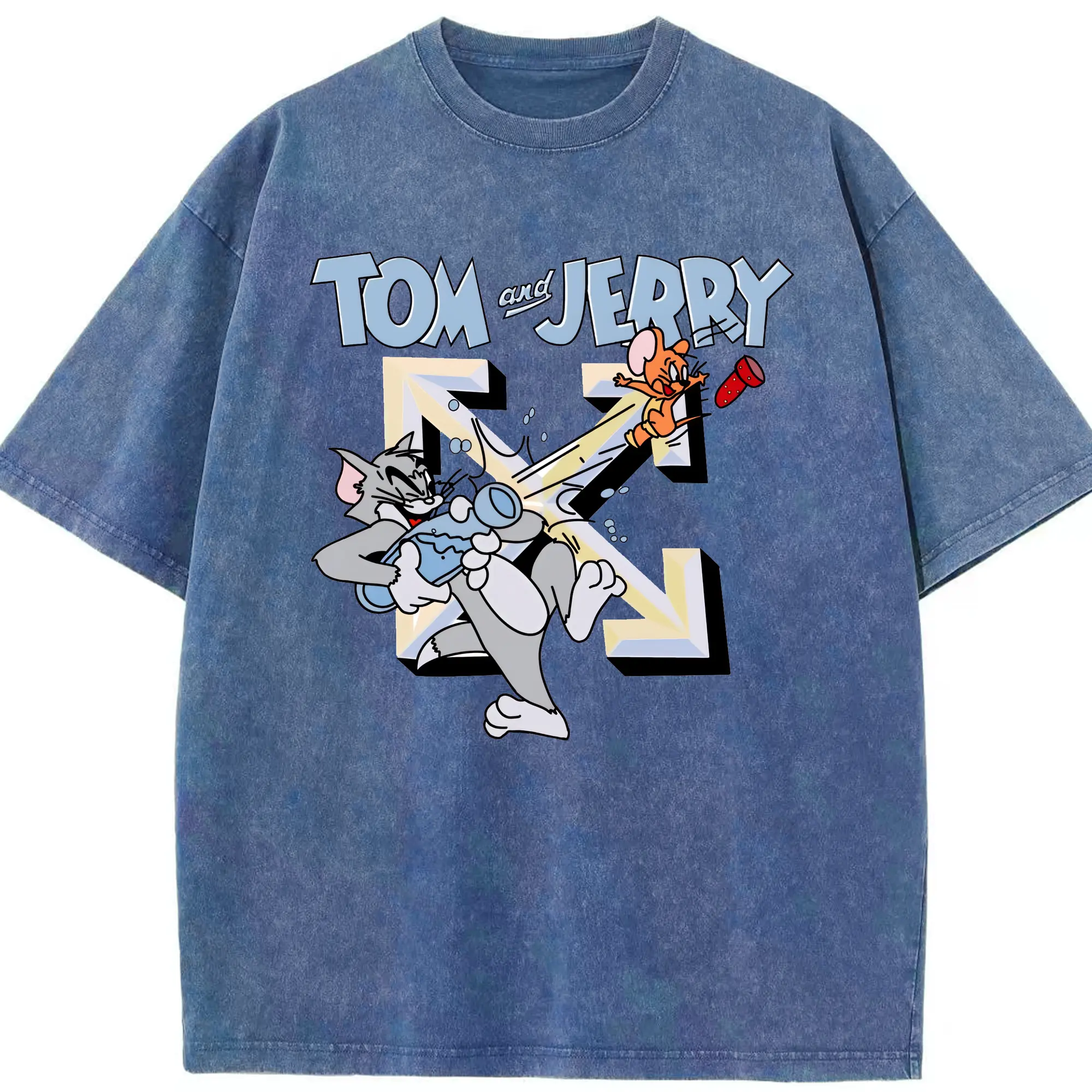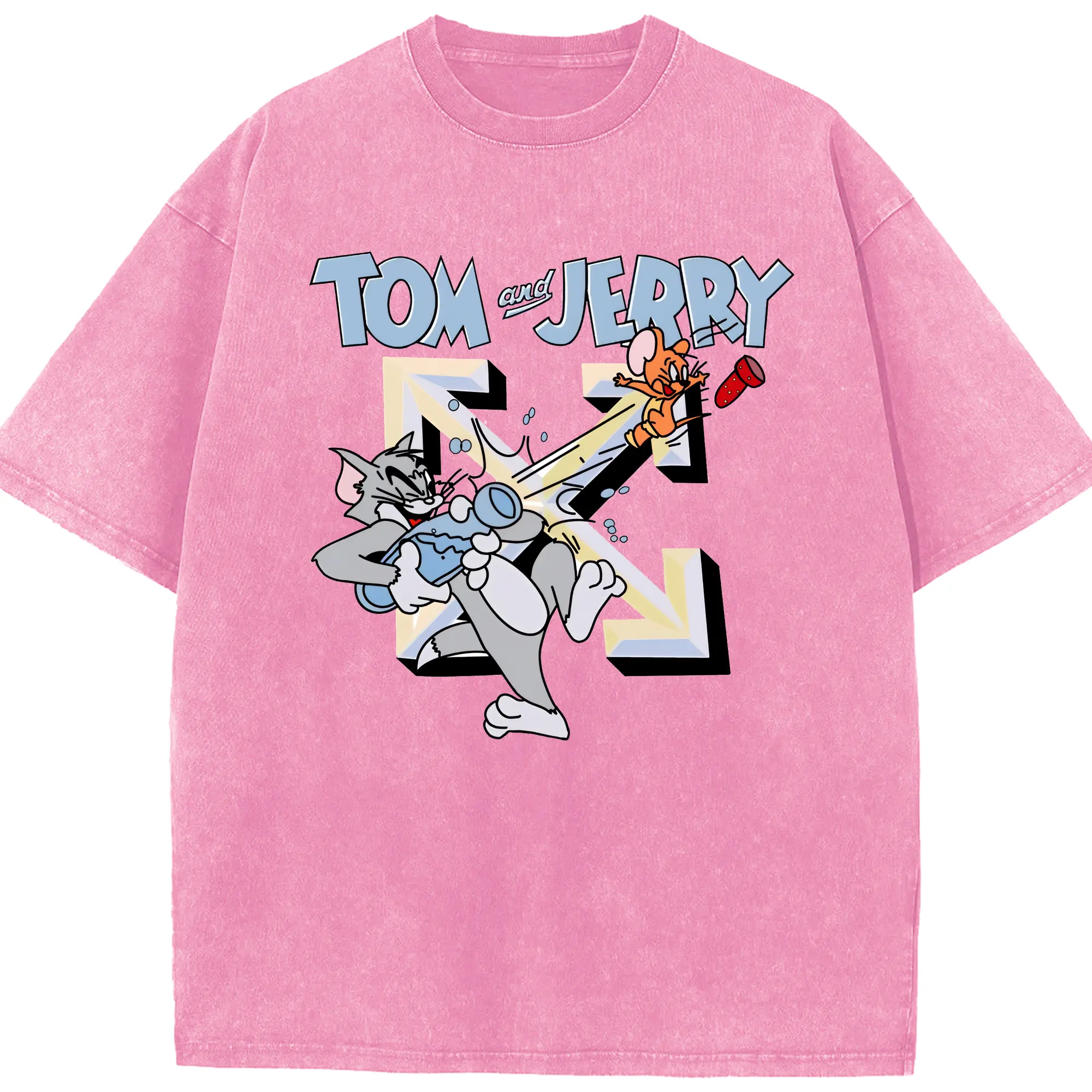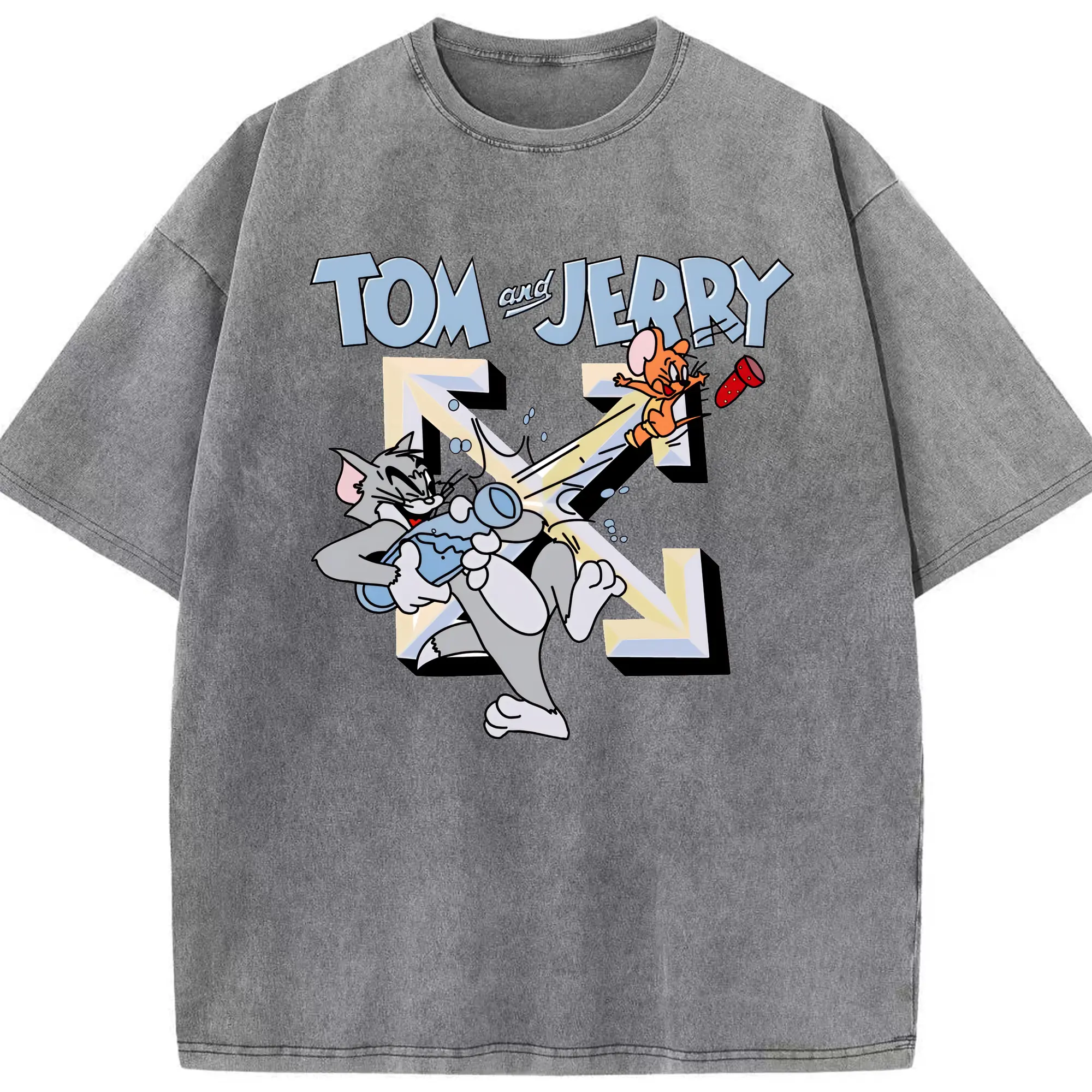 トムとジェリー グッズ ジェリー - 綿100% ヴィンテージ風 半袖Tシャツ ・ 背面プリント ・ 柔らか肌触り ・ 通気性 快適 ・ スポーツ カジュアル 外出用