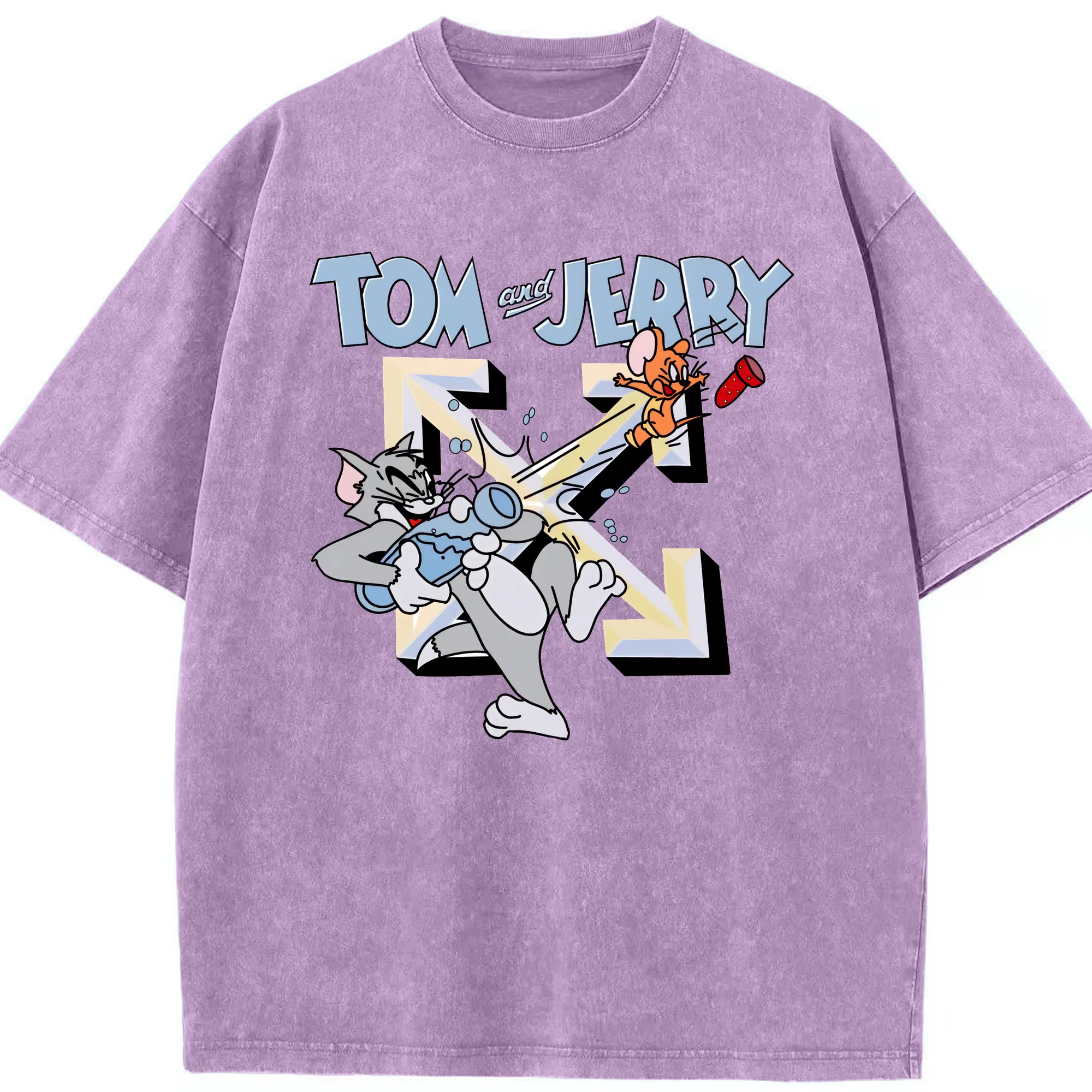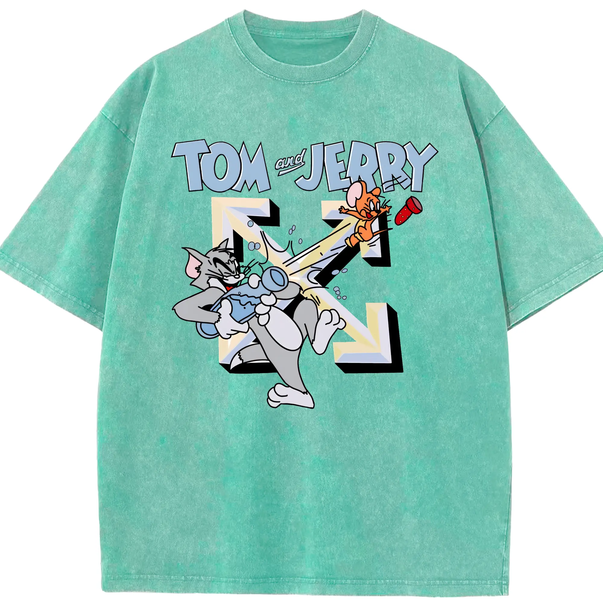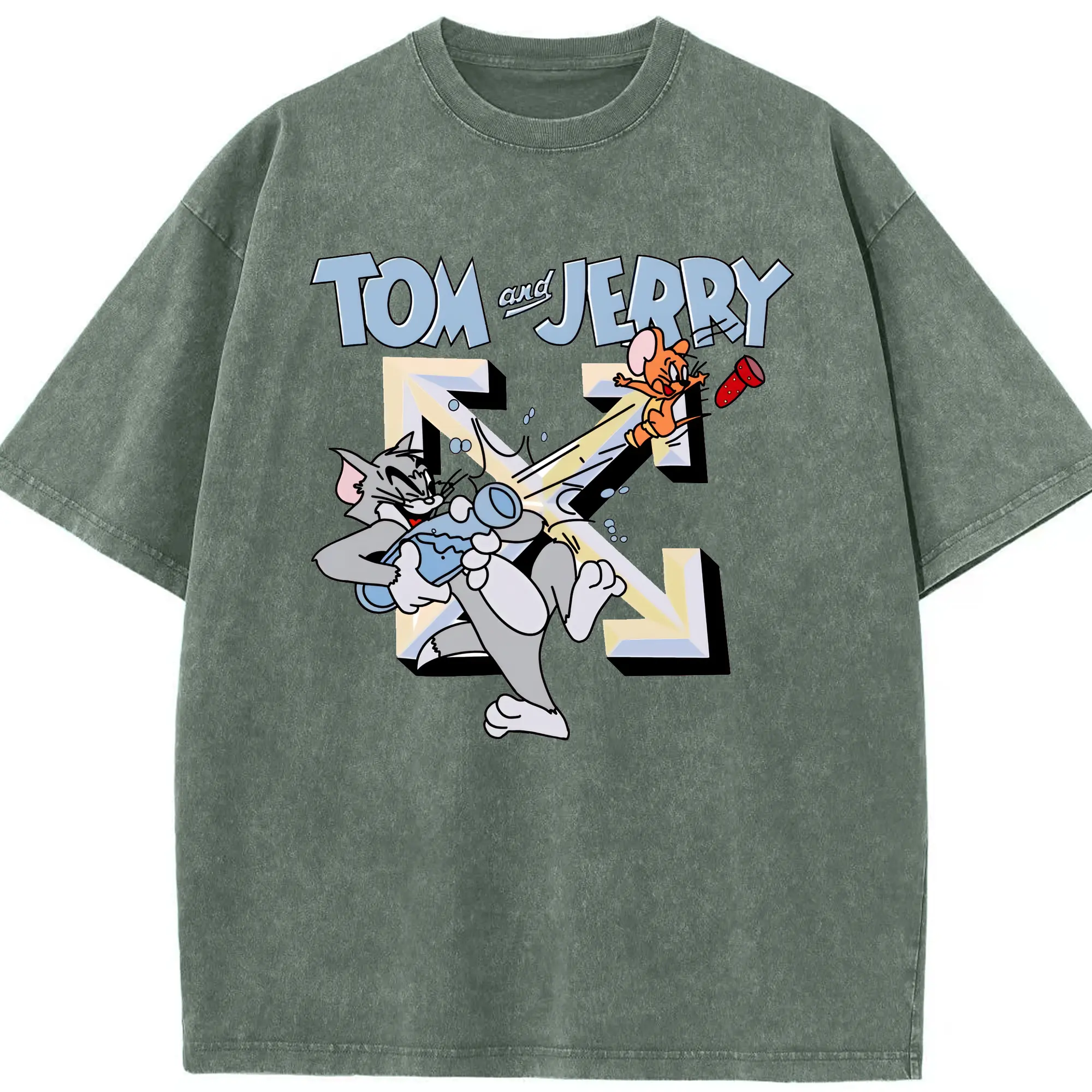 トムとジェリー グッズ ジェリー - 綿100% ヴィンテージ風 半袖Tシャツ ・ 背面プリント ・ 柔らか肌触り ・ 通気性 快適 ・ スポーツ カジュアル 外出用