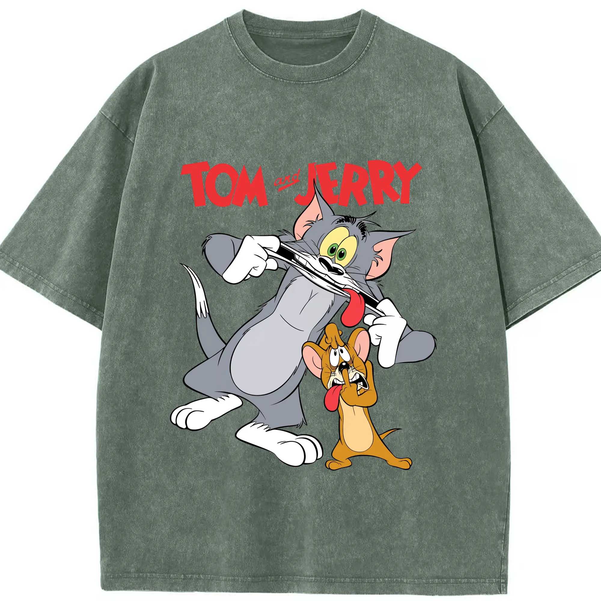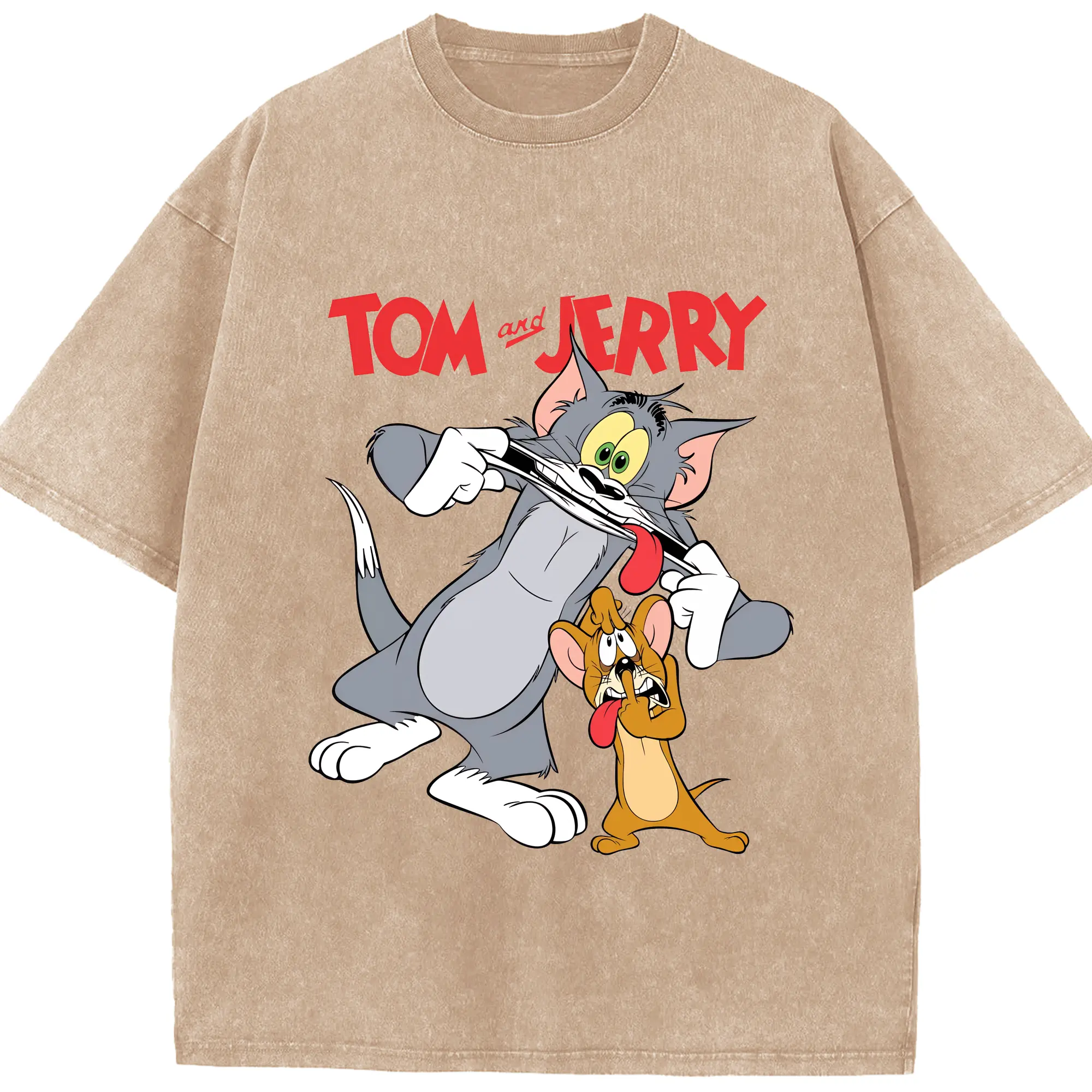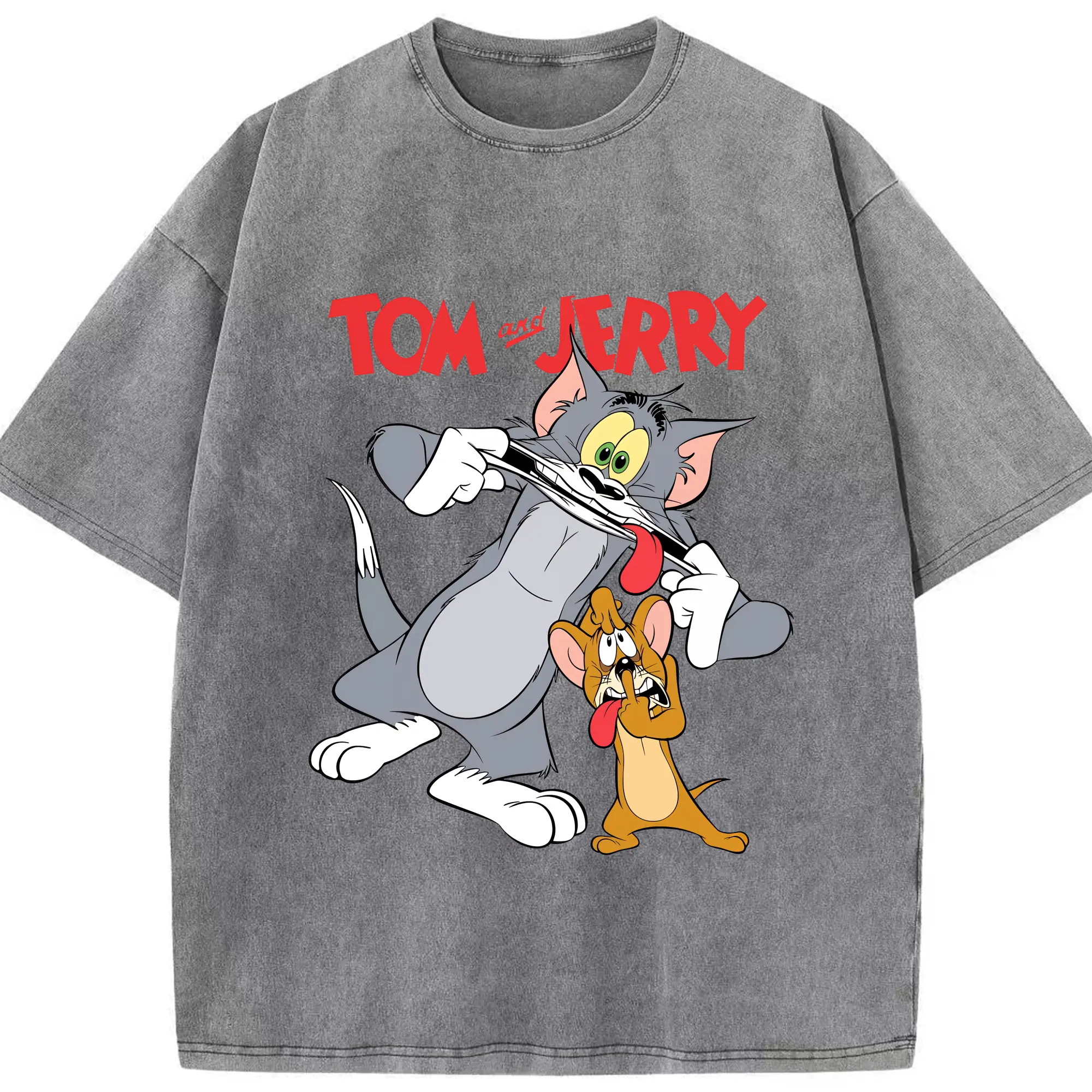 トムとジェリー グッズ ジェリー - 綿100% ヴィンテージ風 半袖Tシャツ ・ 背面プリント ・ 柔らか肌触り ・ 通気性 快適 ・ スポーツ カジュアル 外出用