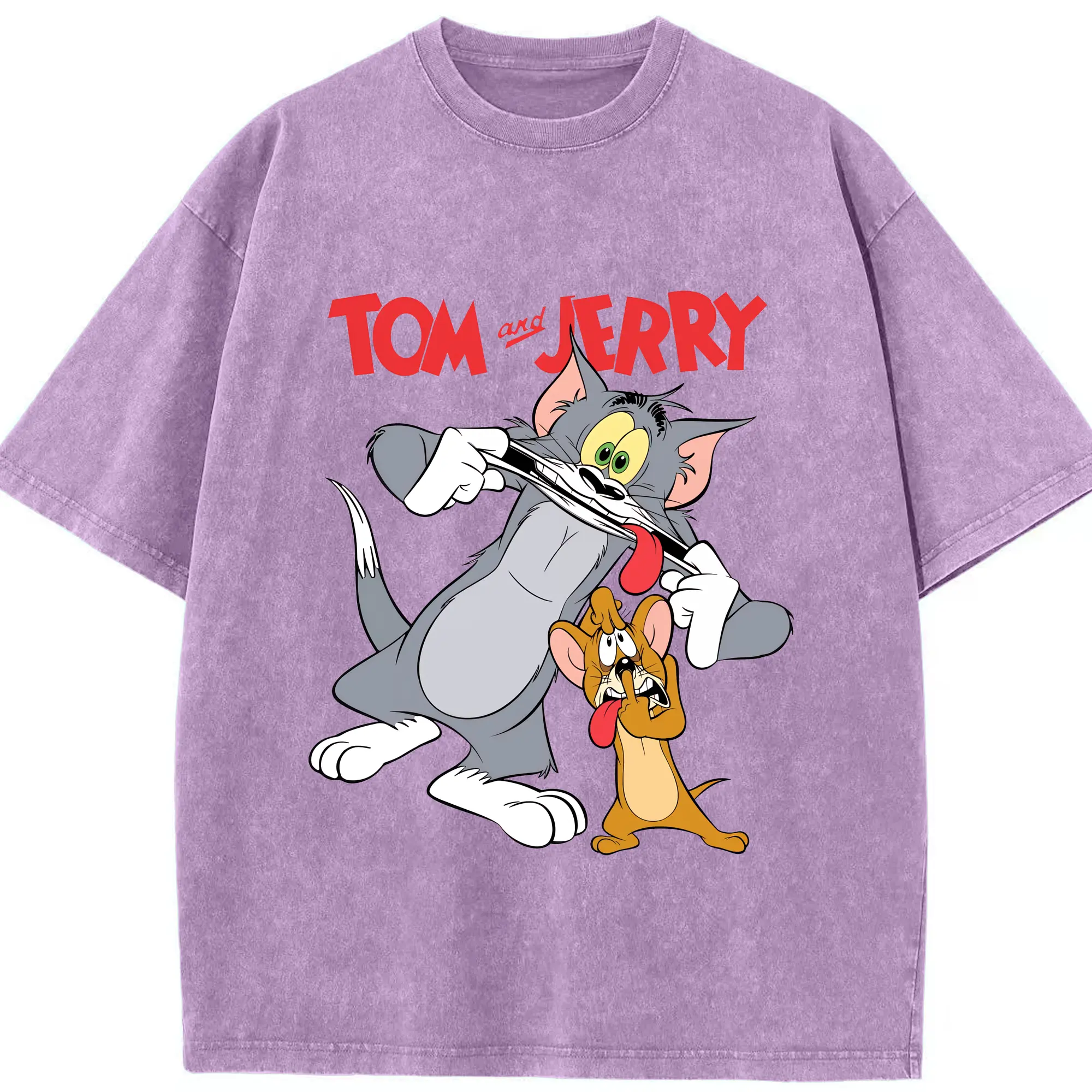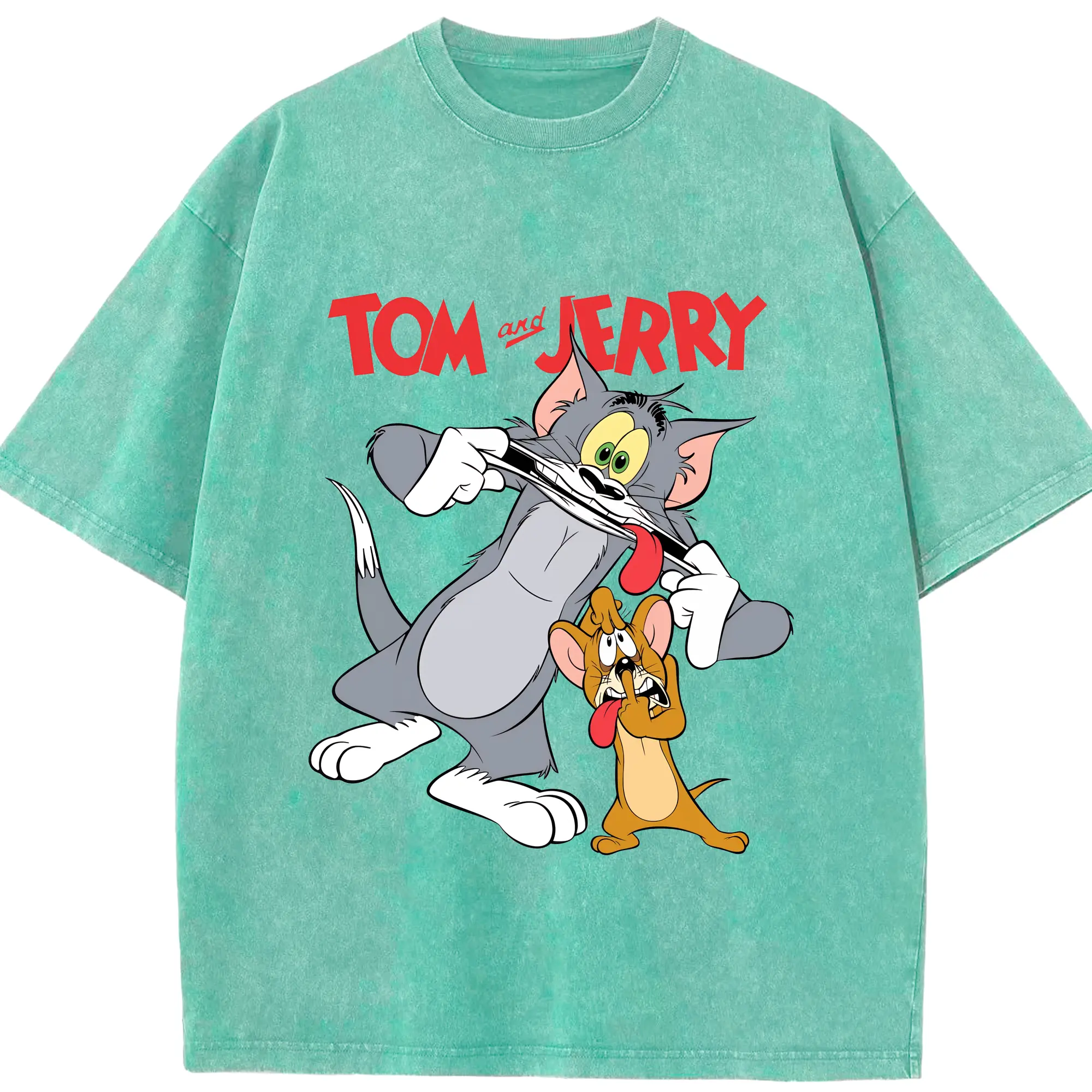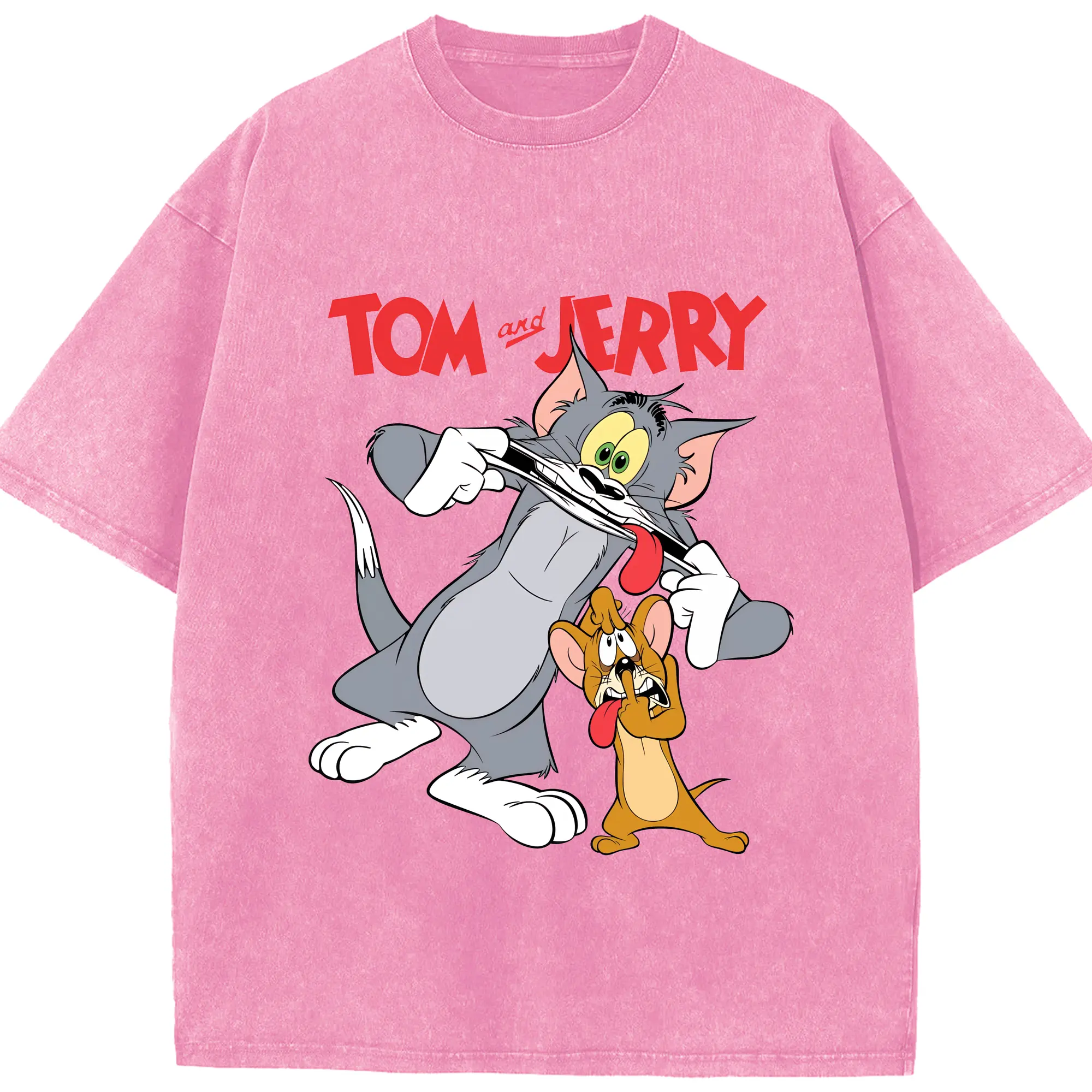 トムとジェリー グッズ ジェリー - 綿100% ヴィンテージ風 半袖Tシャツ ・ 背面プリント ・ 柔らか肌触り ・ 通気性 快適 ・ スポーツ カジュアル 外出用