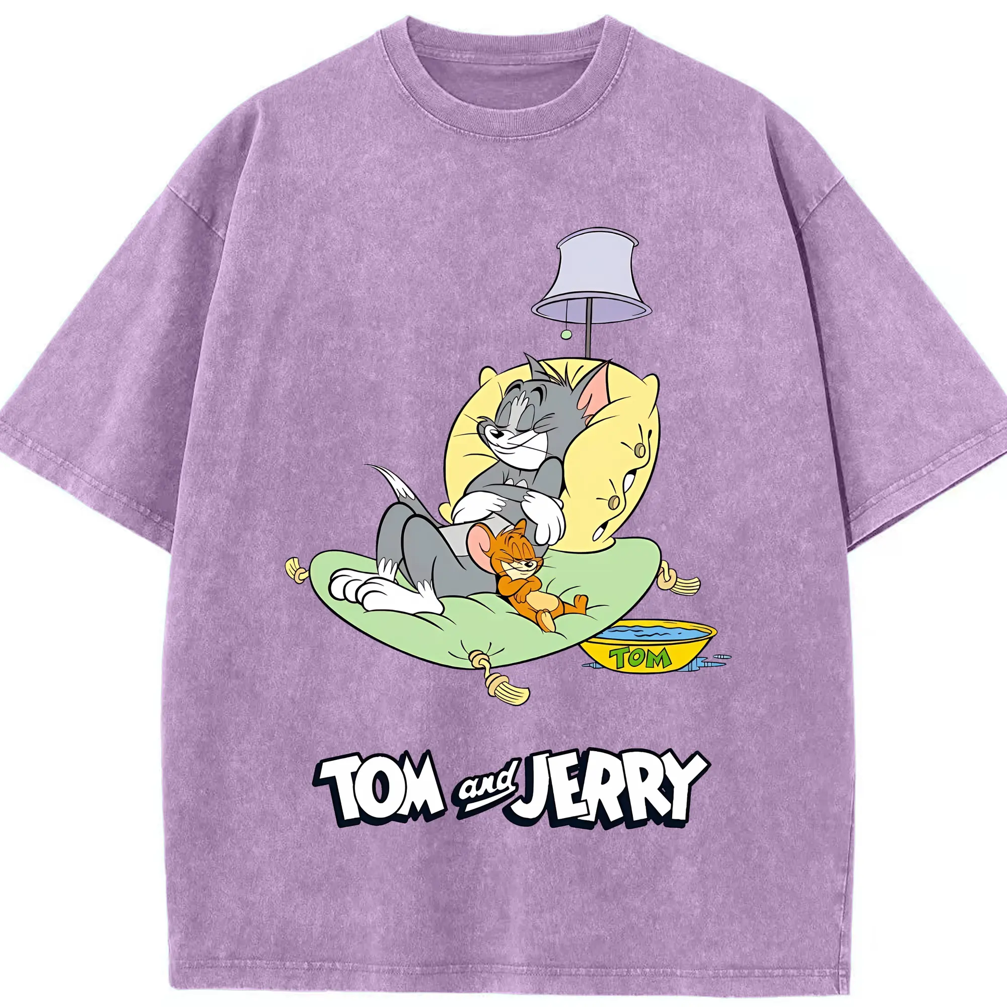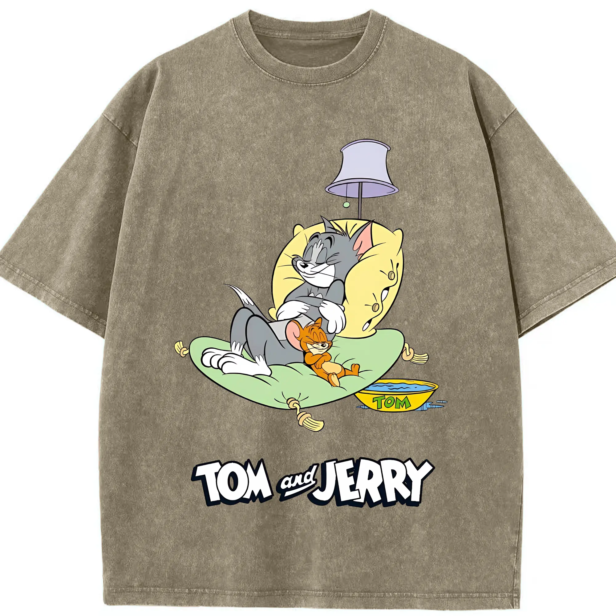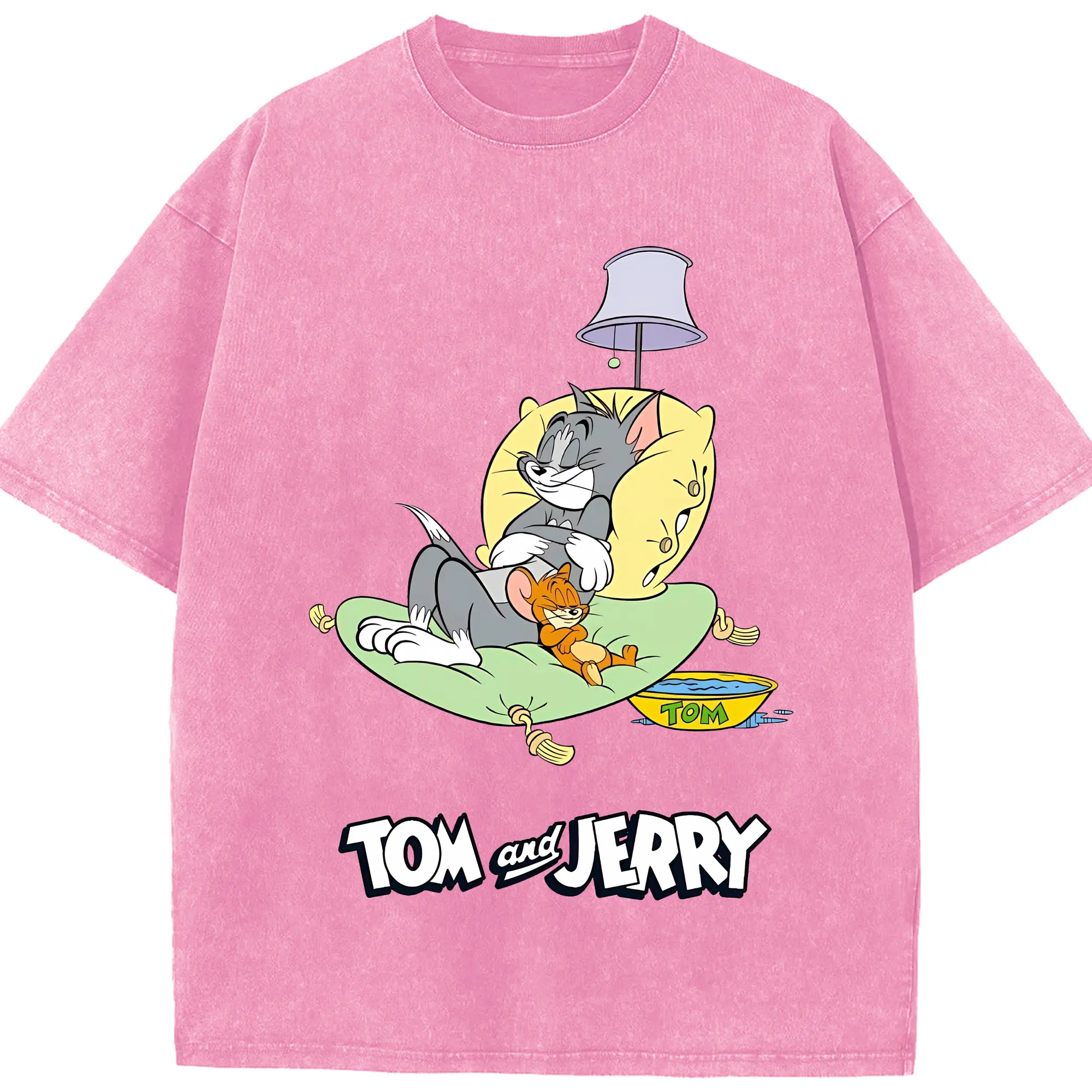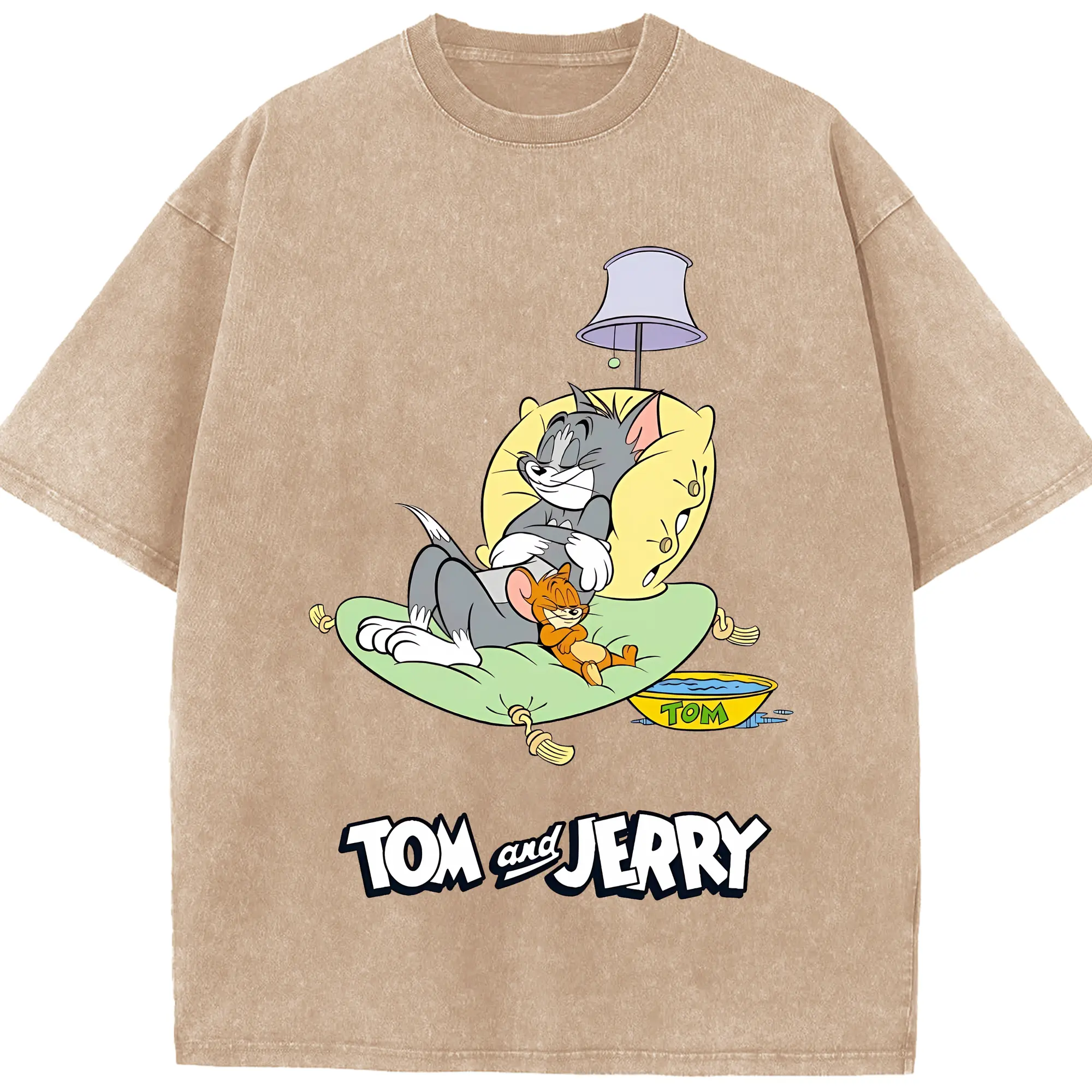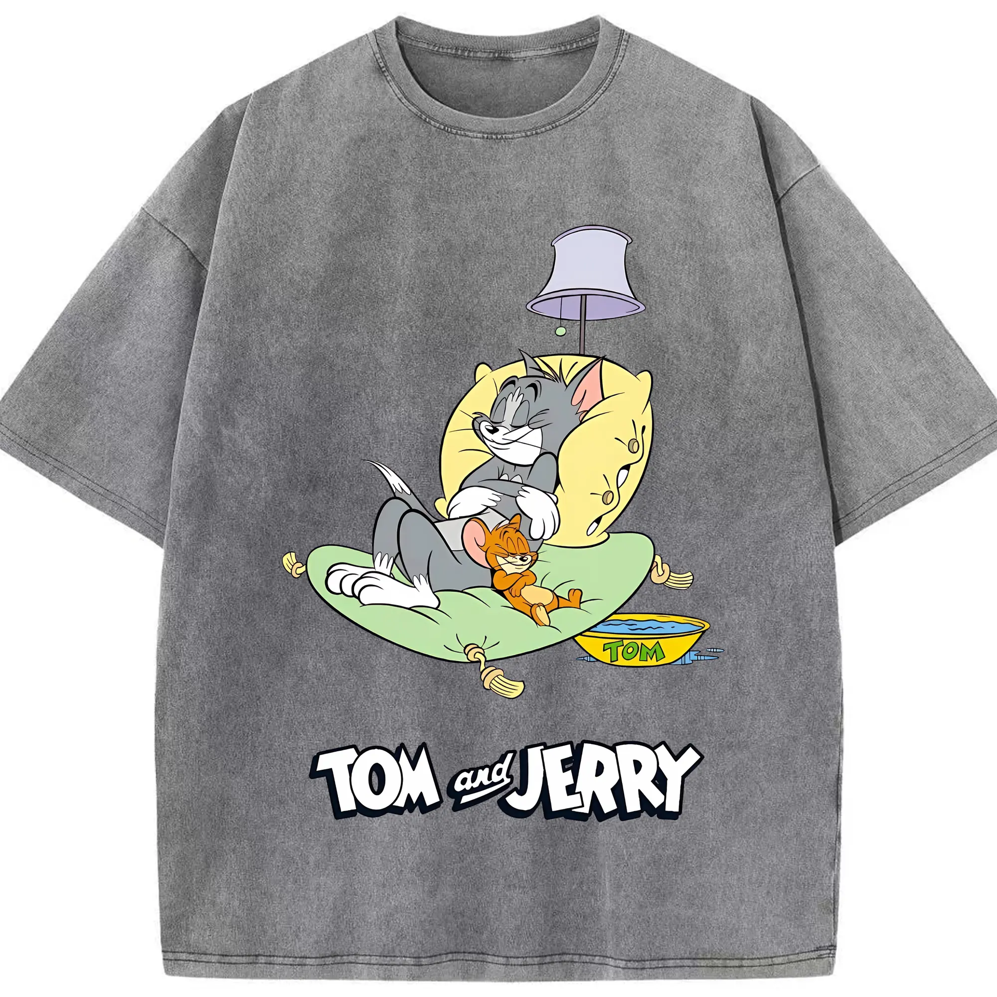 トムとジェリー グッズ ジェリー - 綿100% ヴィンテージ風 半袖Tシャツ ・ 背面プリント ・ 柔らか肌触り ・ 通気性 快適 ・ スポーツ カジュアル 外出用