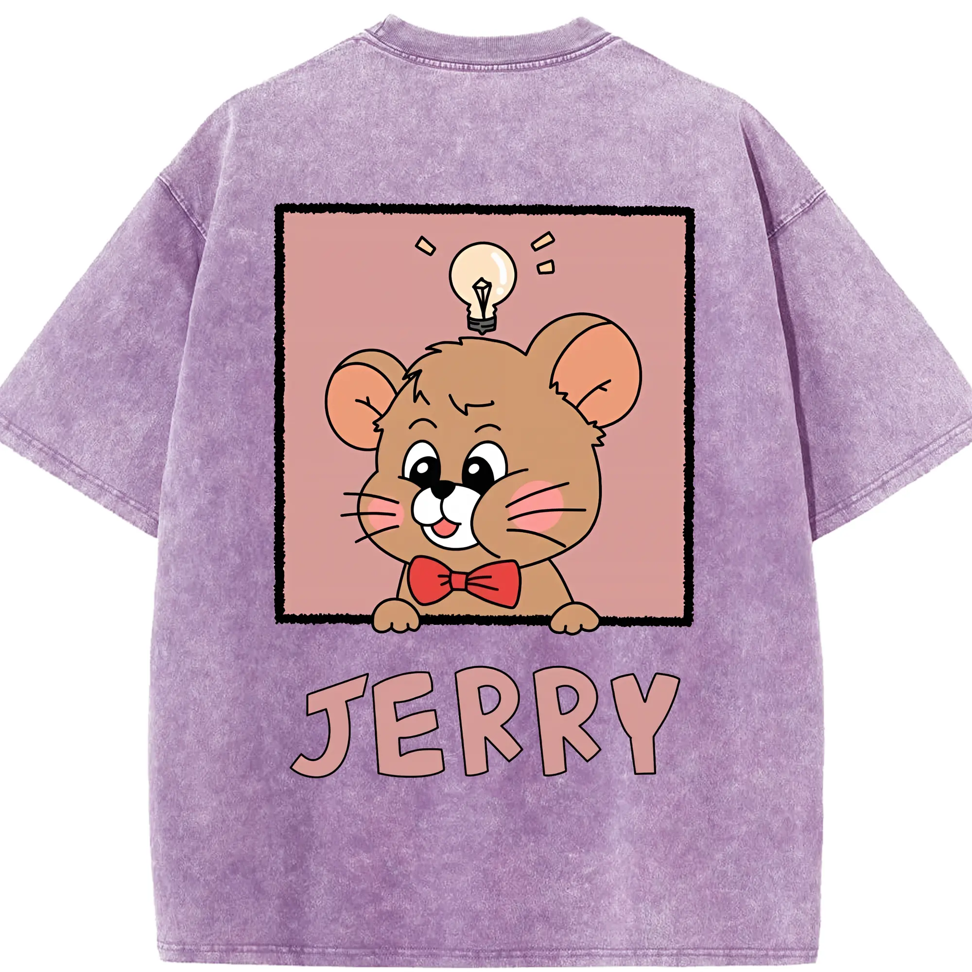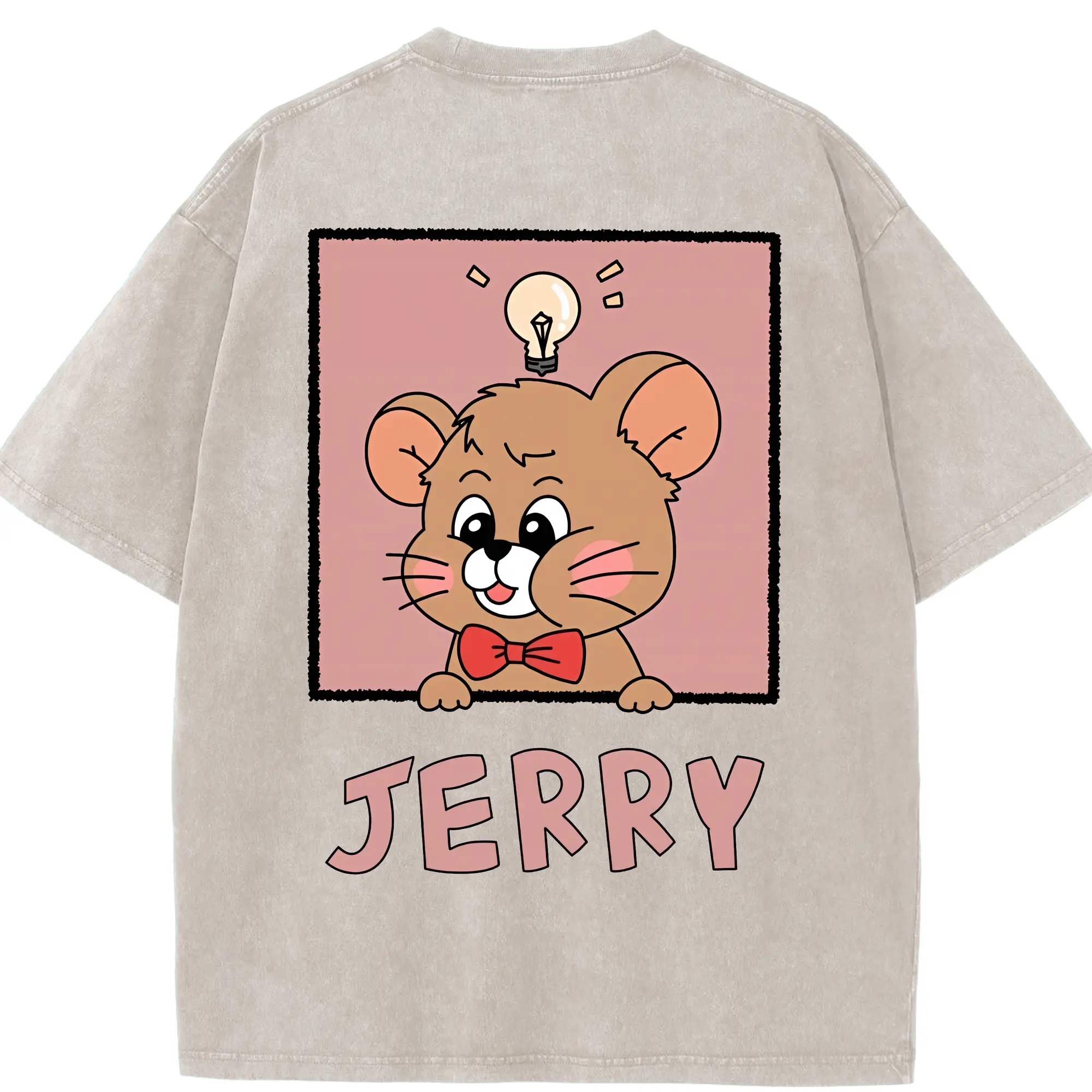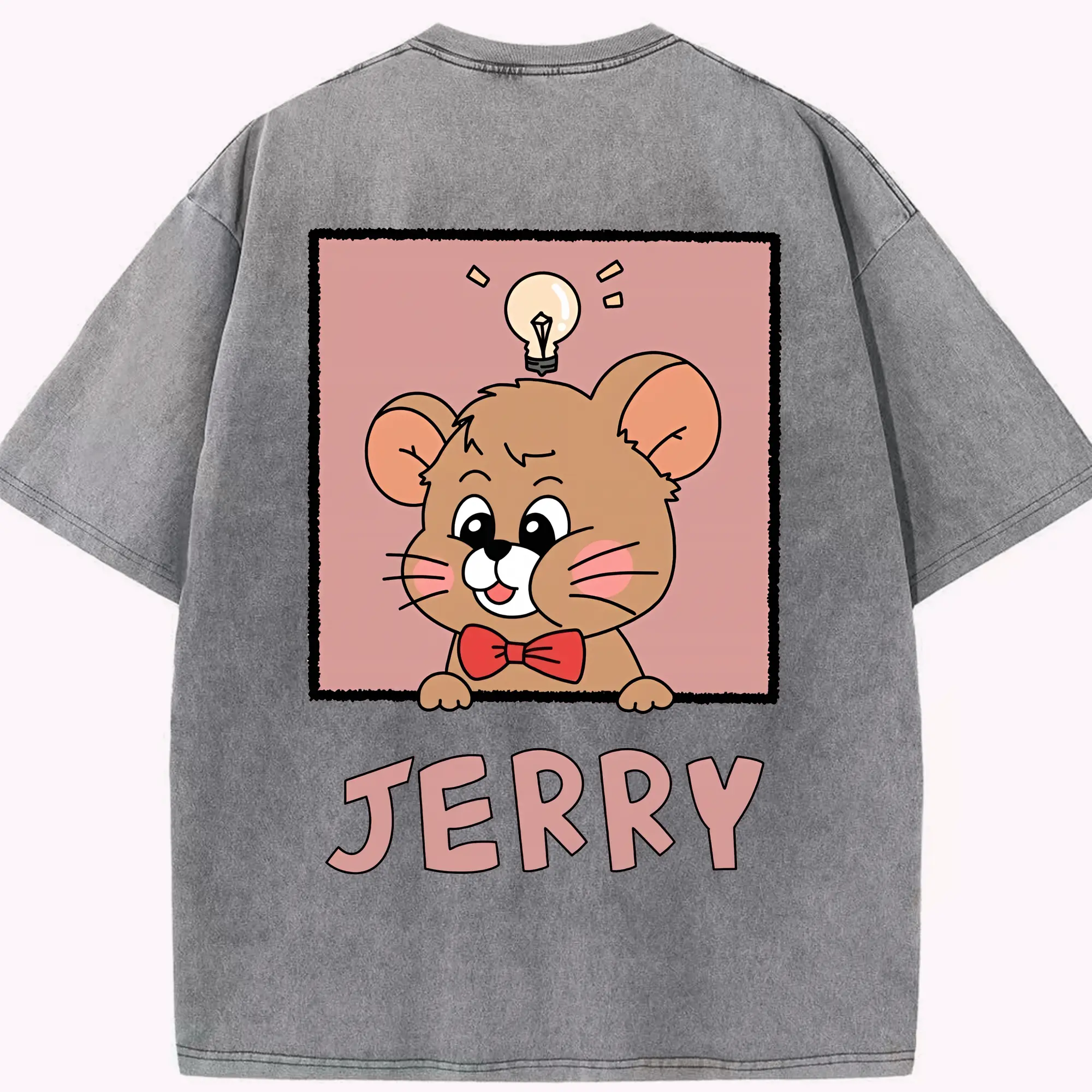 トムとジェリー グッズ ジェリー - 綿100% ヴィンテージ風 半袖Tシャツ ・ フロントプリント ・ 柔らか肌触り ・ 通気性 快適 ・ スポーツ カジュアル 外出用