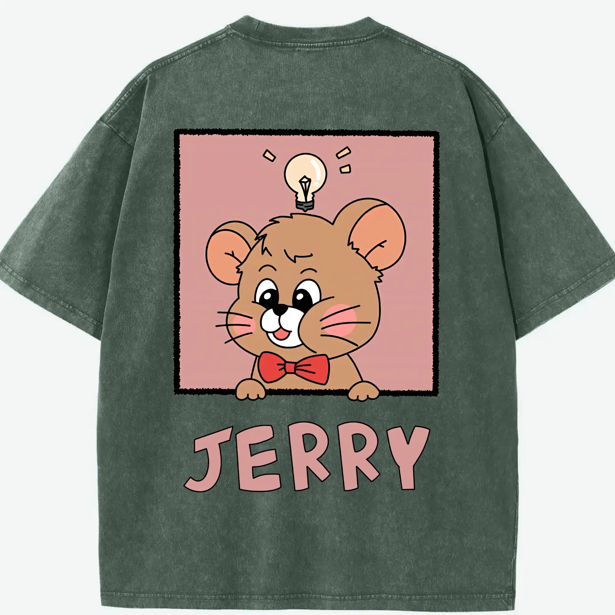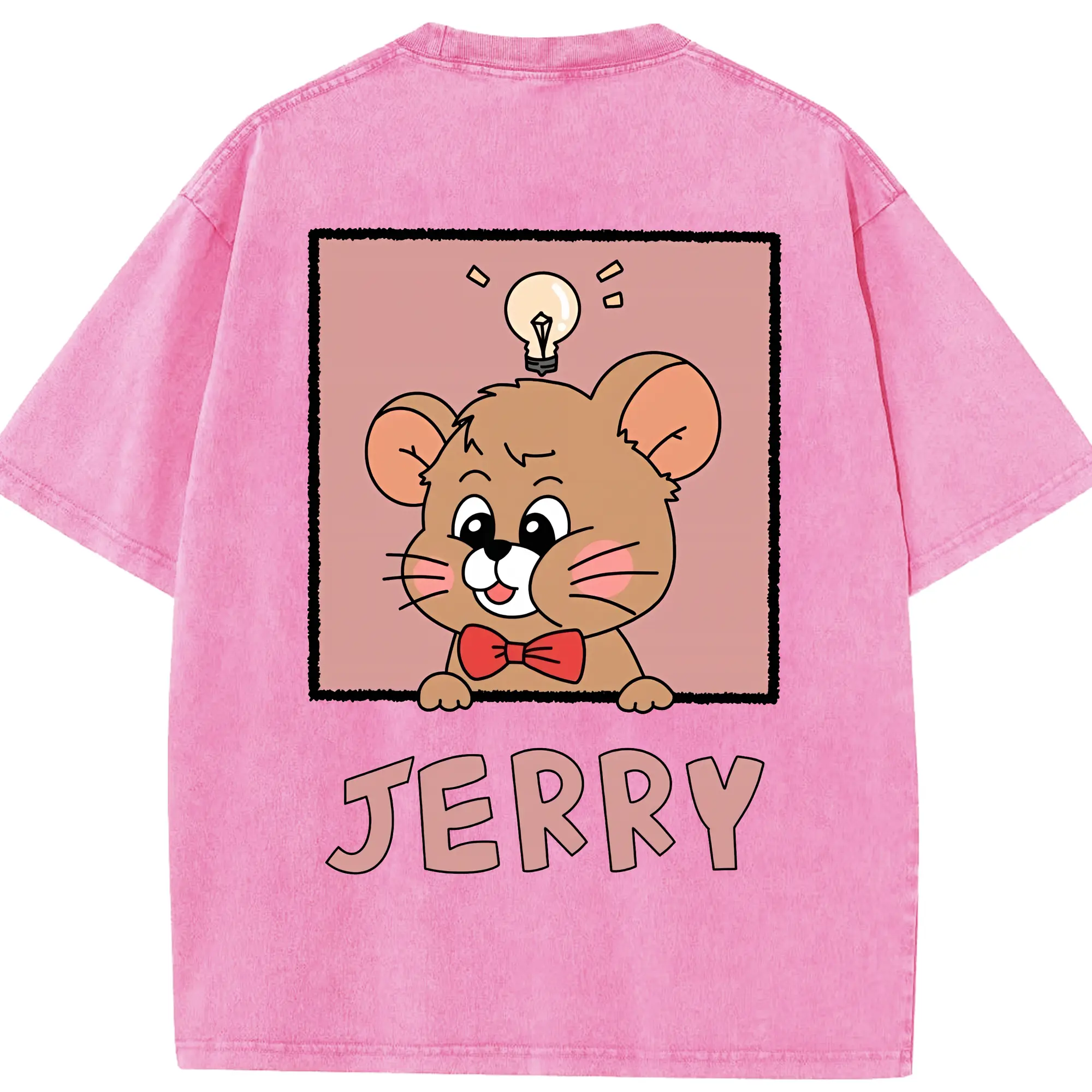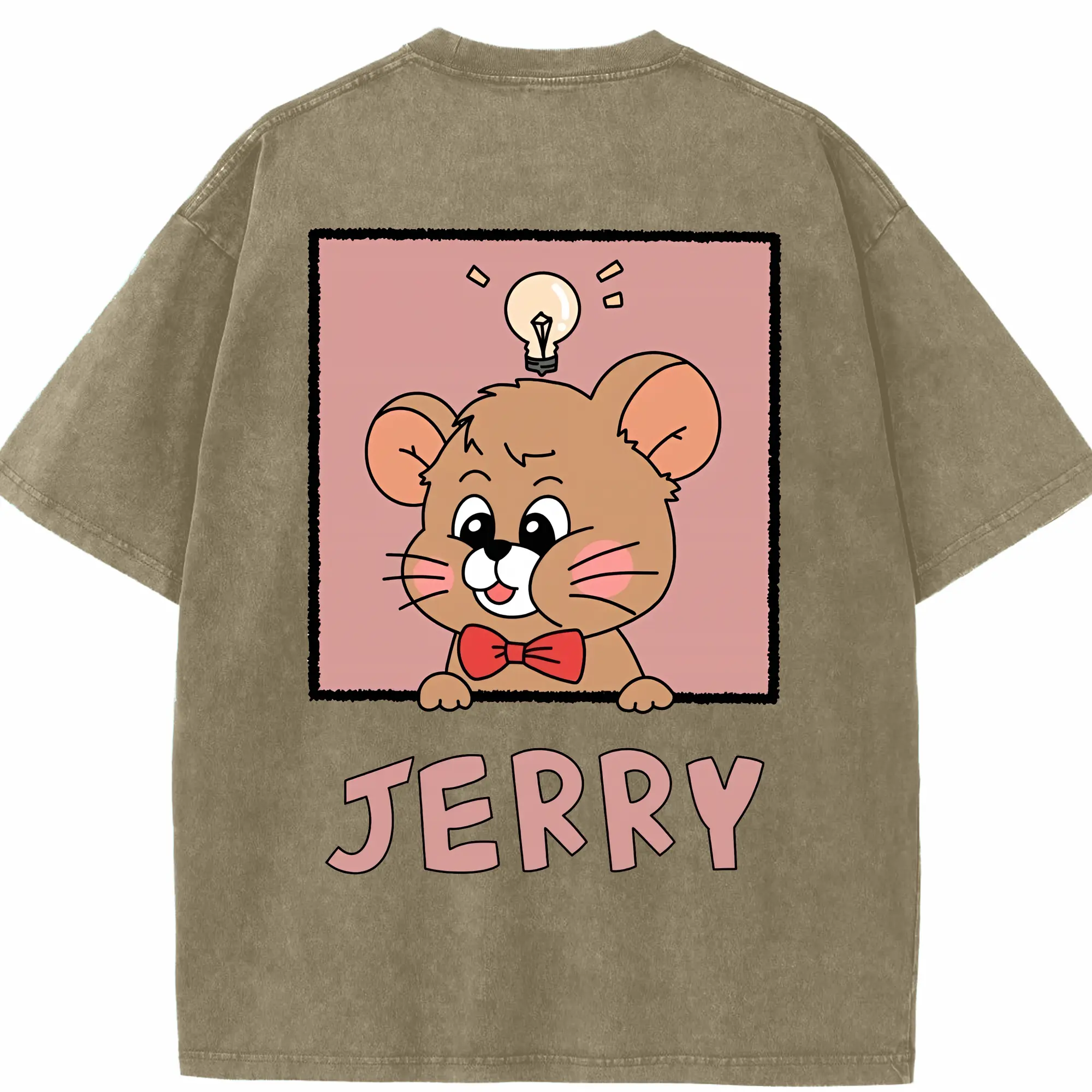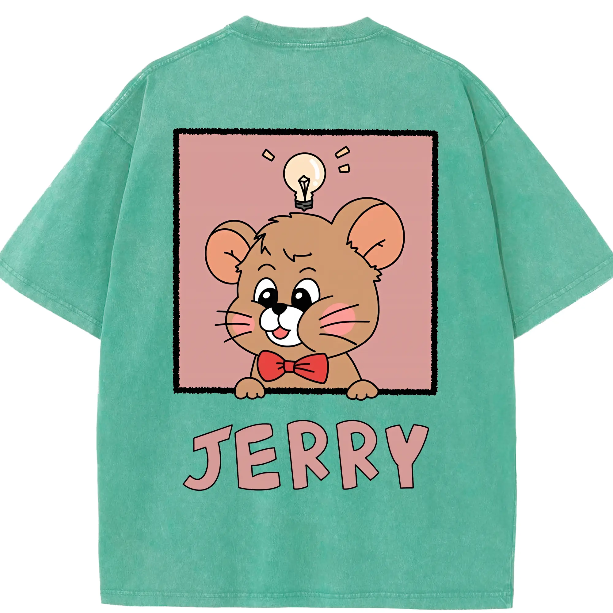 トムとジェリー グッズ ジェリー - 綿100% ヴィンテージ風 半袖Tシャツ ・ フロントプリント ・ 柔らか肌触り ・ 通気性 快適 ・ スポーツ カジュアル 外出用