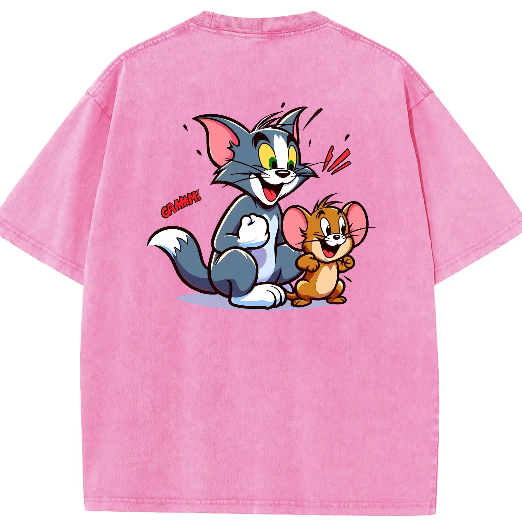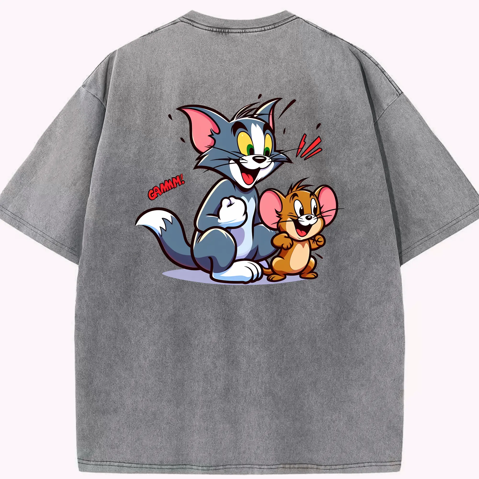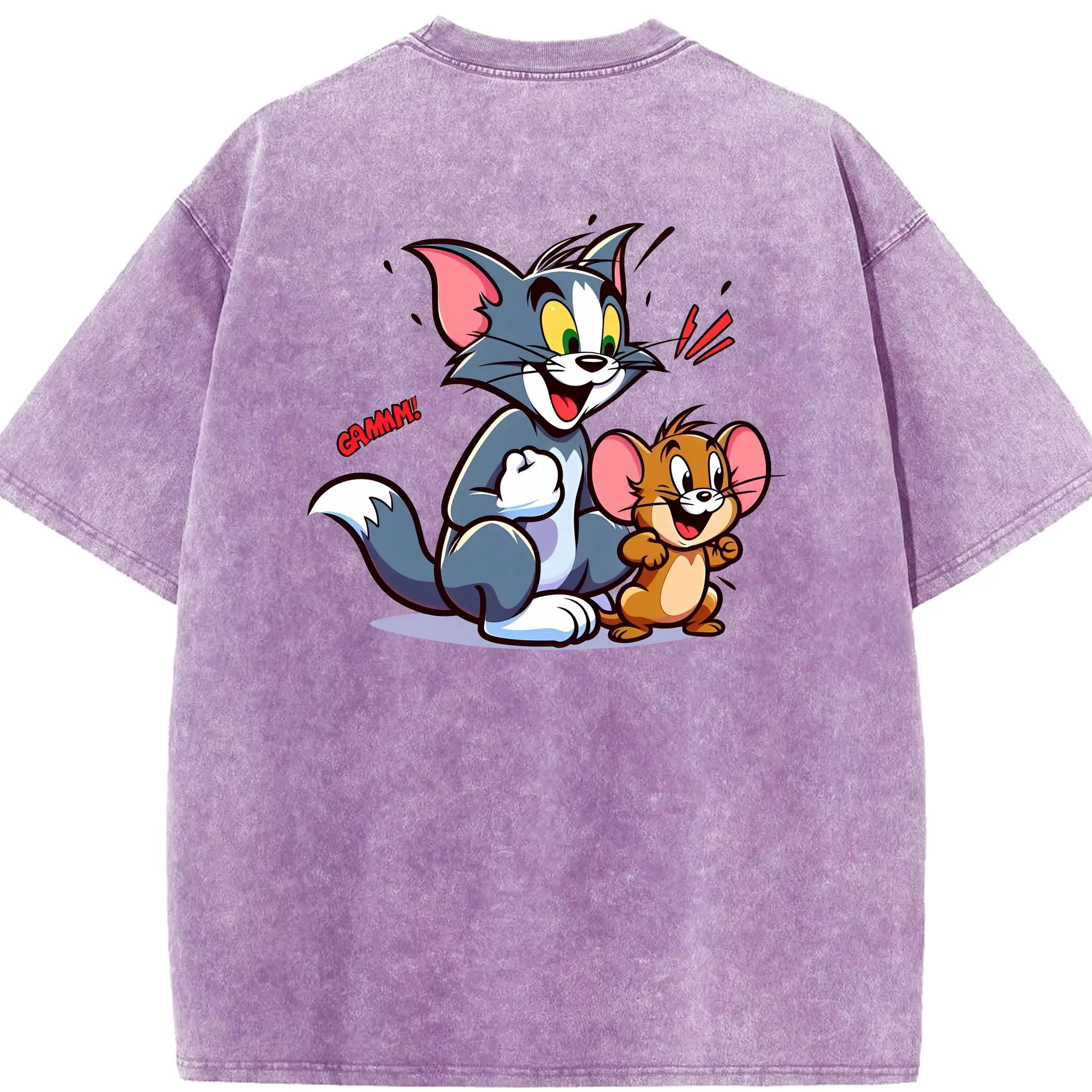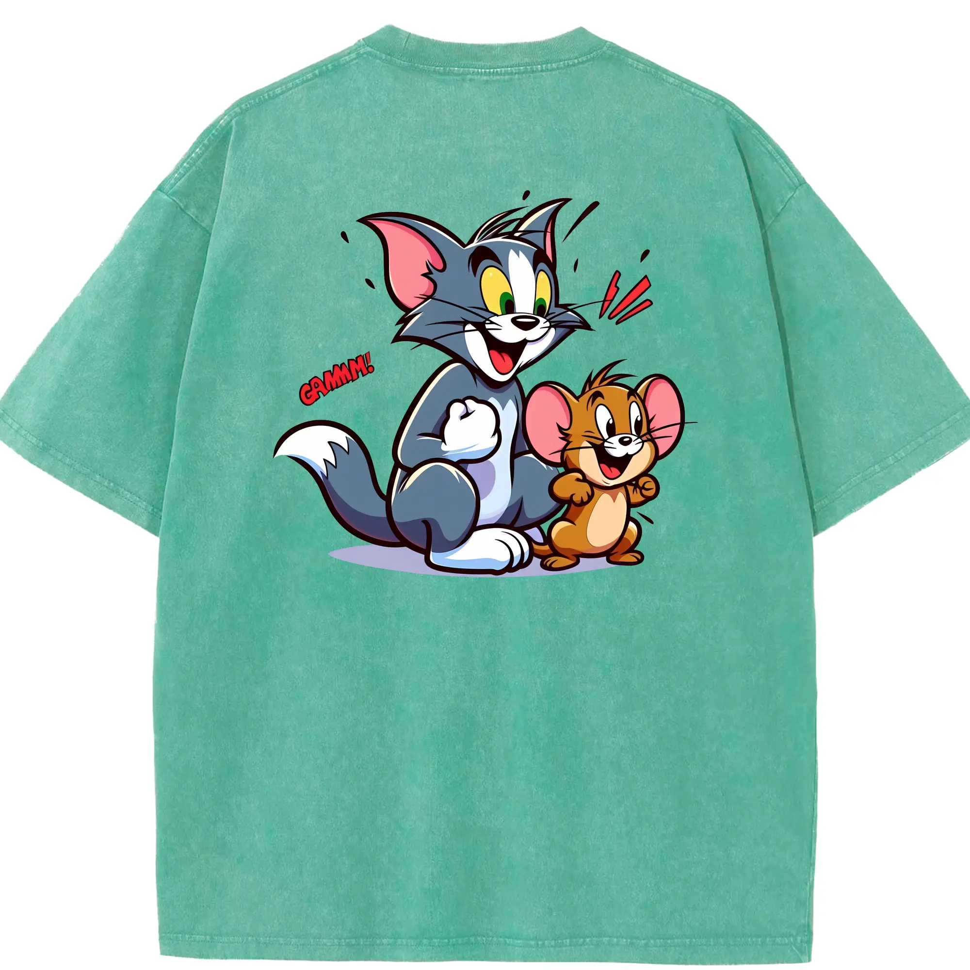 トムとジェリー グッズ トム - 綿100% ヴィンテージ風 半袖Tシャツ ・ 背面プリント ・ 柔らか肌触り ・ 通気性 快適 ・ スポーツ カジュアル 外出用