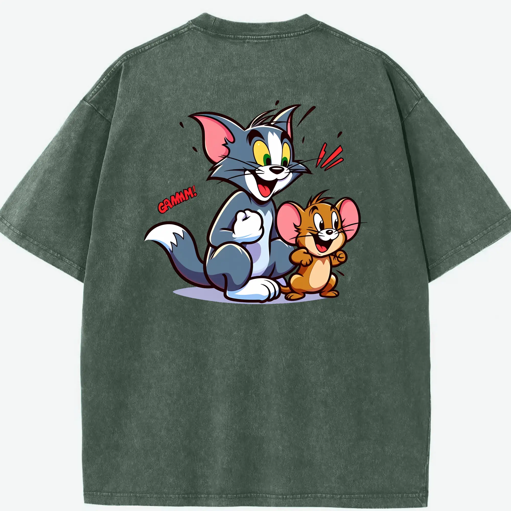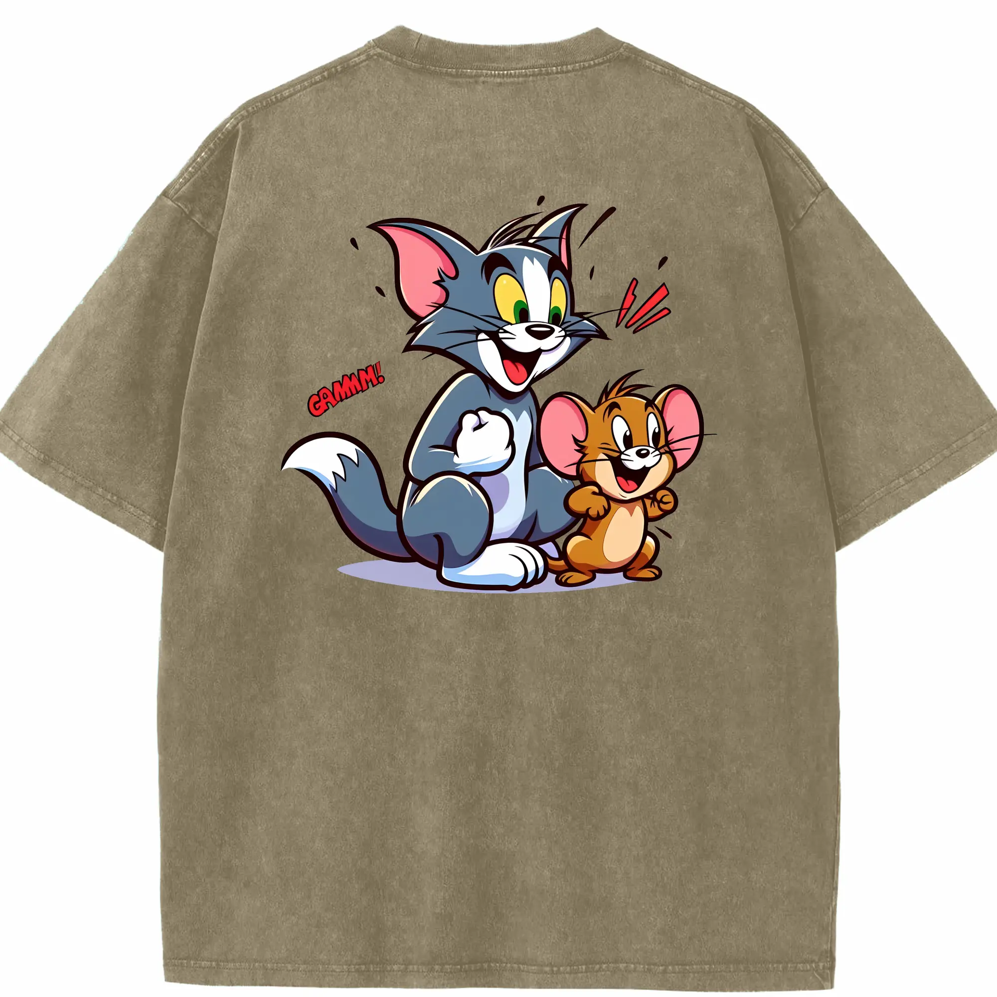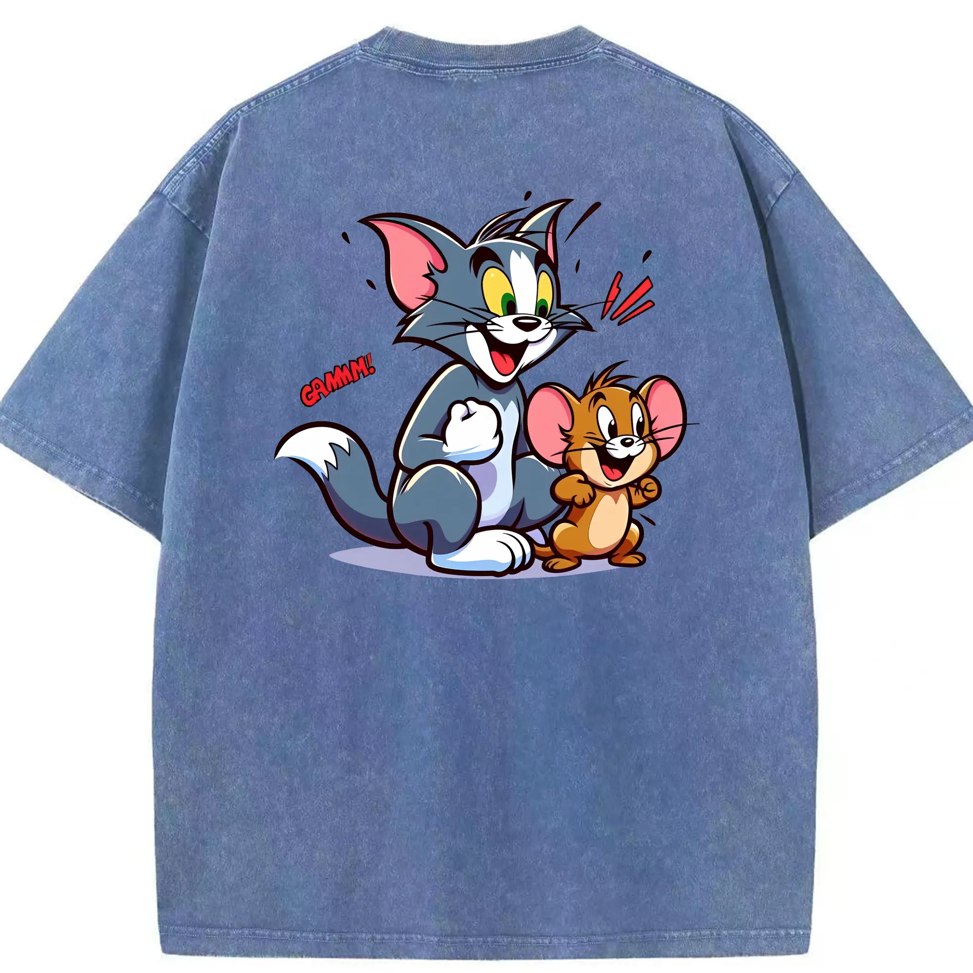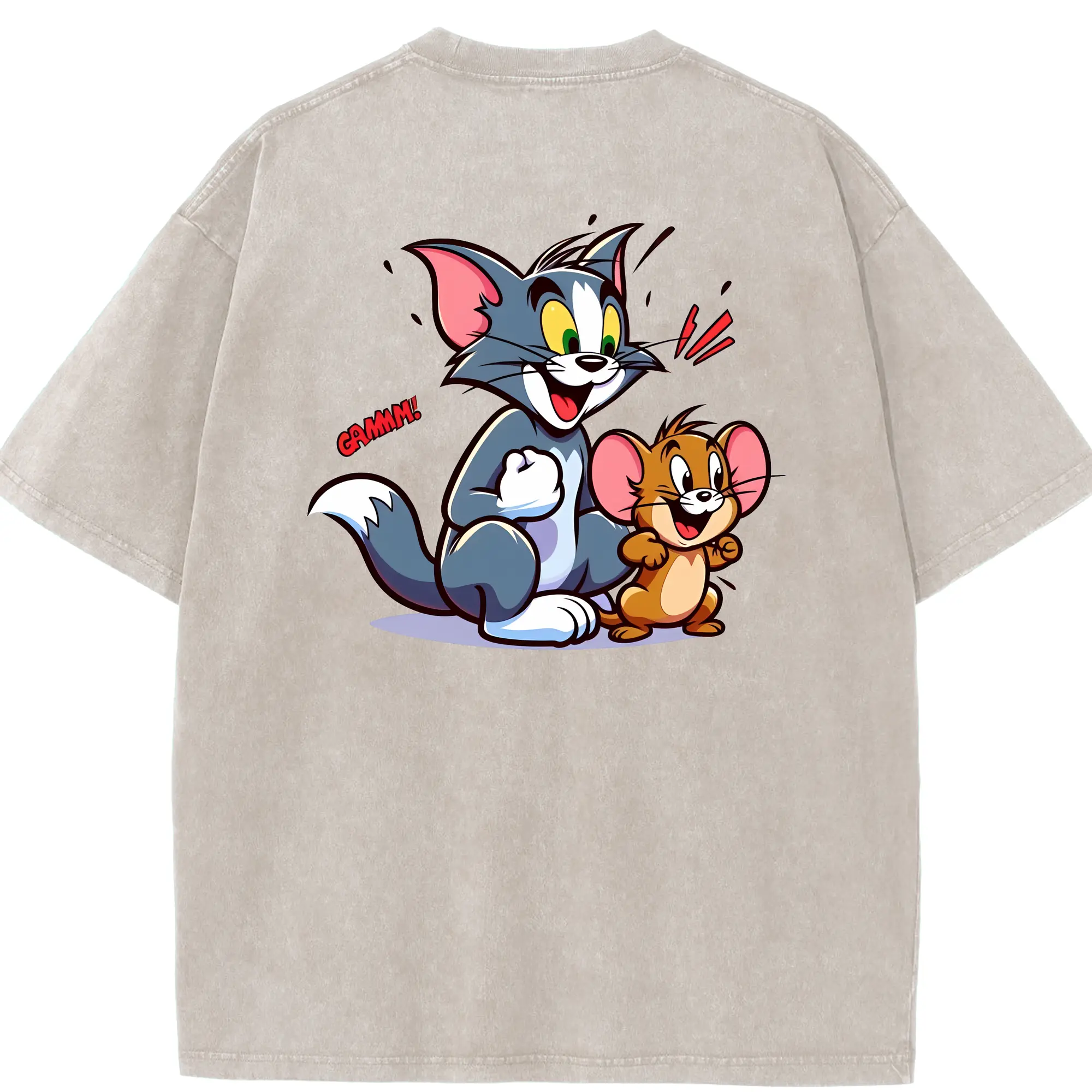 トムとジェリー グッズ トム - 綿100% ヴィンテージ風 半袖Tシャツ ・ 背面プリント ・ 柔らか肌触り ・ 通気性 快適 ・ スポーツ カジュアル 外出用