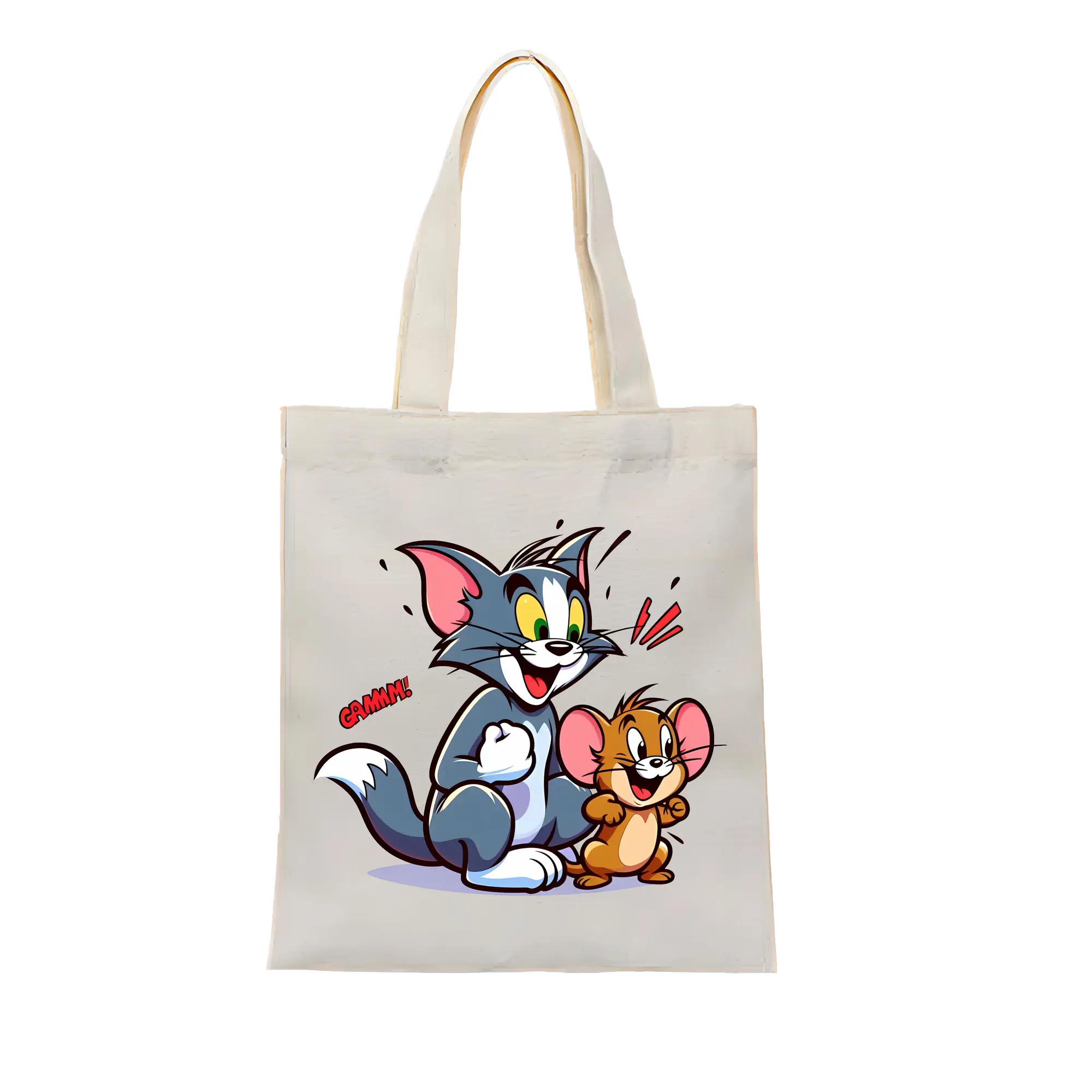 トムとジェリー グッズ ジェリー - 縦型キャンバス手提げバッグ(トートバッグ) ・ キャンバス素材 ・ ショッピング用 ・ 軽量 丈夫 お手入れ簡単