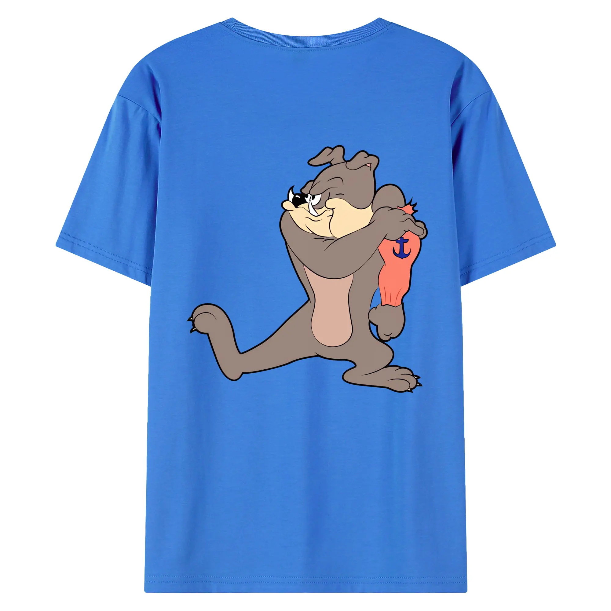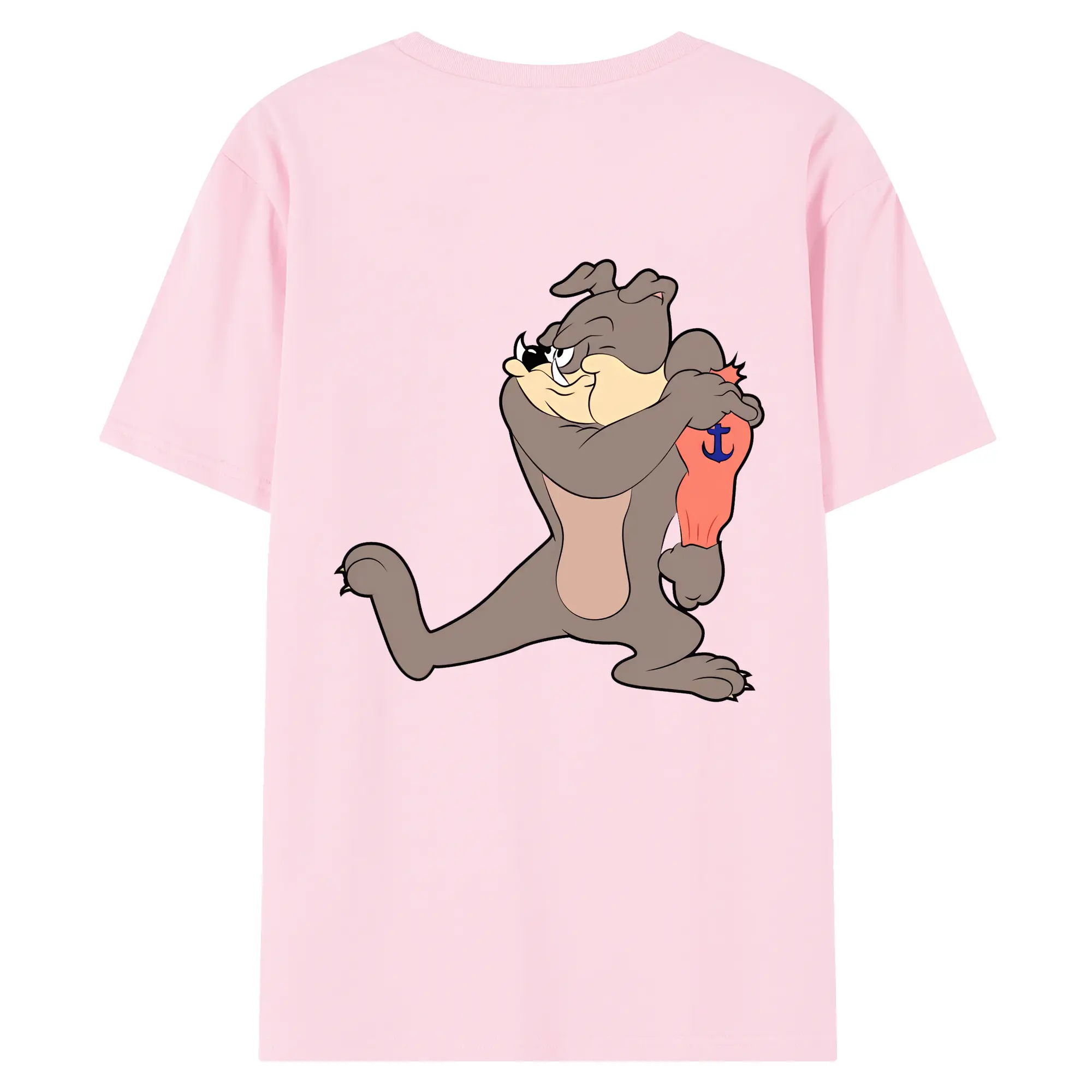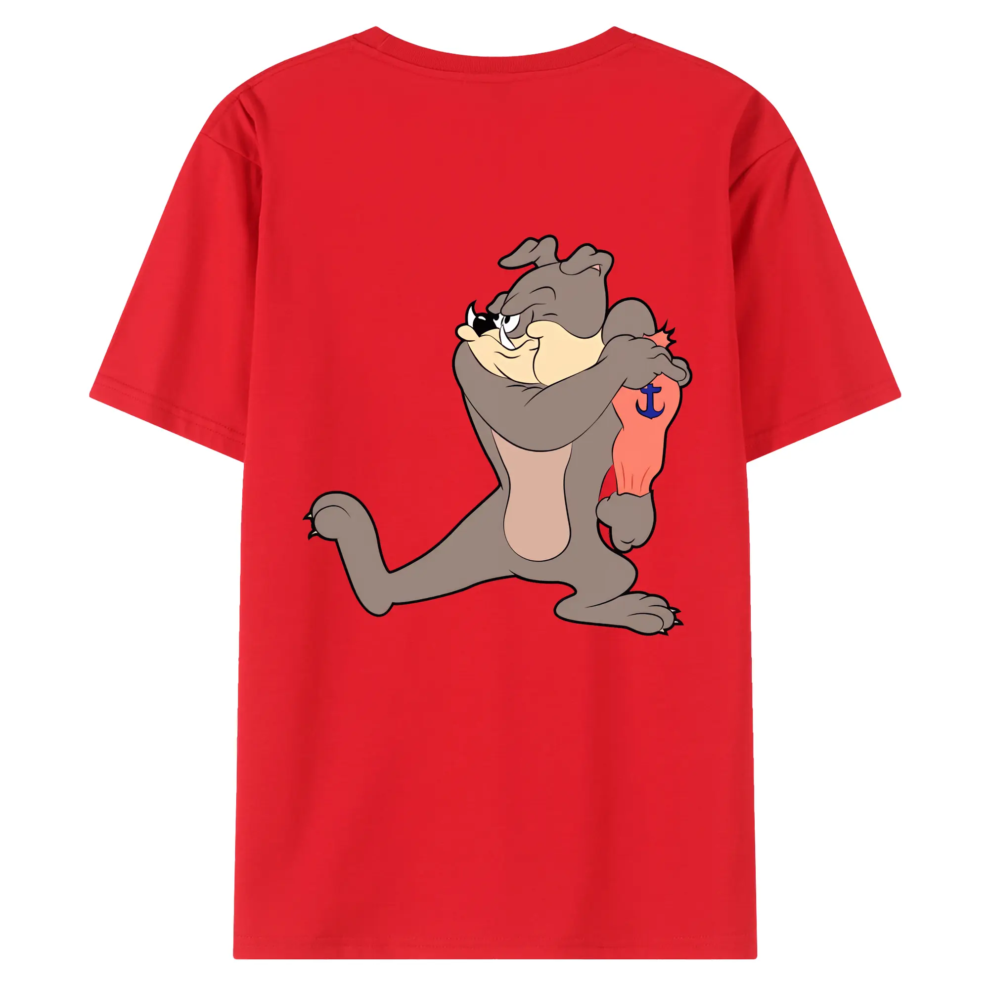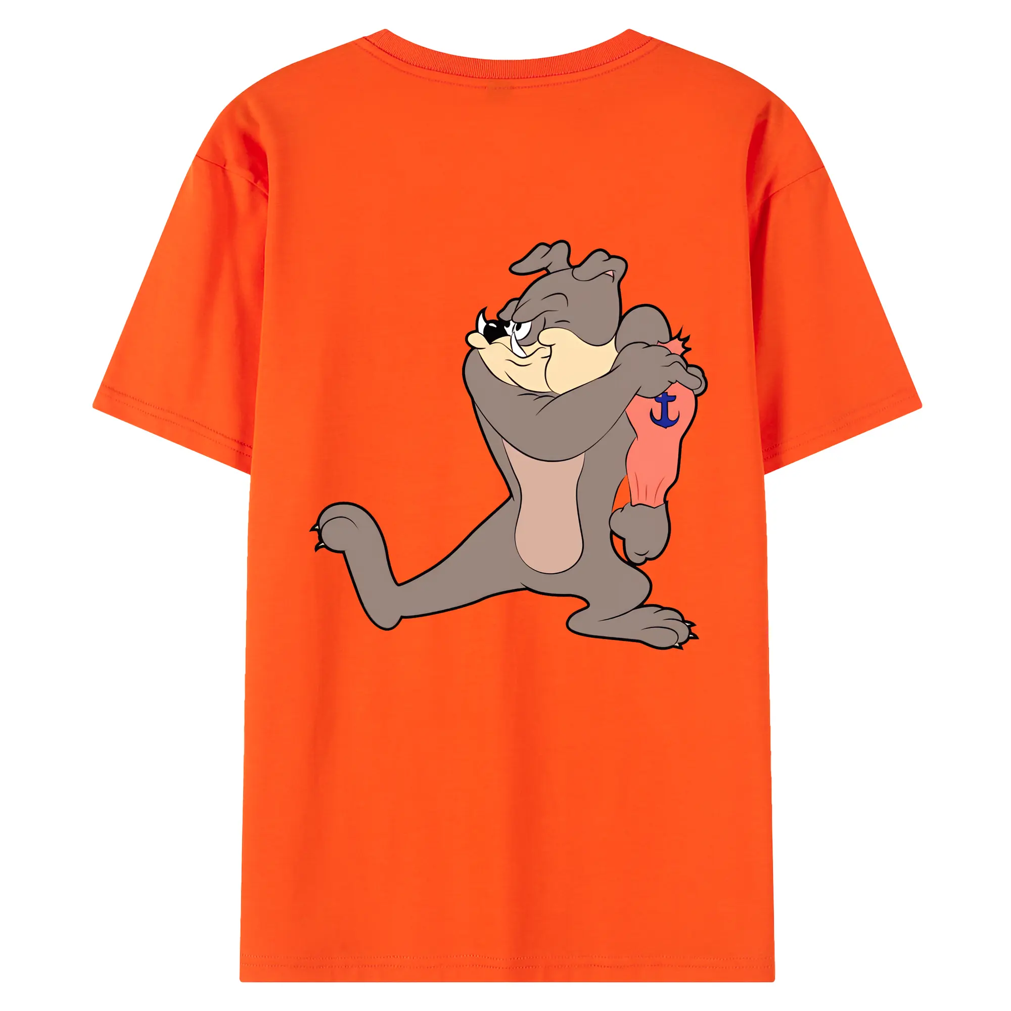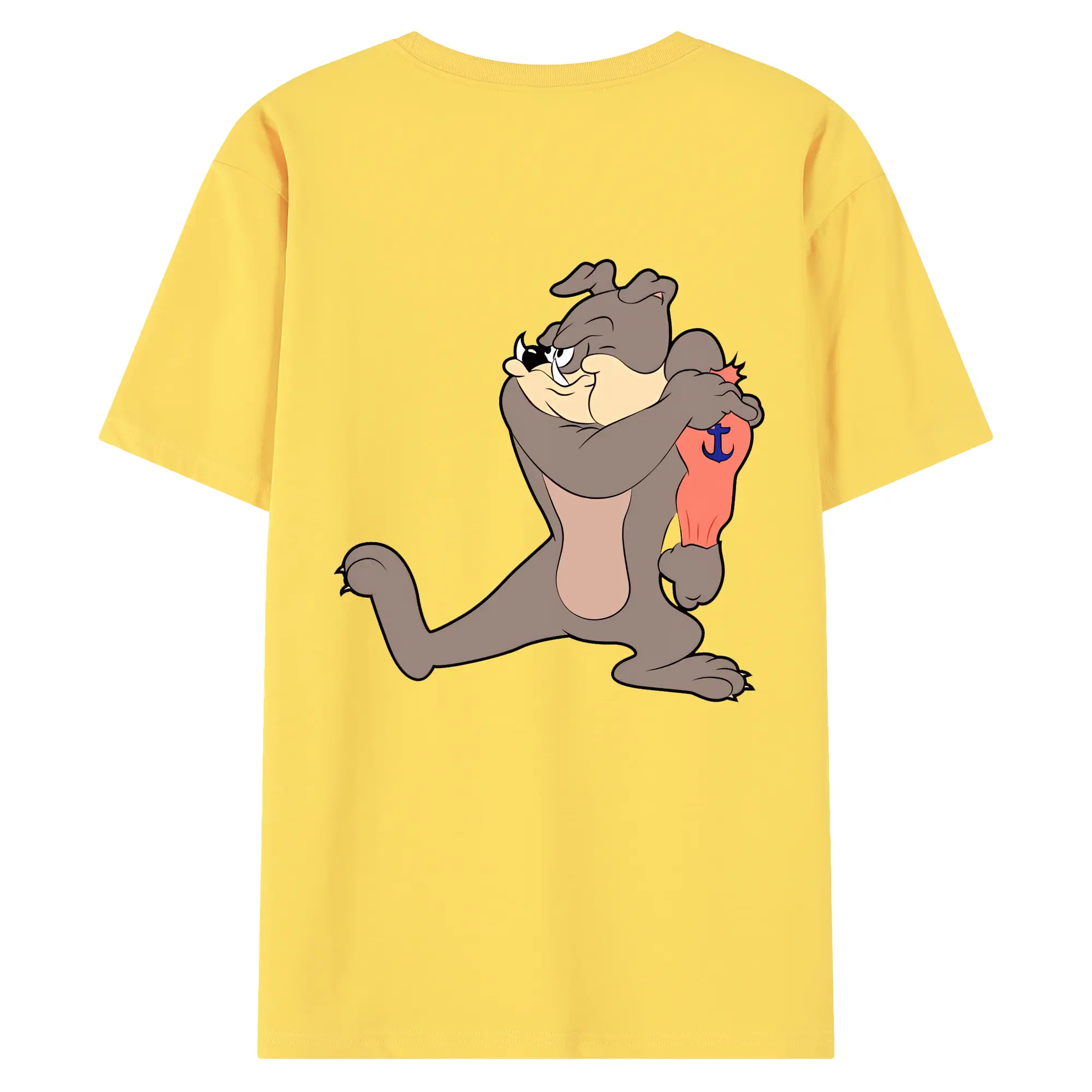 トムとジェリー グッズ スパイク - 綿100% ヴィンテージ風 半袖Tシャツ ・ 背面プリント ・ 柔らか肌触り ・ 通気性 快適 ・ スポーツ カジュアル 外出用