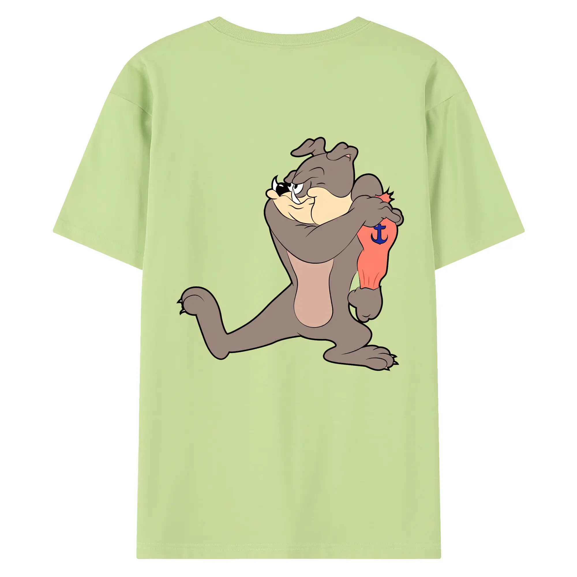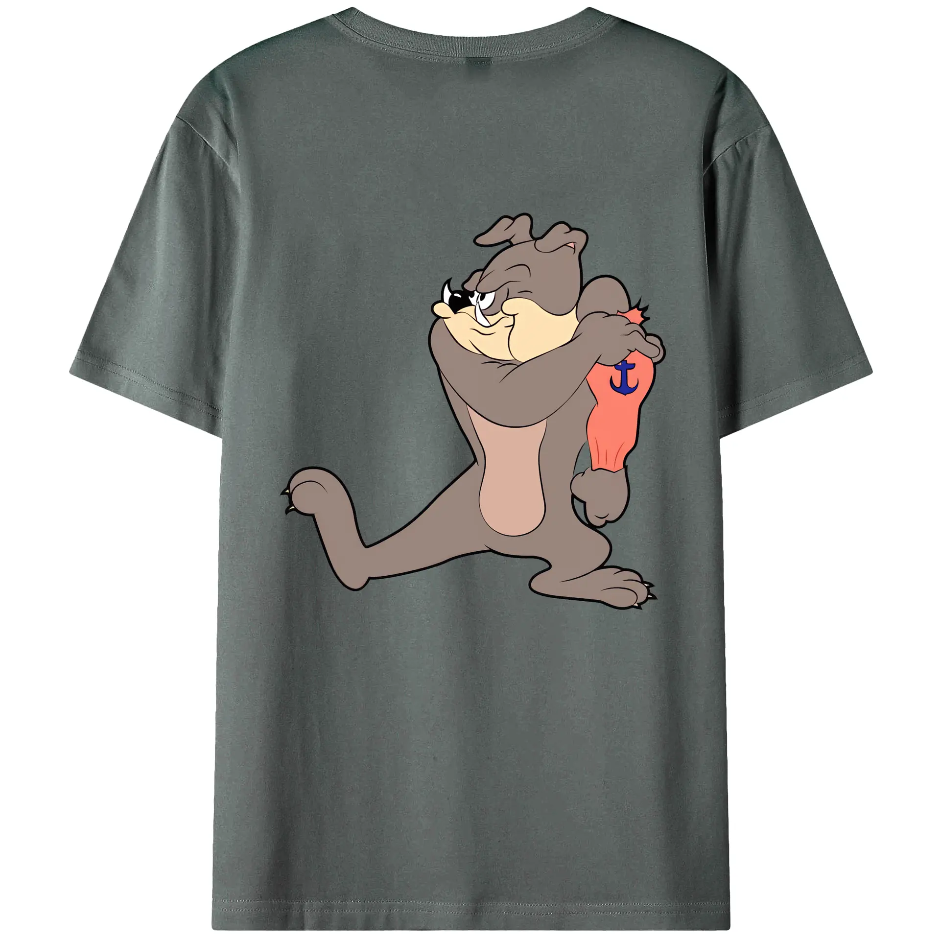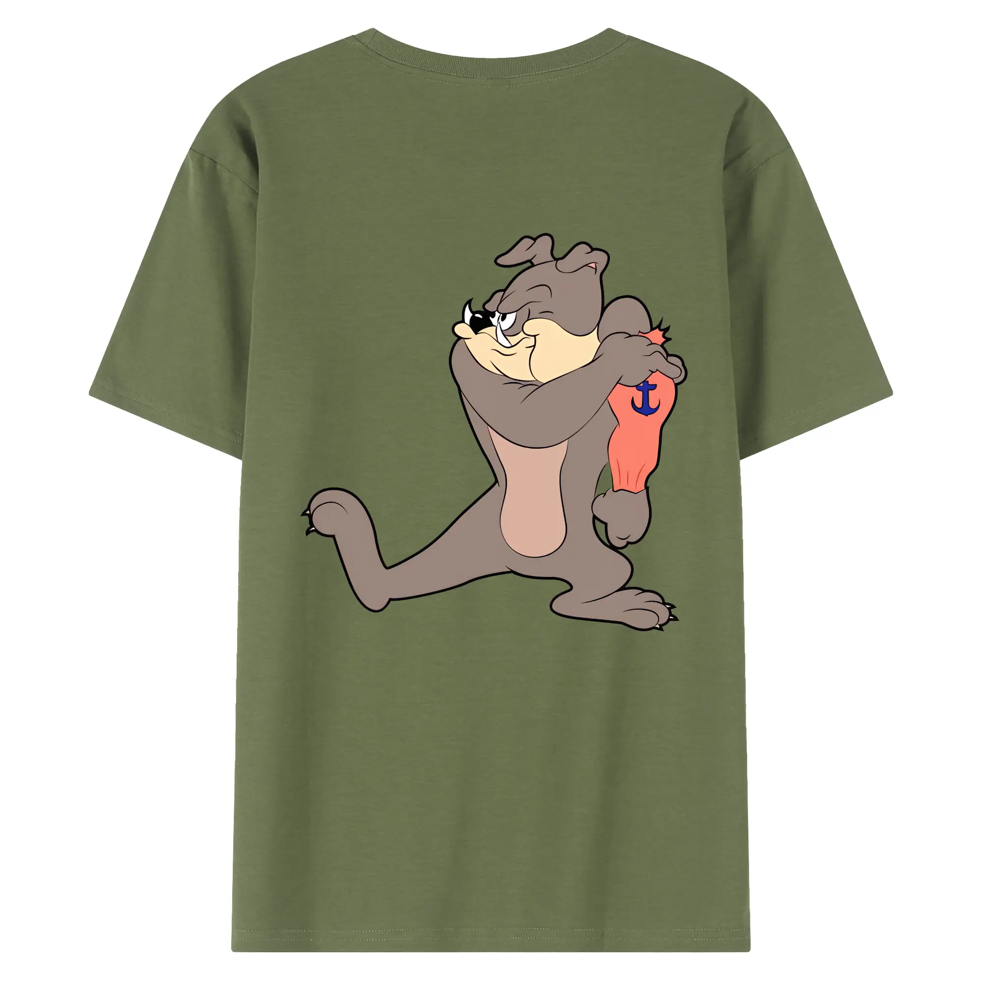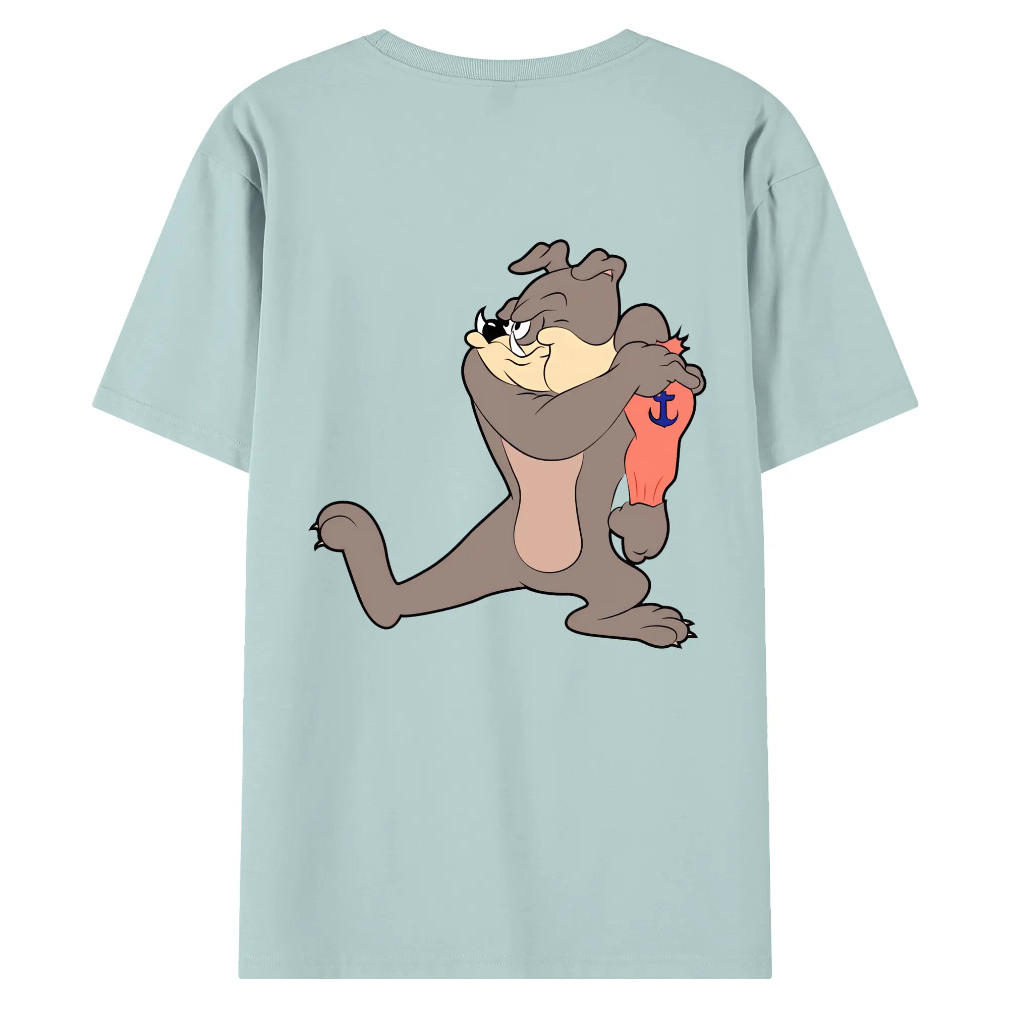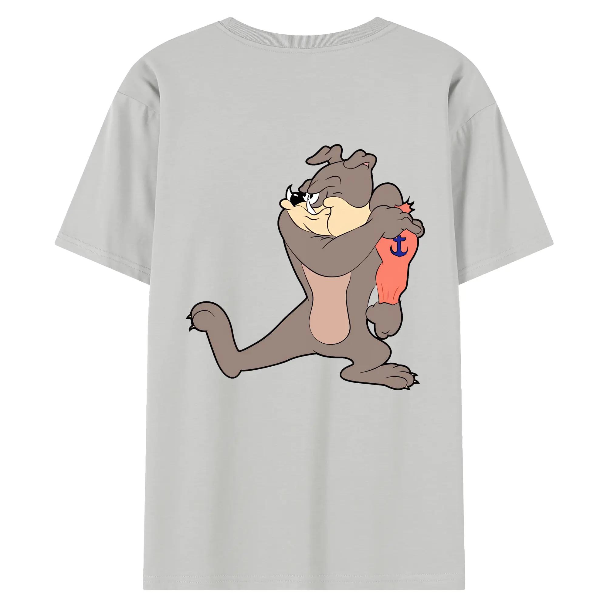 トムとジェリー グッズ スパイク - 綿100% ヴィンテージ風 半袖Tシャツ ・ 背面プリント ・ 柔らか肌触り ・ 通気性 快適 ・ スポーツ カジュアル 外出用