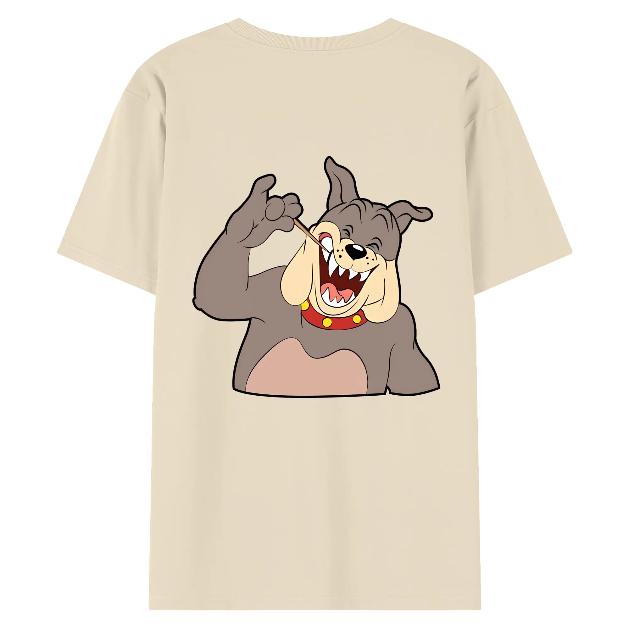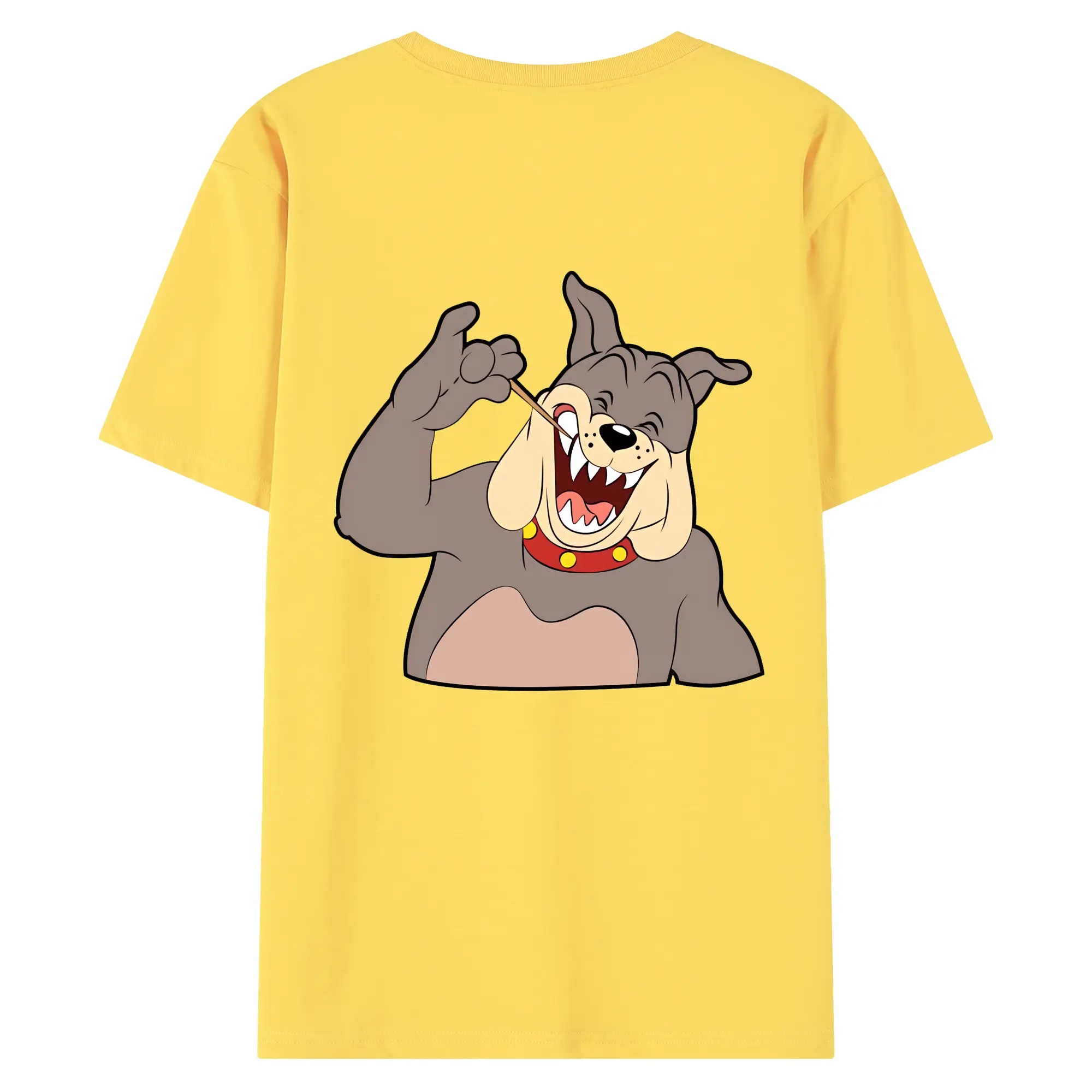 トムとジェリー グッズ スパイク - 綿100% ヴィンテージ風 半袖Tシャツ ・ 背面プリント ・ 柔らか肌触り ・ 通気性 快適 ・ スポーツ カジュアル 外出用