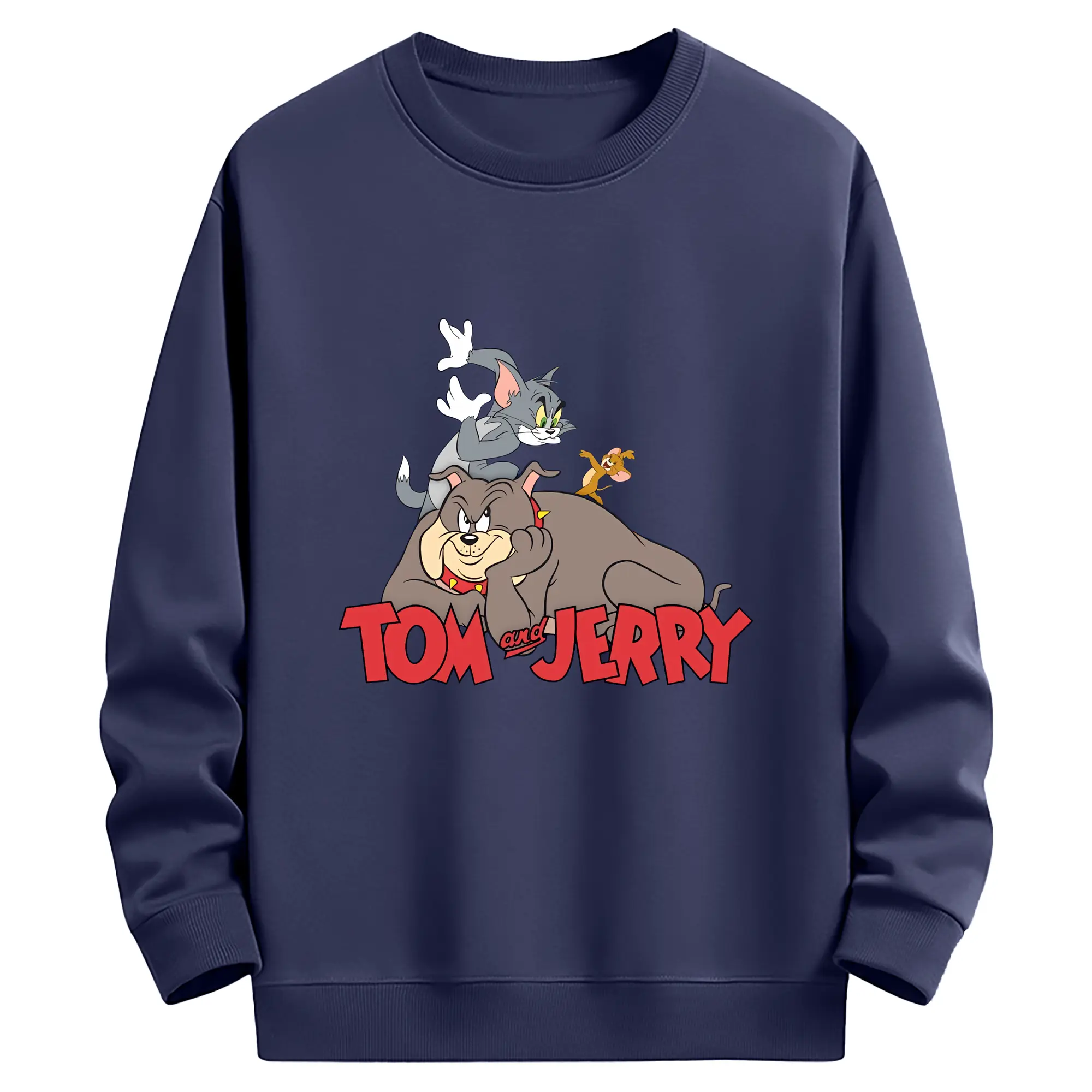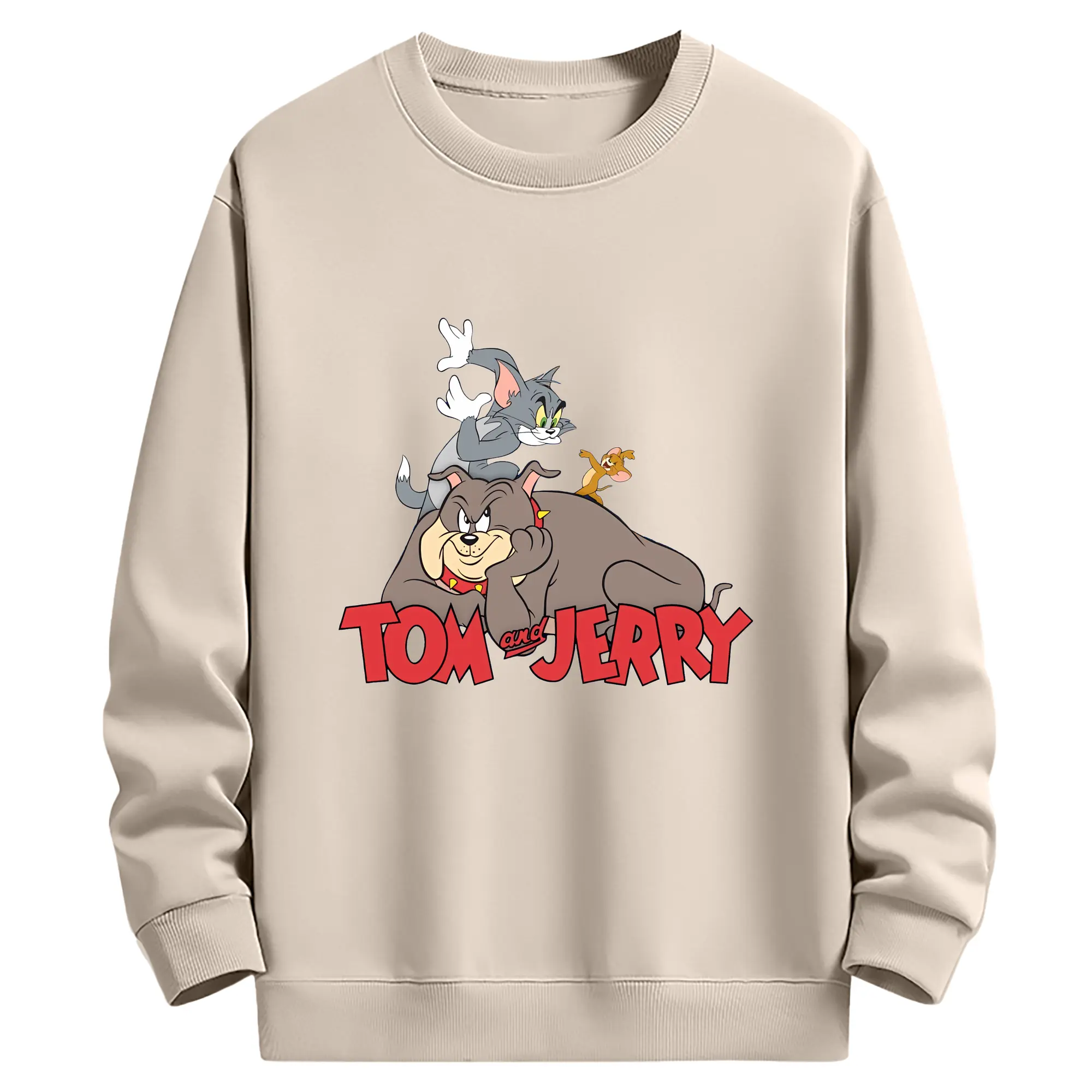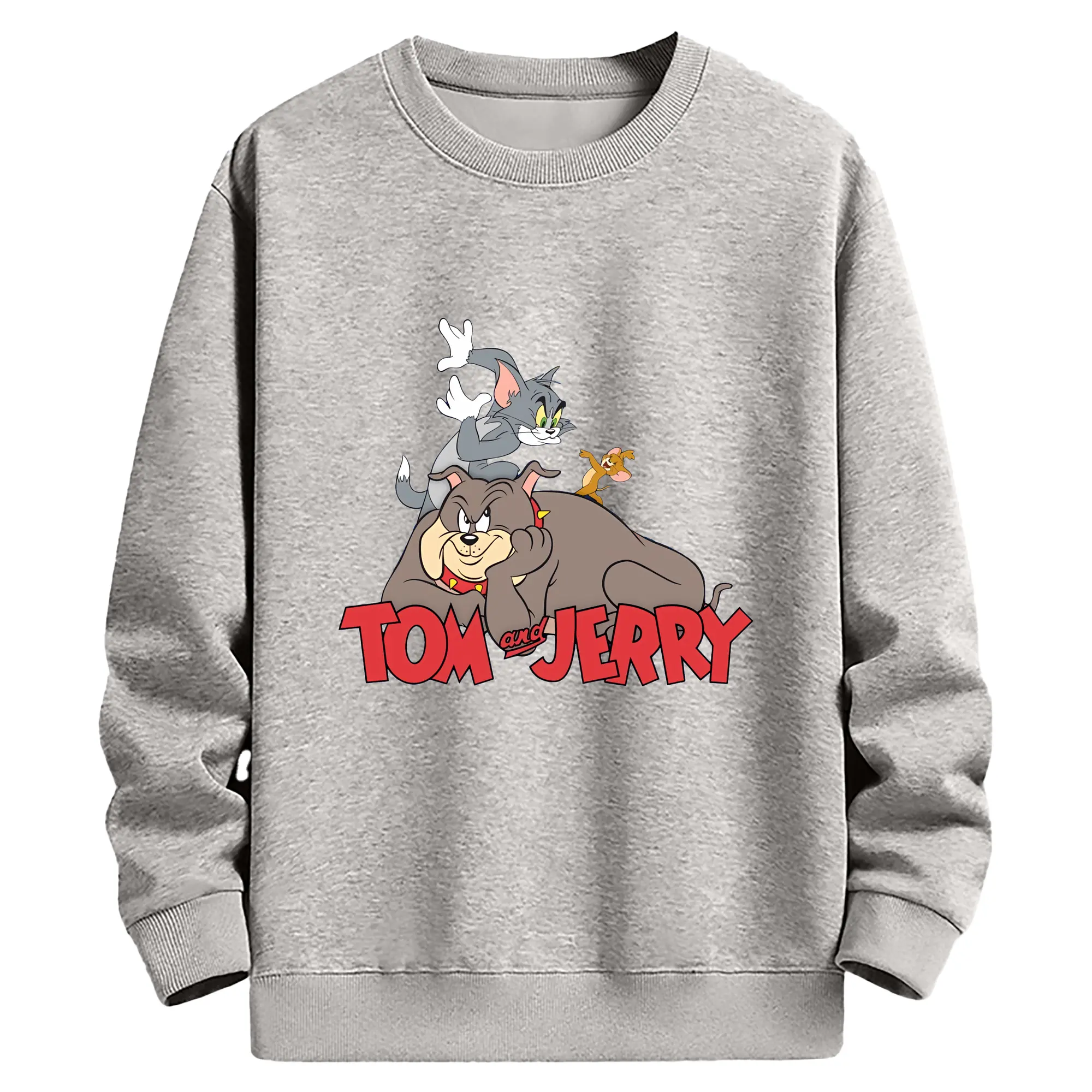 トムとジェリー グッズ スパイク - 薄手 クルーネック スウェット 裏毛260g · ポリエステル 春秋向け カジュアル 男女兼用 · トレーナー デイリー スポーツ 散歩に最適