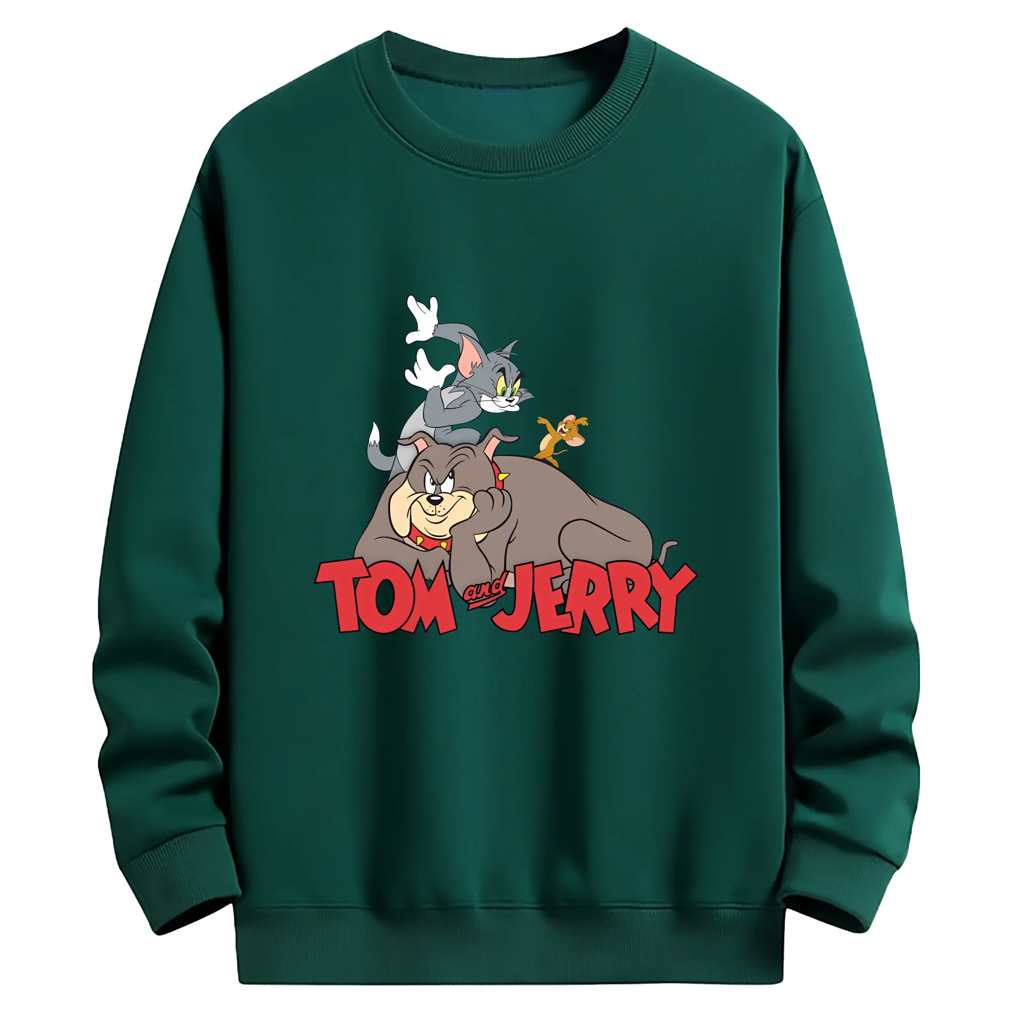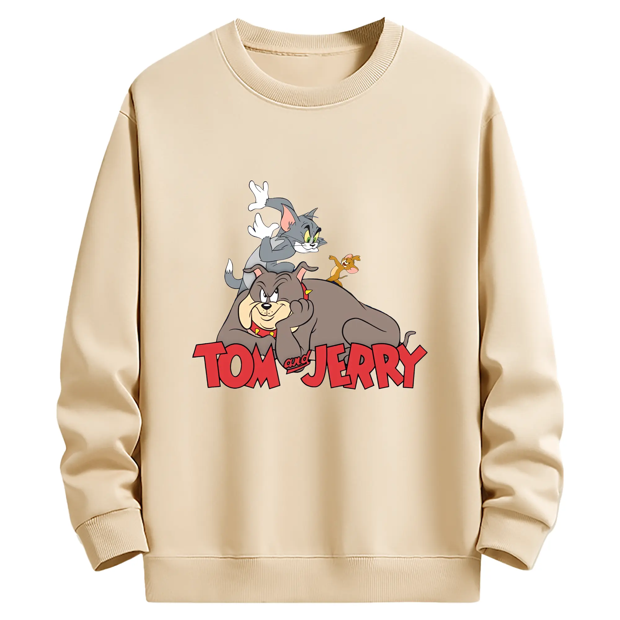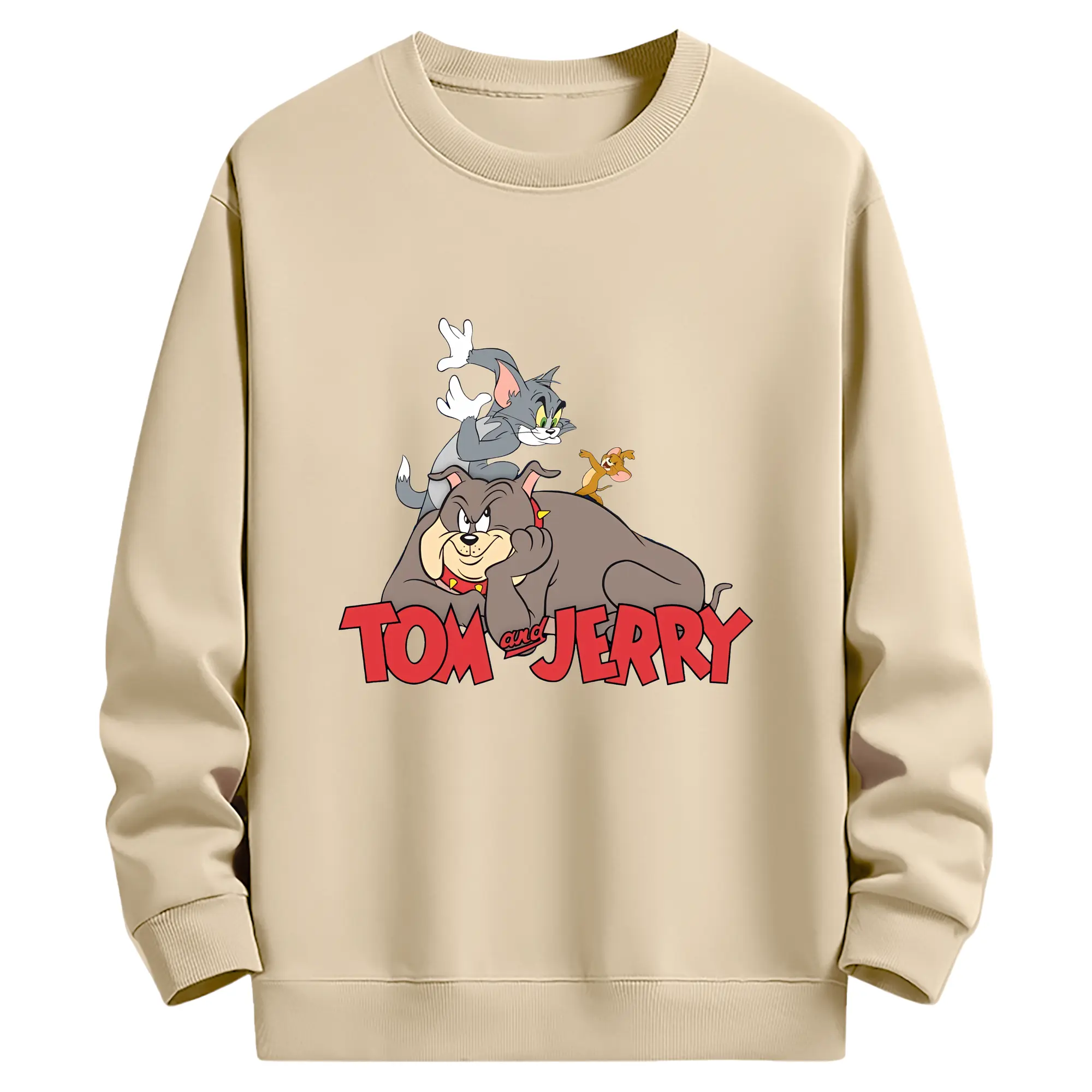 トムとジェリー グッズ スパイク - 薄手 クルーネック スウェット 裏毛260g · ポリエステル 春秋向け カジュアル 男女兼用 · トレーナー デイリー スポーツ 散歩に最適