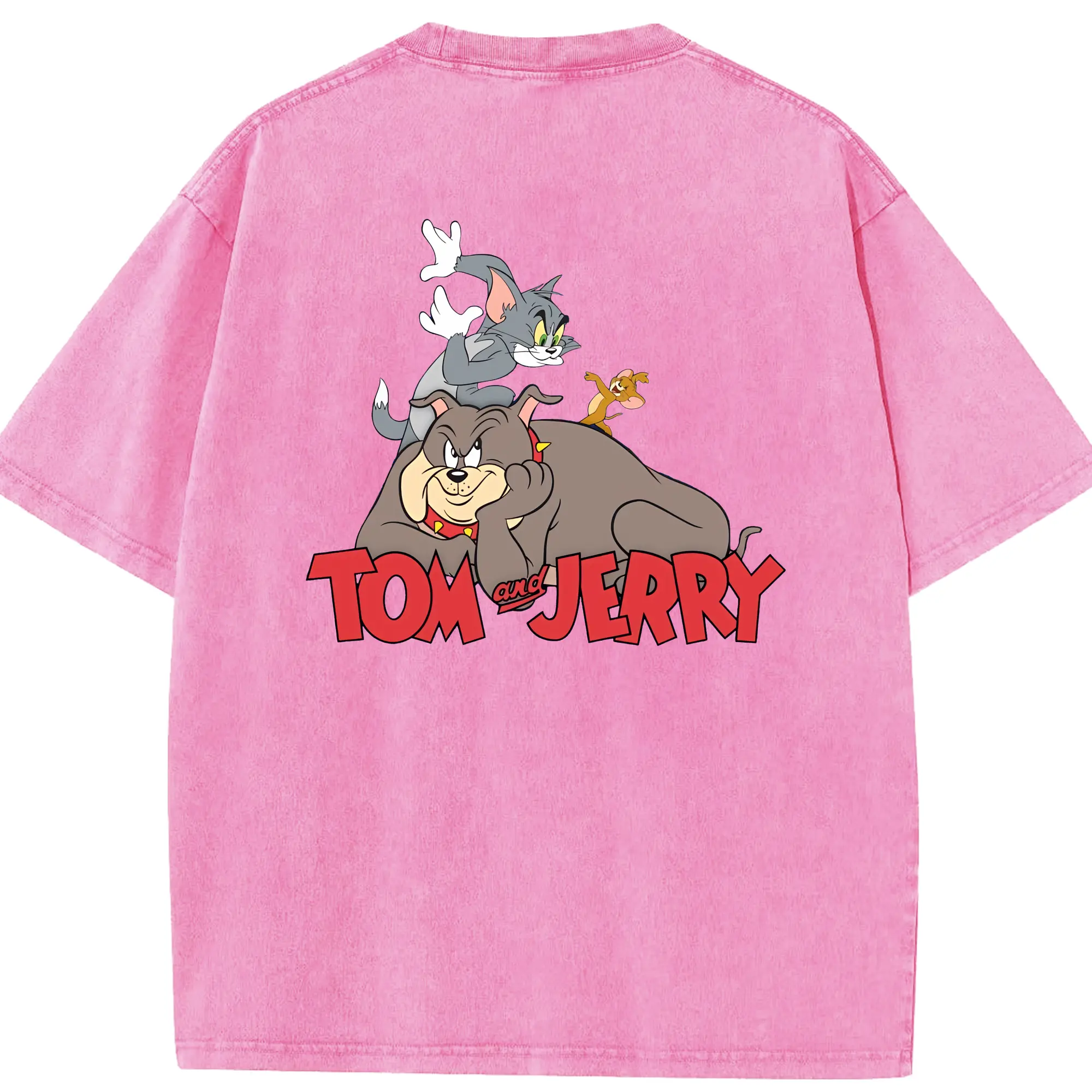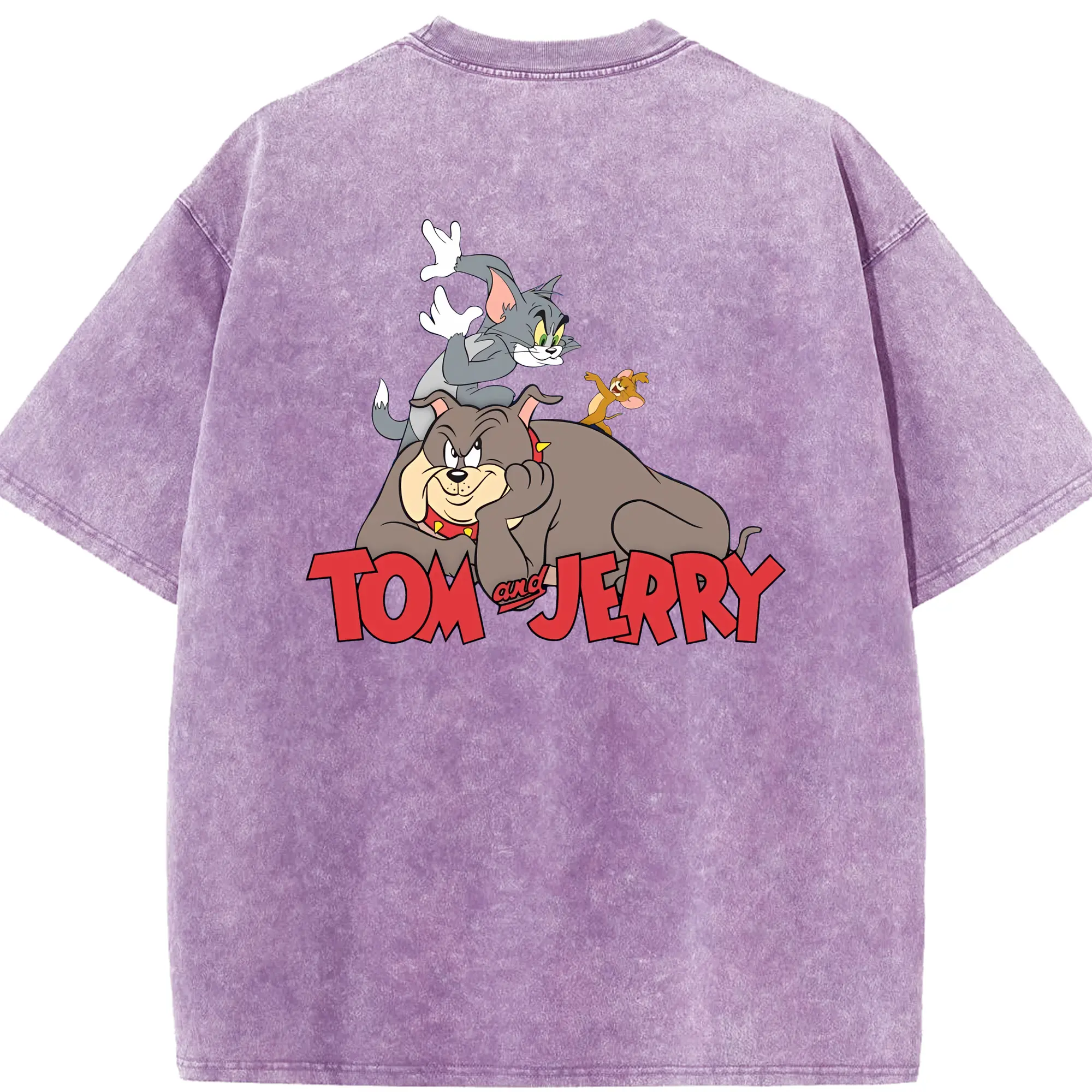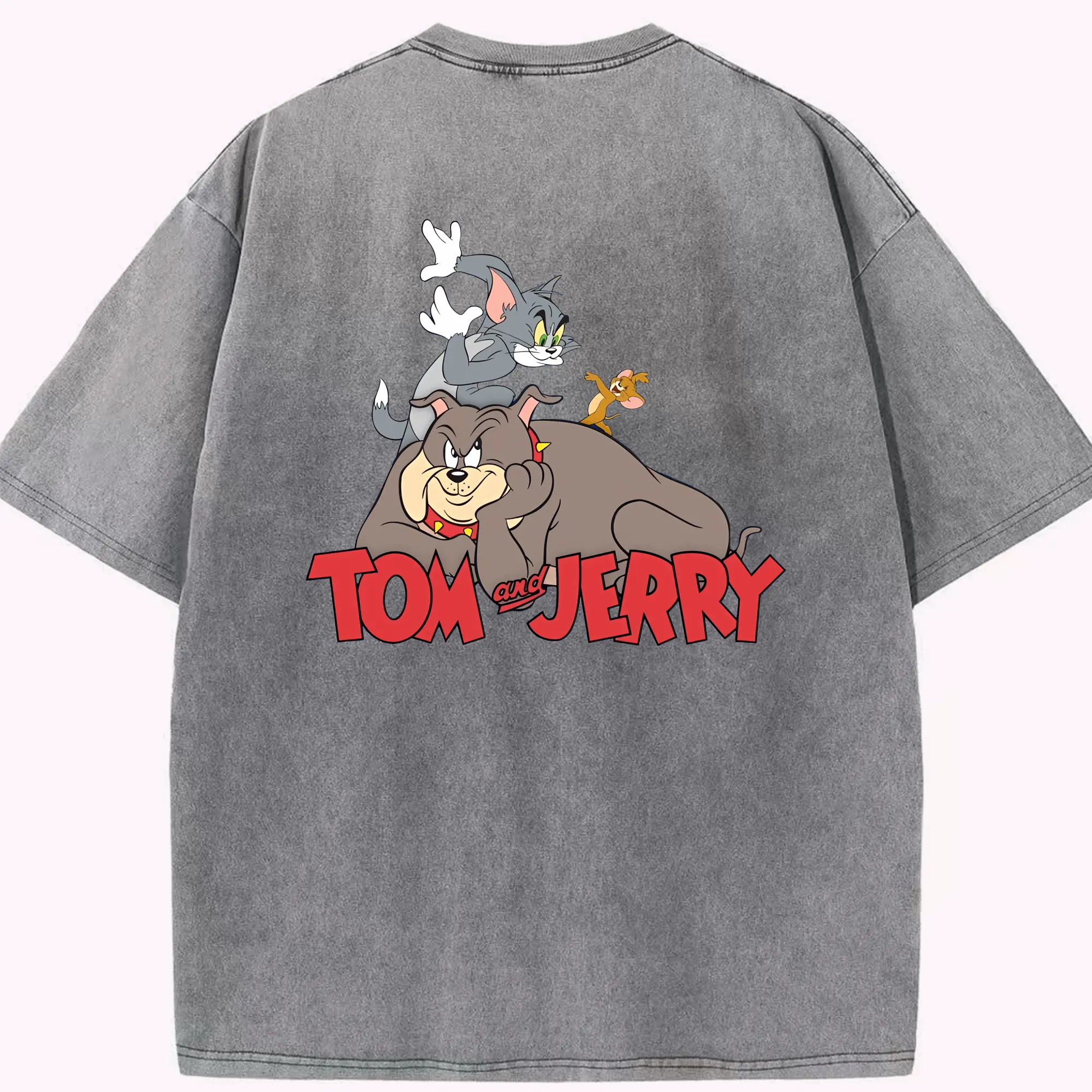トムとジェリー グッズ スパイク - 綿100% 半袖Tシャツ ・ バックプリント ・ 快適 通気性 ・ 日常使い 散歩 スポーツ用