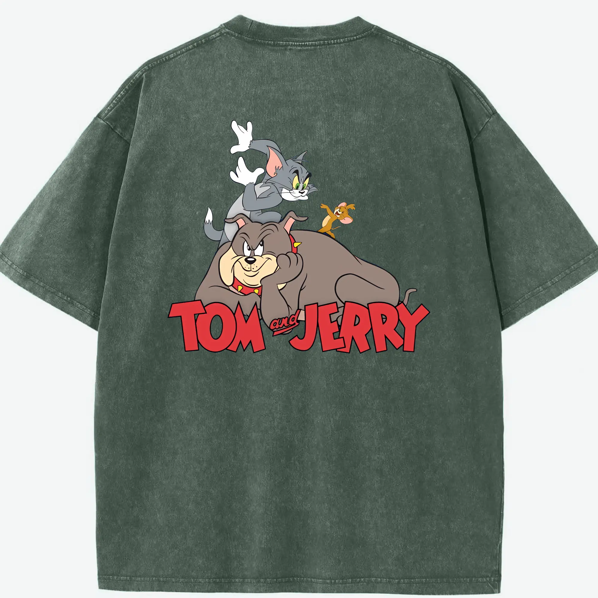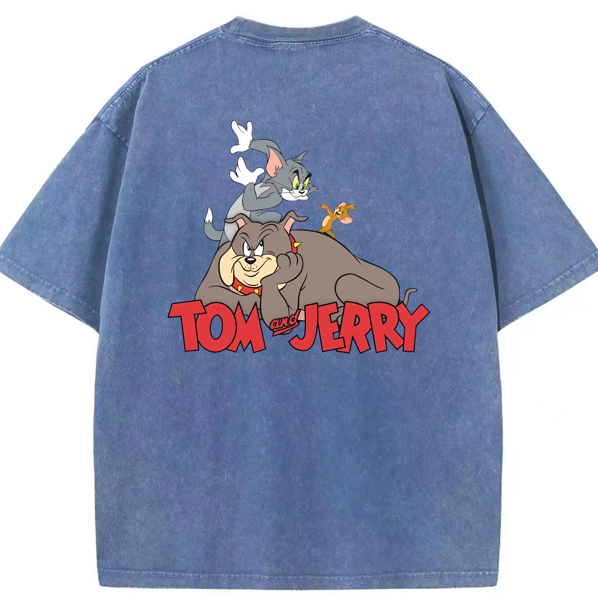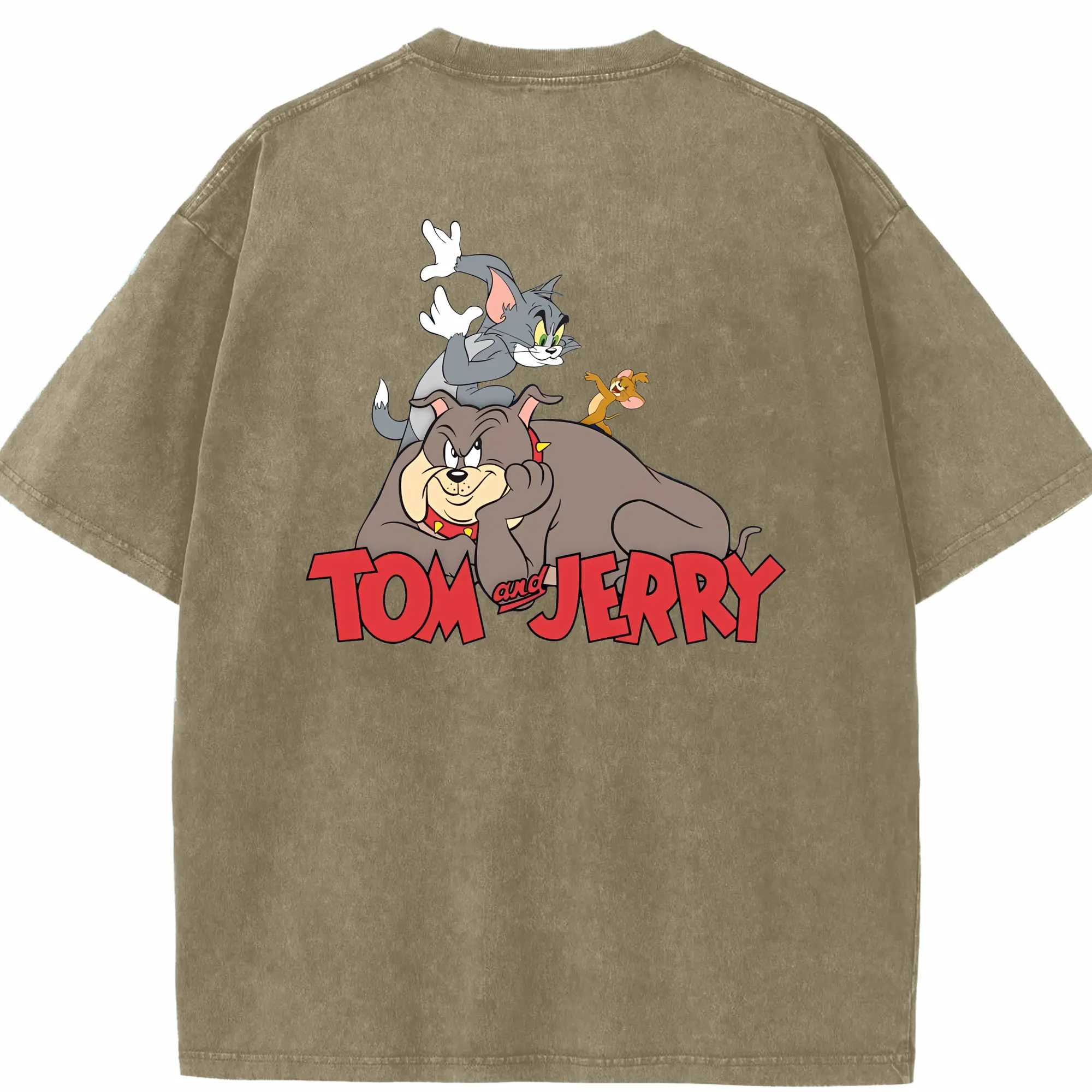 トムとジェリー グッズ スパイク - 綿100% 半袖Tシャツ ・ バックプリント ・ 快適 通気性 ・ 日常使い 散歩 スポーツ用