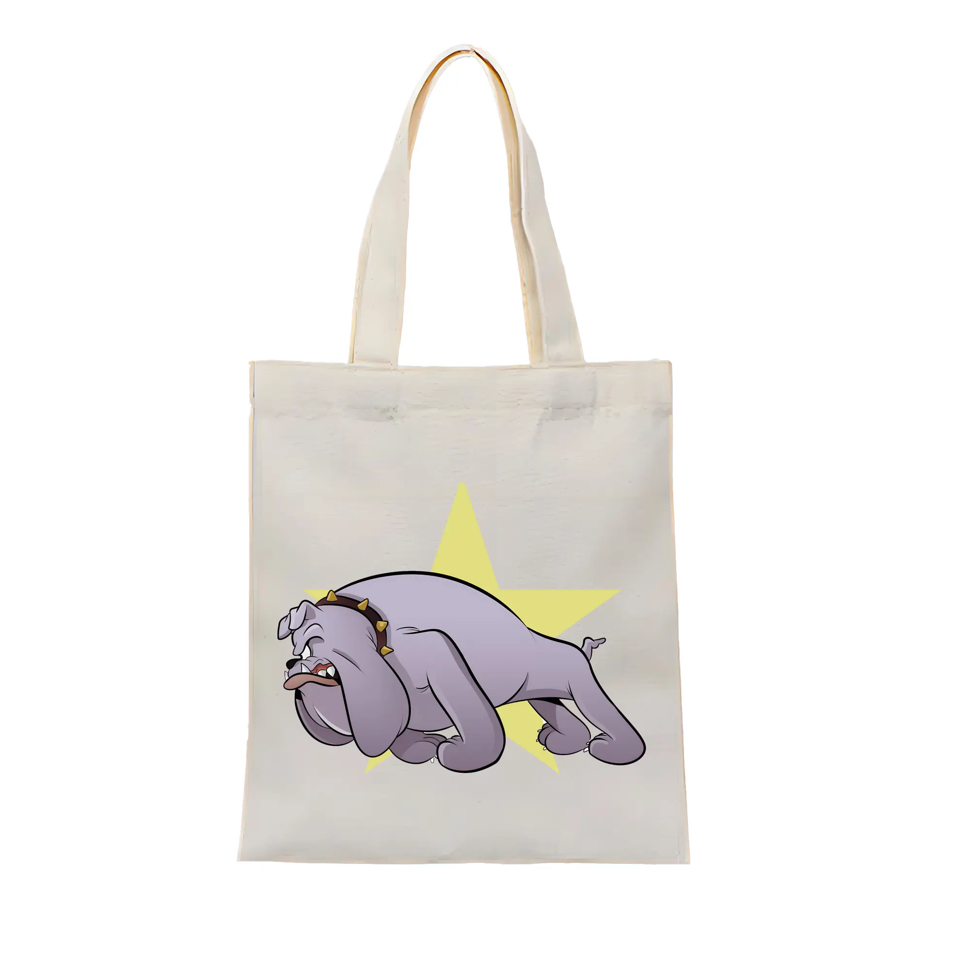 トムとジェリー グッズ スパイク - 縦型キャンバス手提げバッグ(トートバッグ) ・ キャンバス素材 ・ ショッピング用 ・ 軽量 丈夫 お手入れ簡単