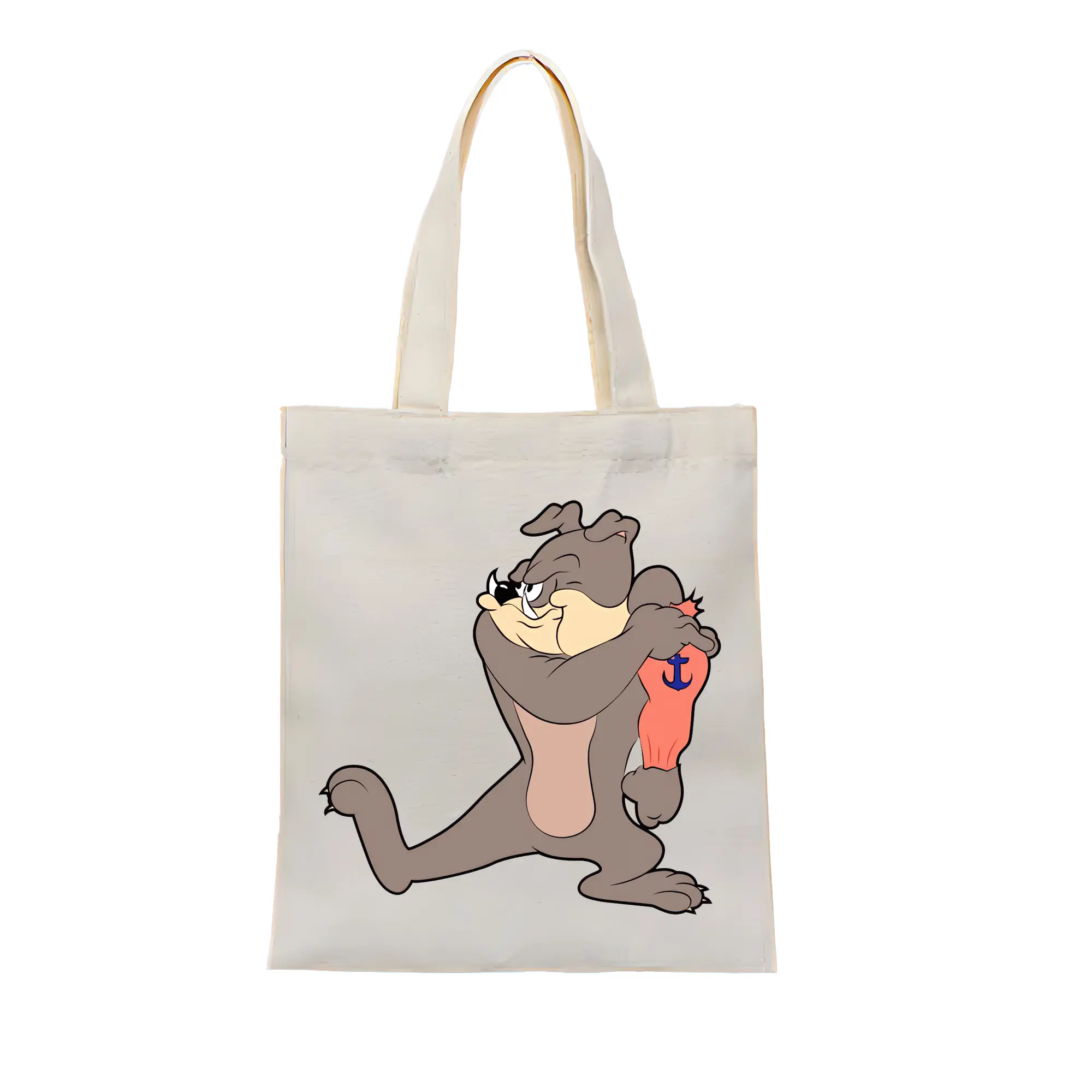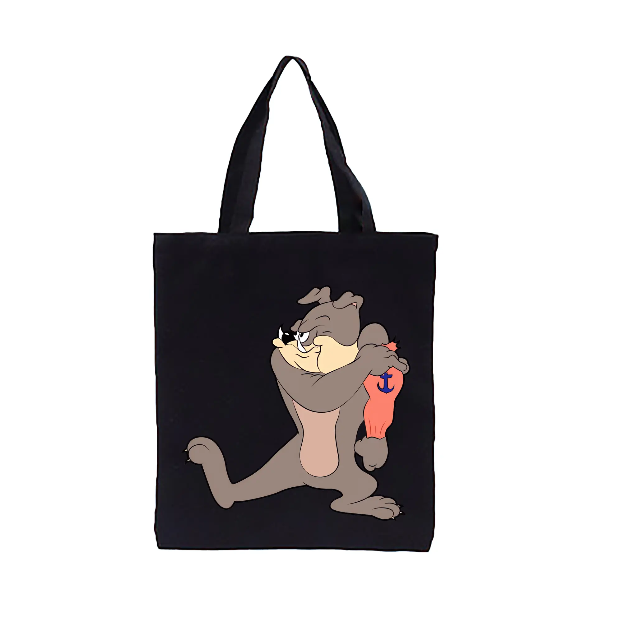 トムとジェリー グッズ スパイク - 縦型キャンバス手提げバッグ(トートバッグ) ・ キャンバス素材 ・ ショッピング用 ・ 軽量 丈夫 お手入れ簡単
