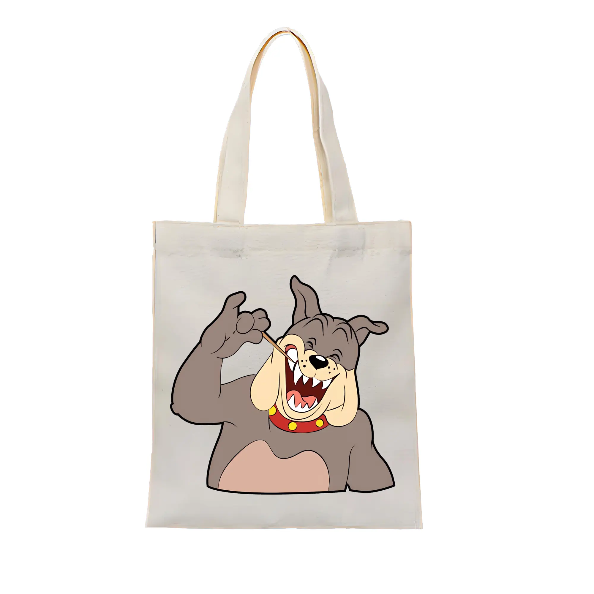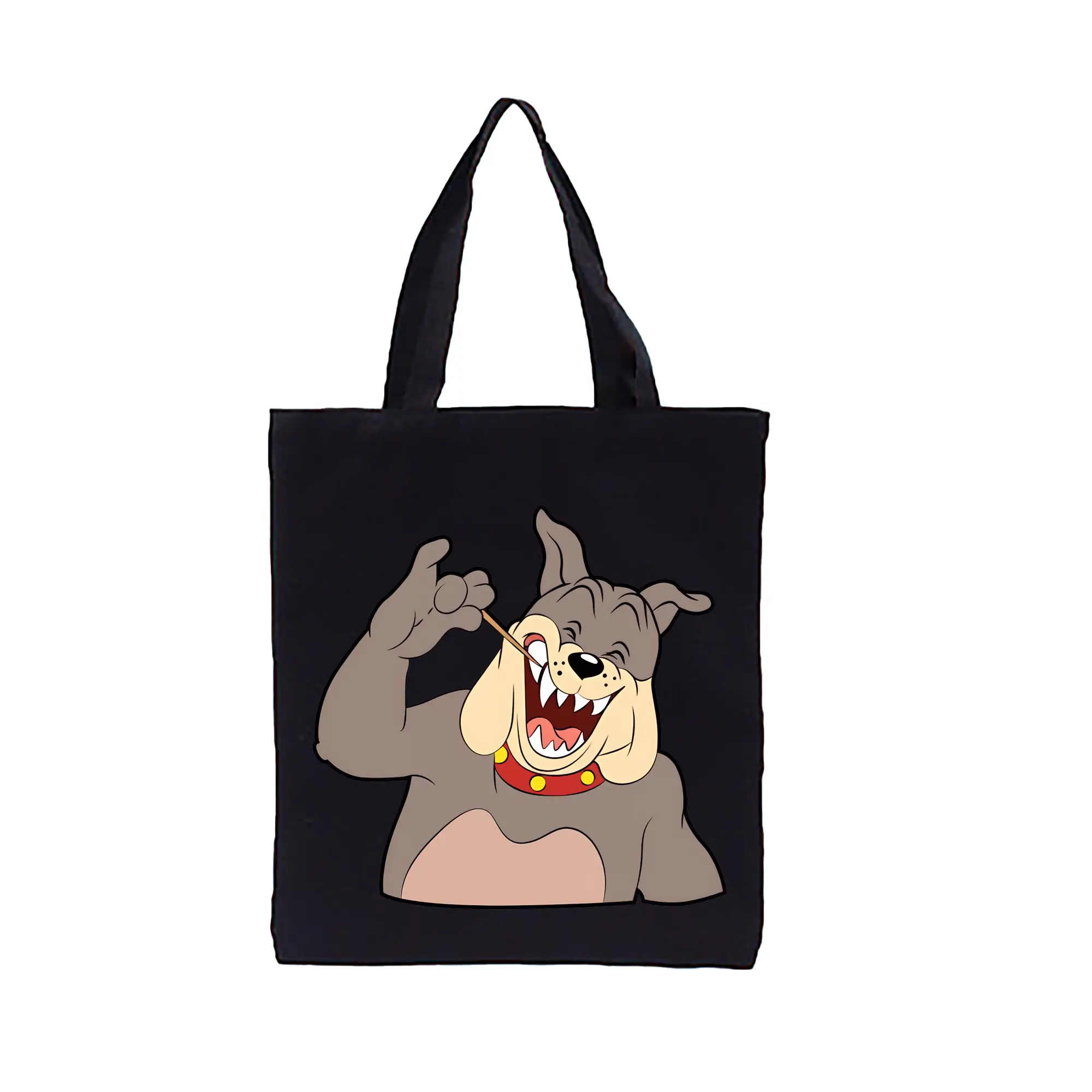 トムとジェリー グッズ スパイク - 縦型キャンバス手提げバッグ(トートバッグ) ・ キャンバス素材 ・ ショッピング用 ・ 軽量 丈夫 お手入れ簡単