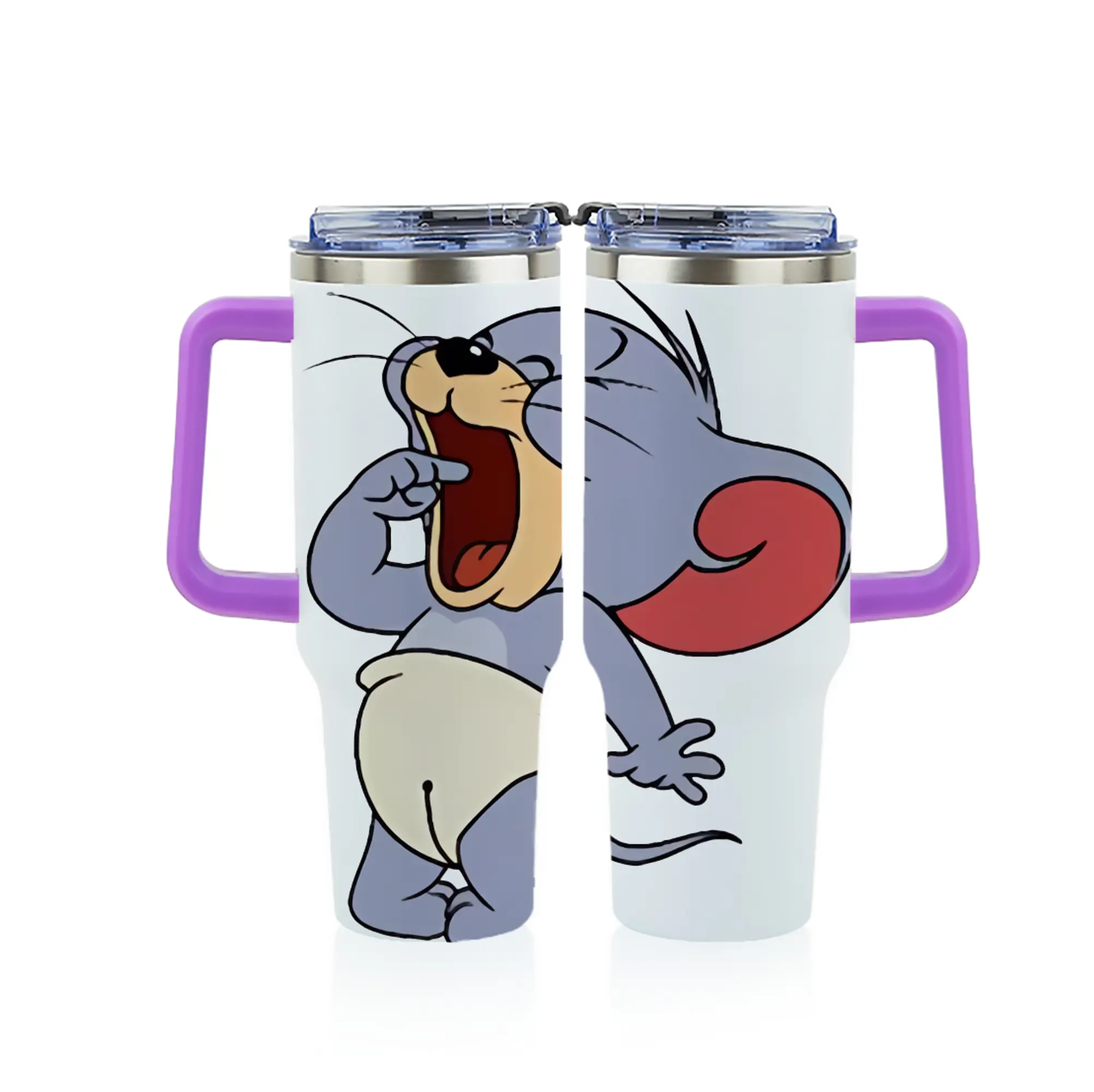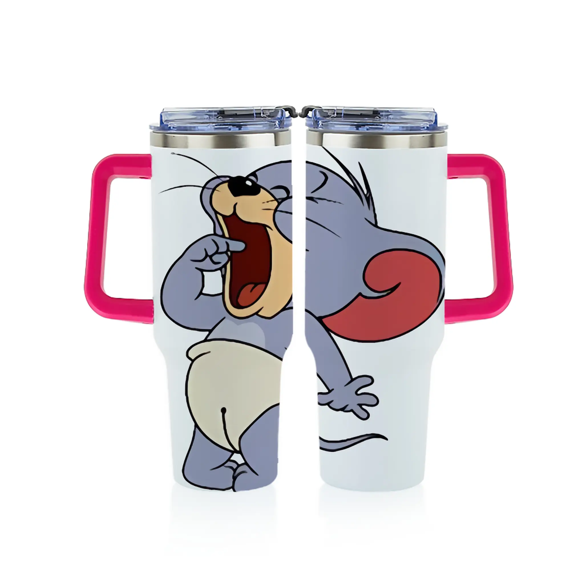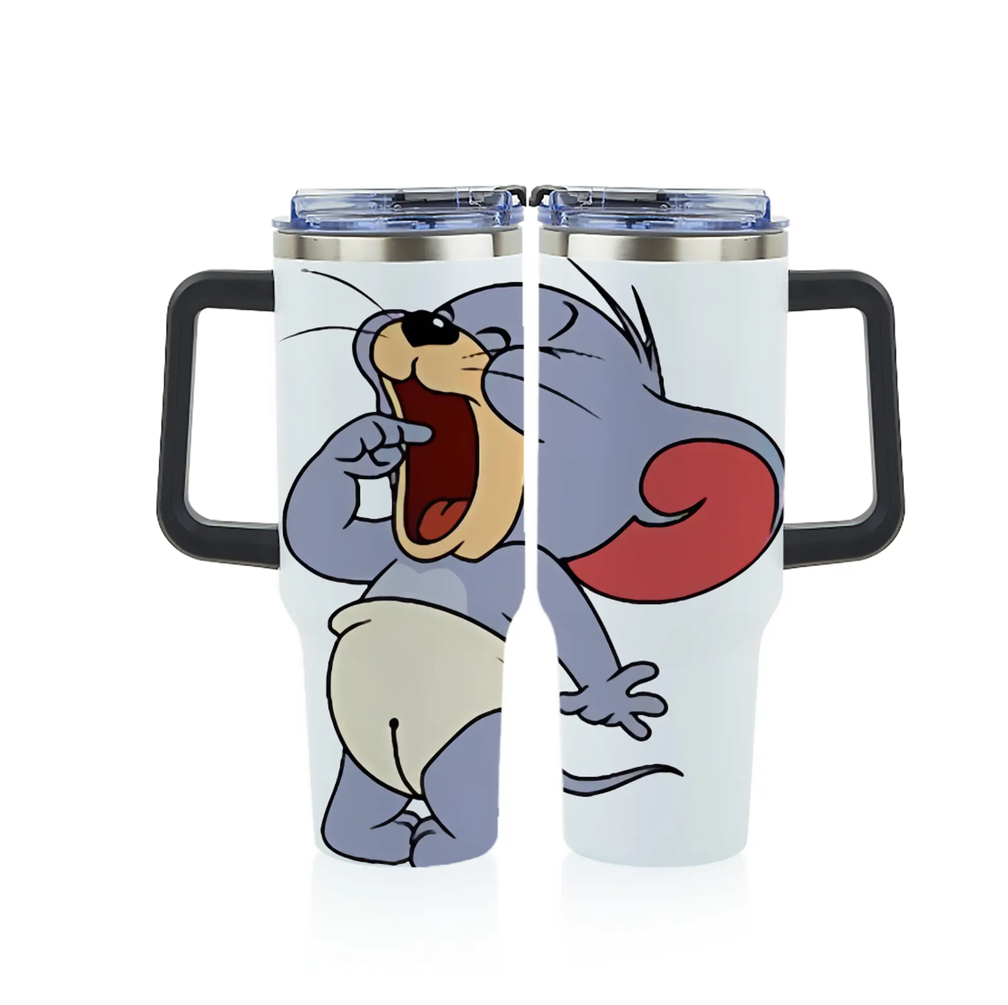 トムとジェリー グッズ タフィー - 1200mL フルプリント車用タンブラー ・ 304ステンレス 内側 ・ 201ステンレス 外側 ・ 保温 保冷 ・ 通勤 ドライブ アウトドア用