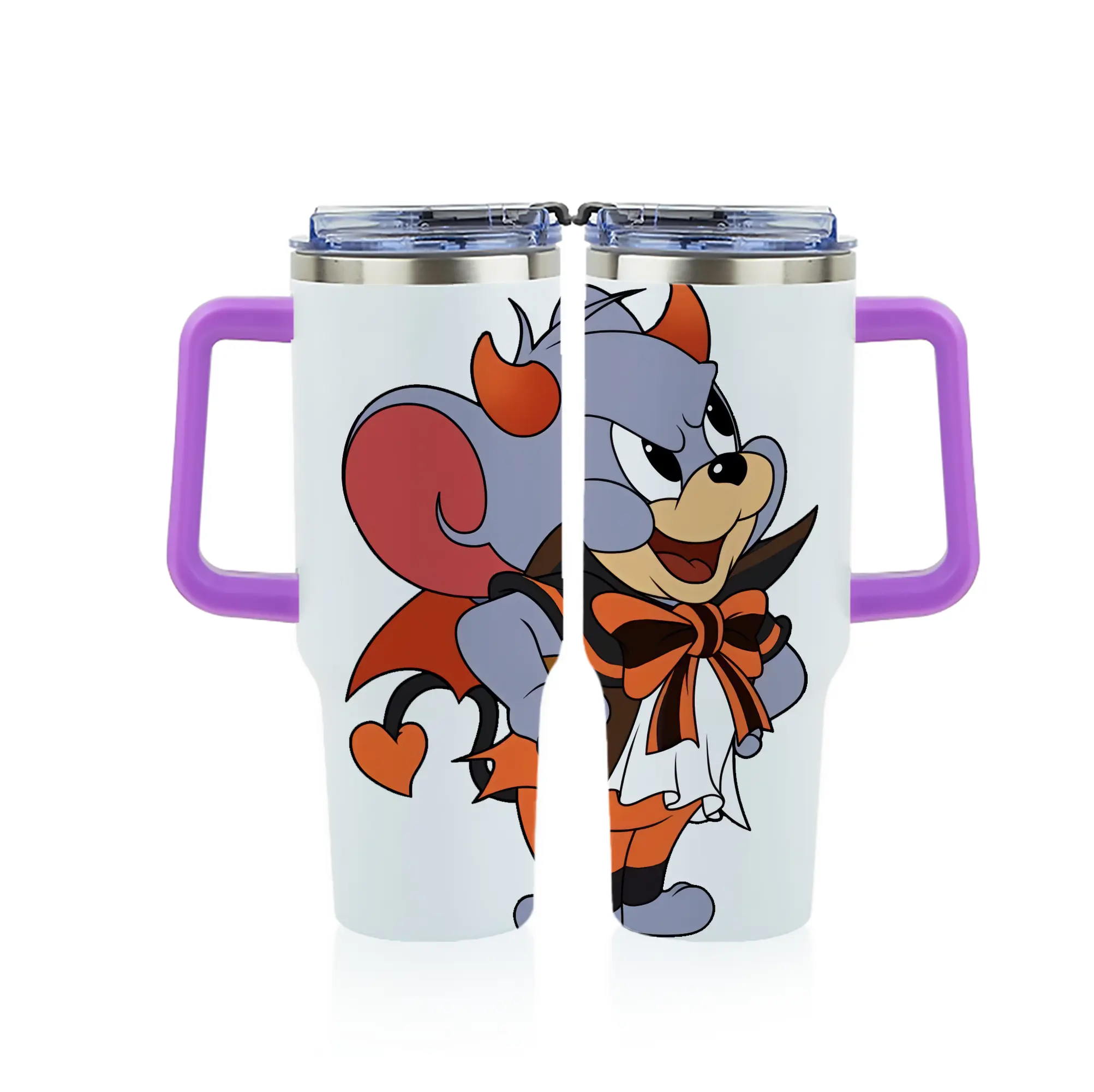 トムとジェリー グッズ タフィー - 1200mL フルプリント車用タンブラー ・ 304ステンレス 内側 ・ 201ステンレス 外側 ・ 保温 保冷 ・ 通勤 ドライブ アウトドア用