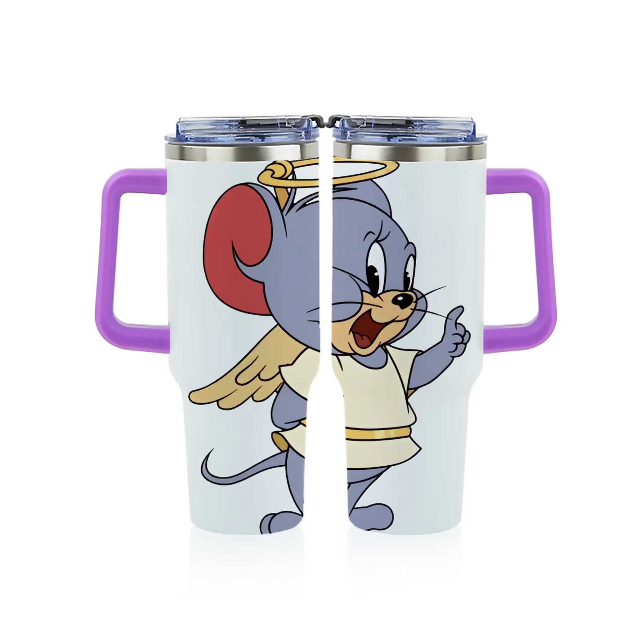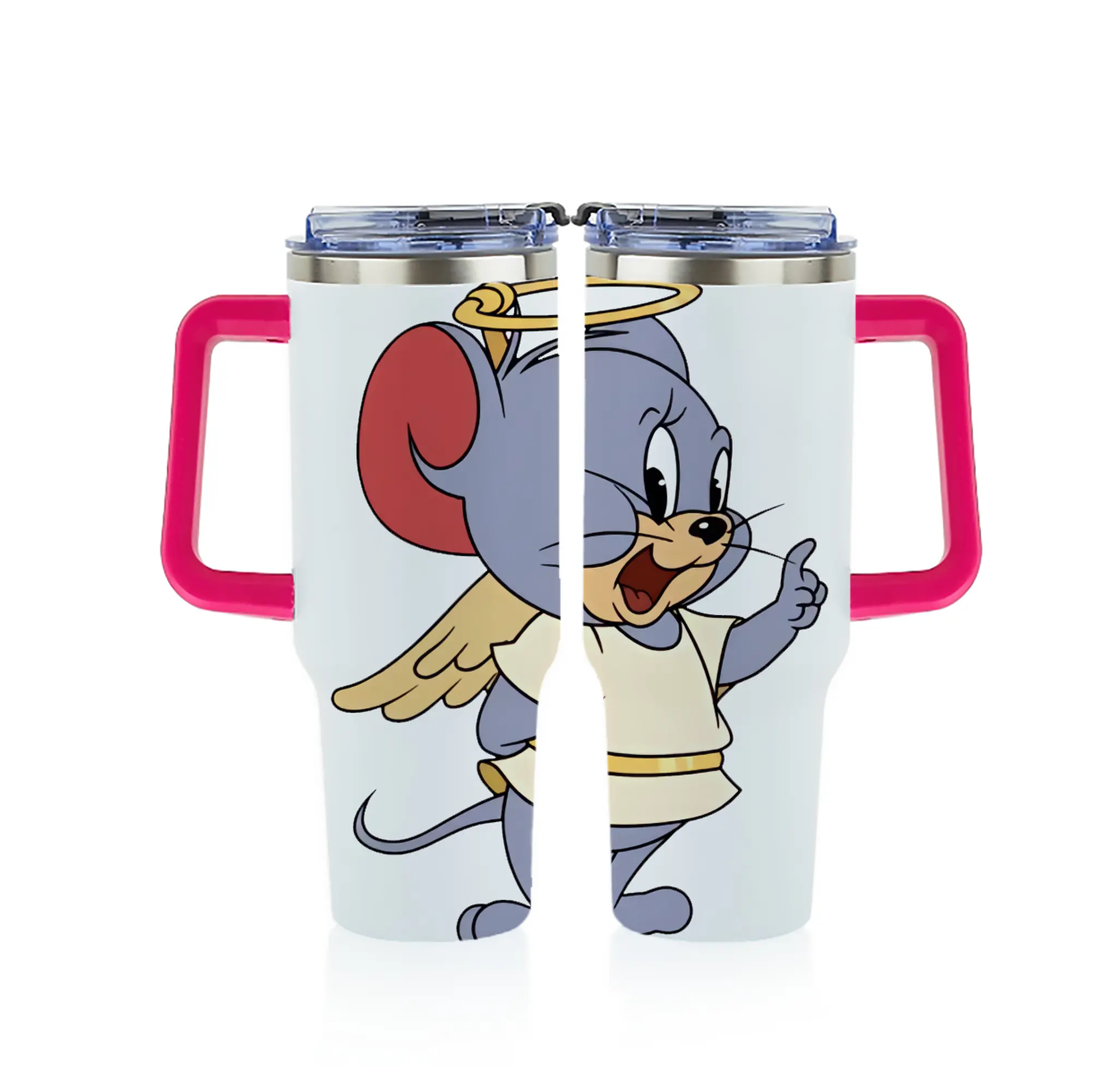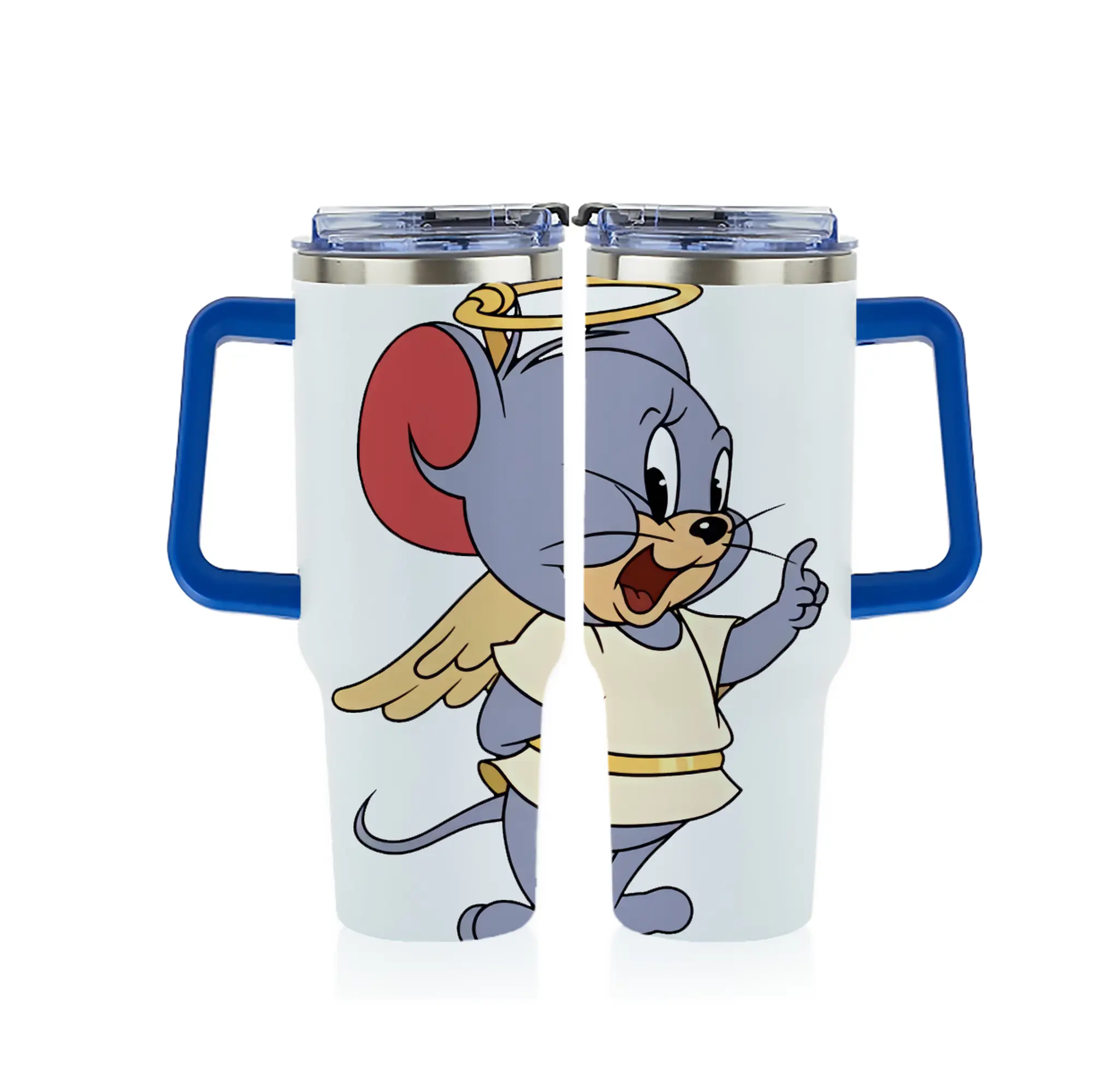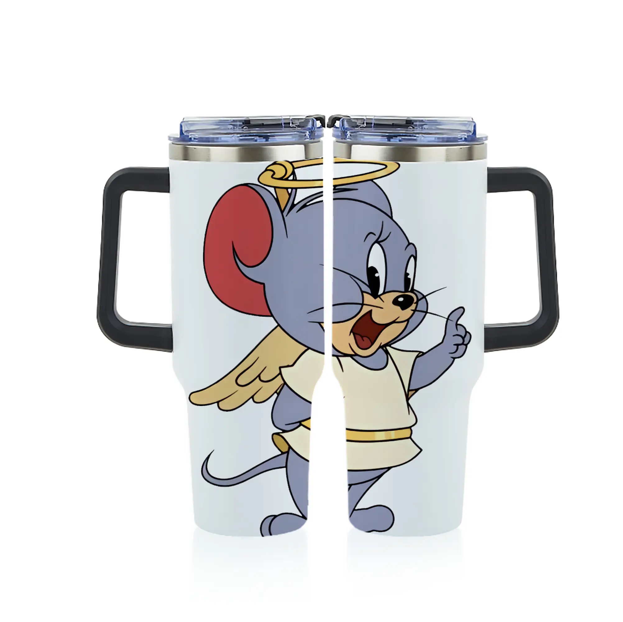 トムとジェリー グッズ タフィー - 1200mL フルプリント車用タンブラー ・ 304ステンレス 内側 ・ 201ステンレス 外側 ・ 保温 保冷 ・ 通勤 ドライブ アウトドア用