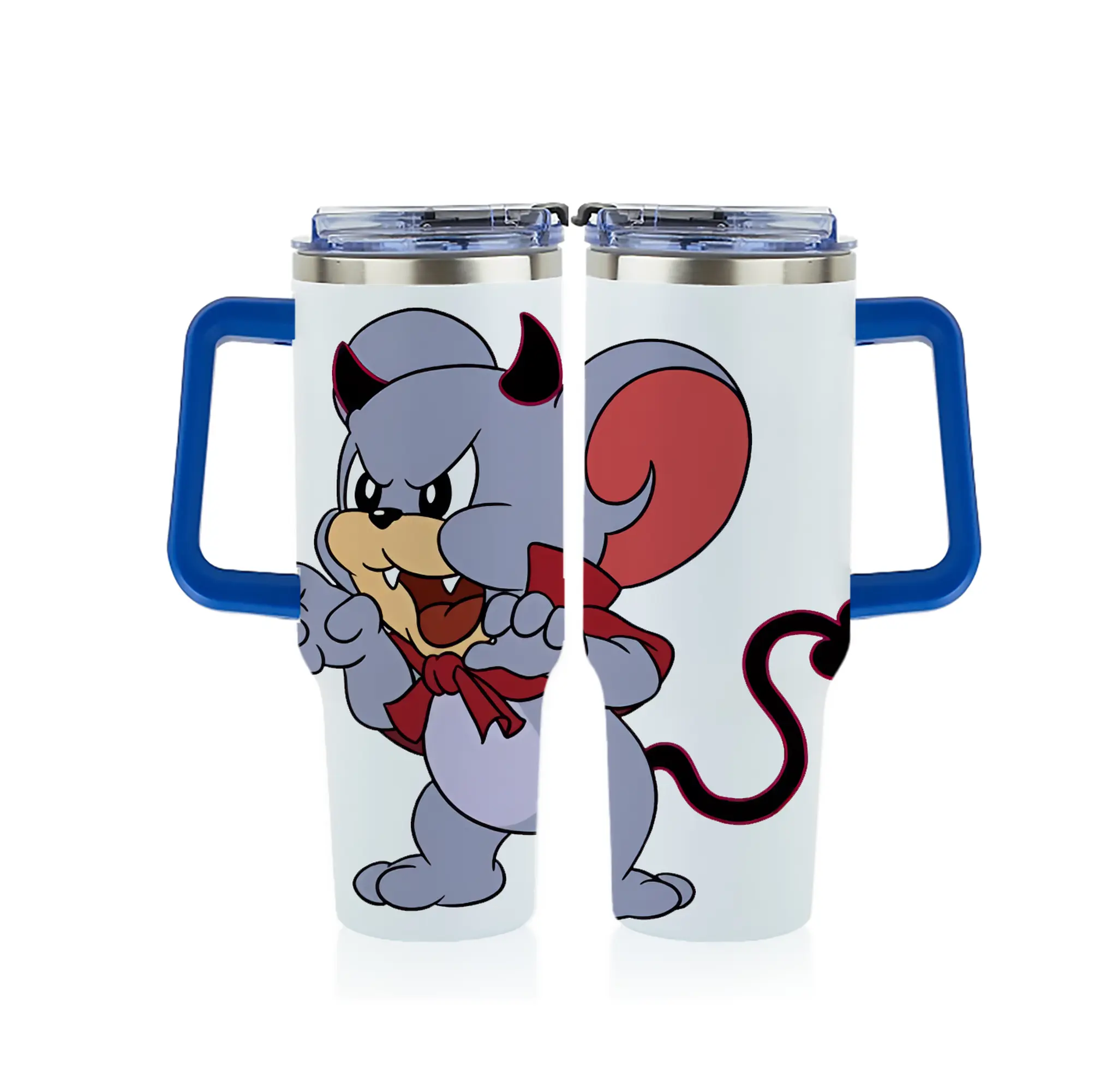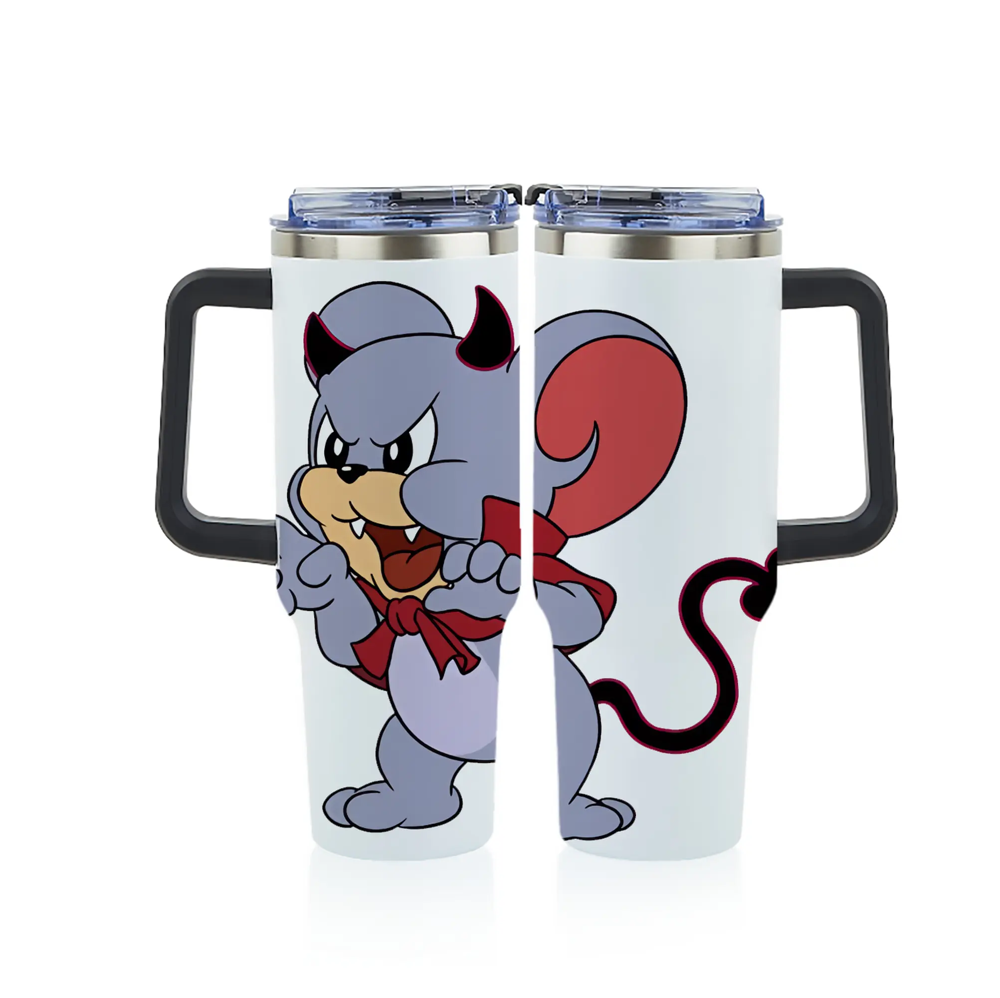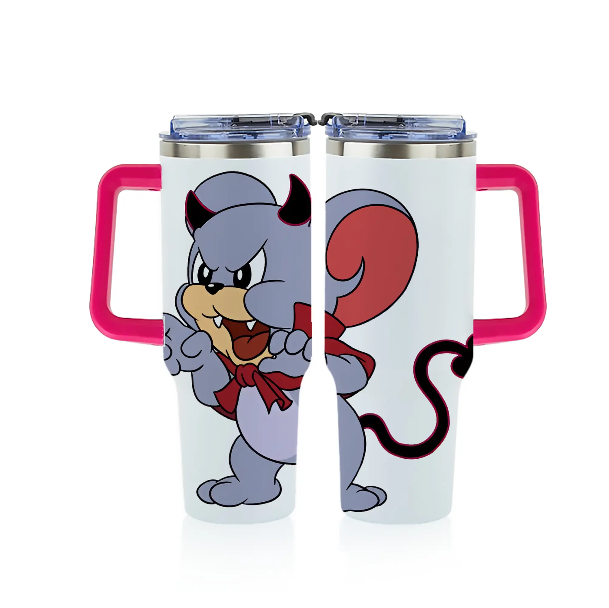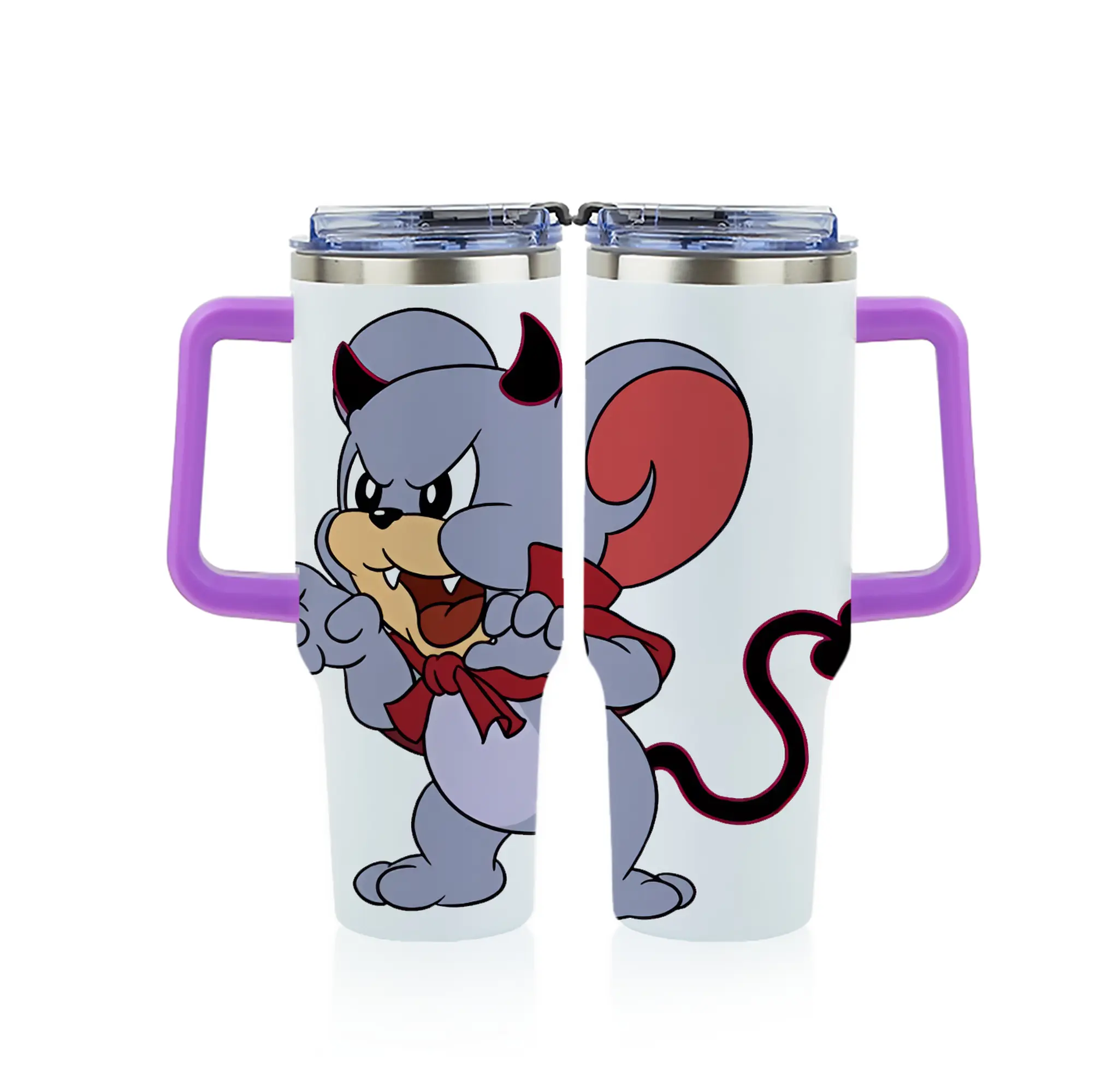 トムとジェリー グッズ タフィー - 1200mL フルプリント車用タンブラー ・ 304ステンレス 内側 ・ 201ステンレス 外側 ・ 保温 保冷 ・ 通勤 ドライブ アウトドア用