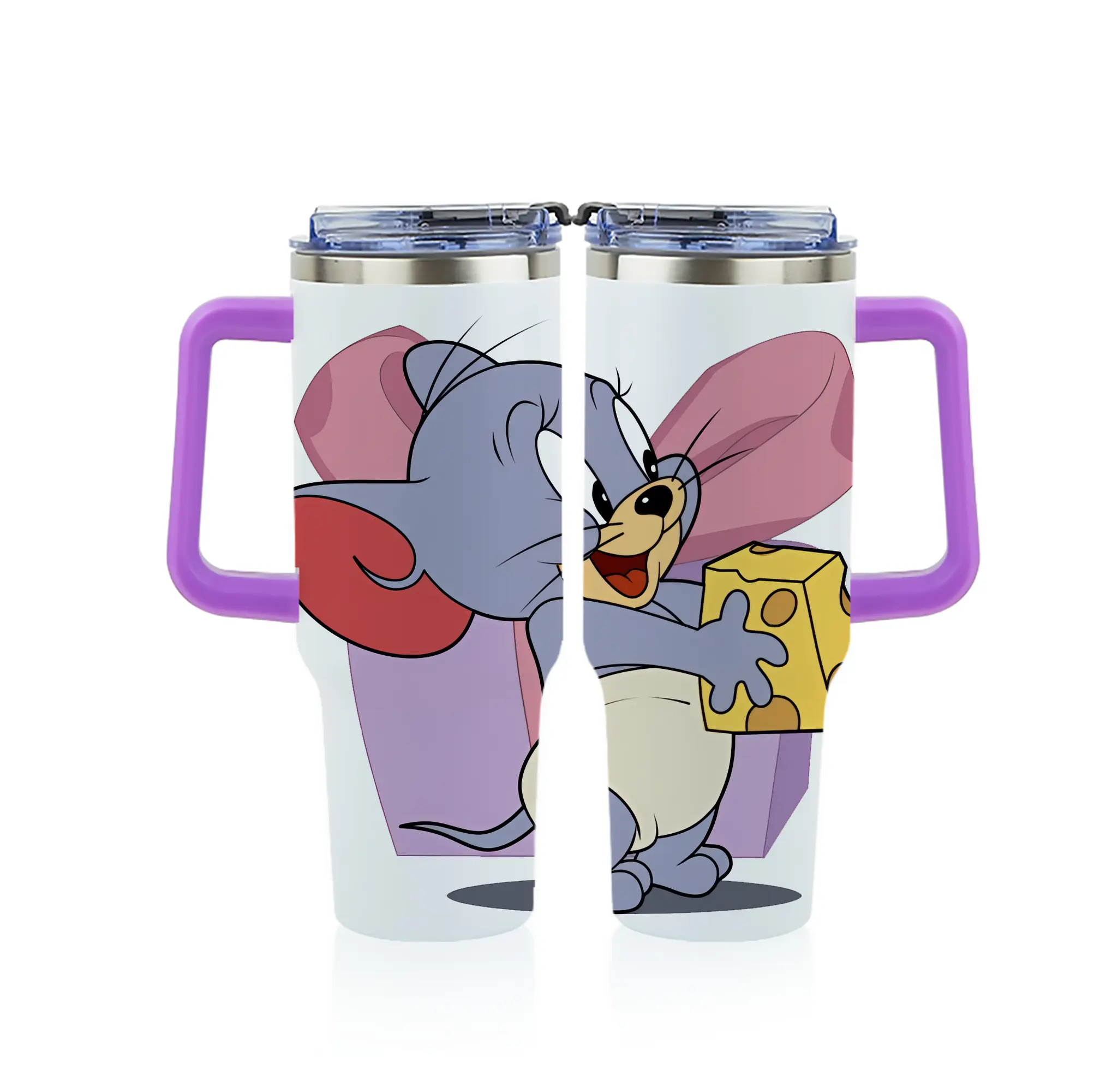 トムとジェリー グッズ タフィー - 1200mL フルプリント車用タンブラー ・ 304ステンレス 内側 ・ 201ステンレス 外側 ・ 保温 保冷 ・ 通勤 ドライブ アウトドア用