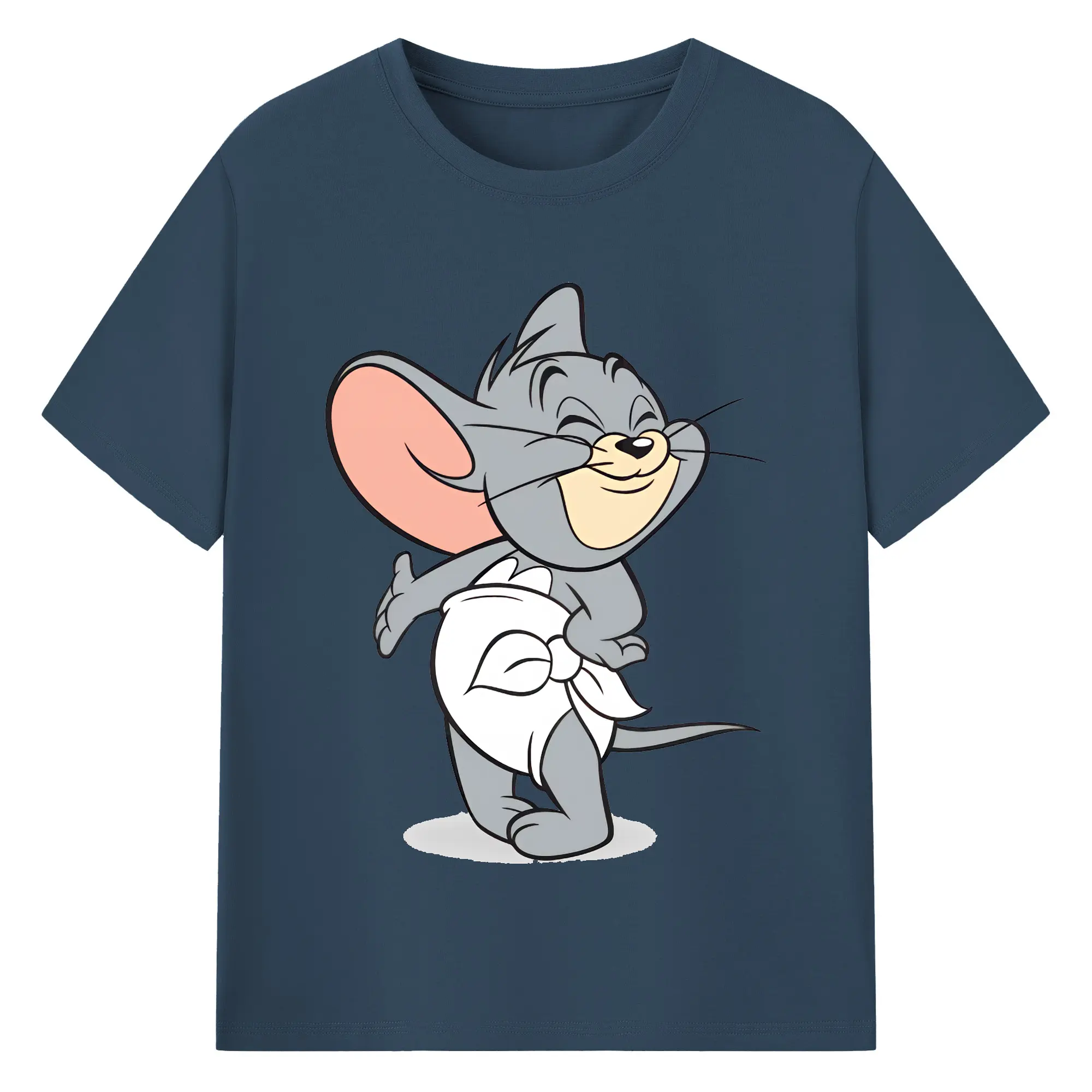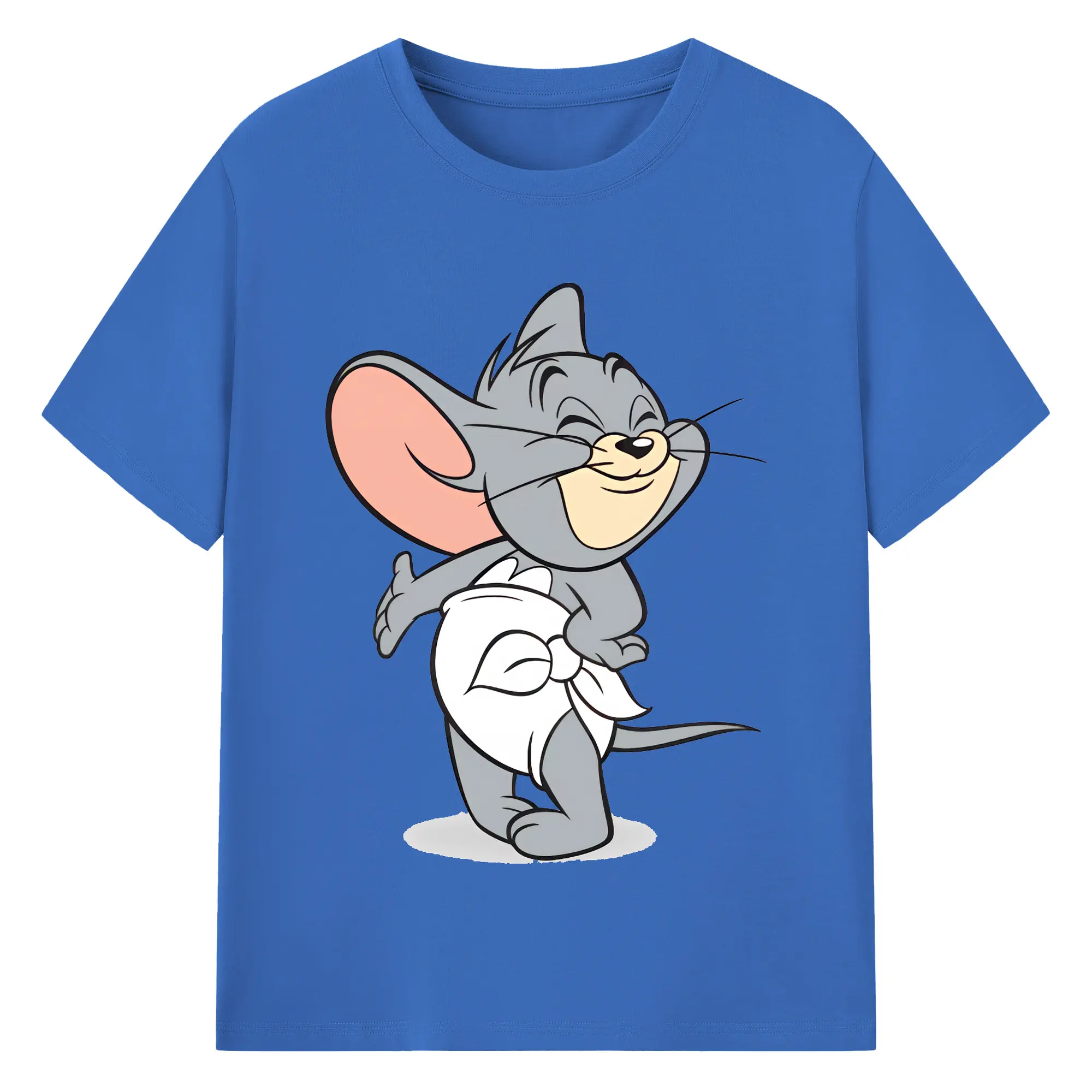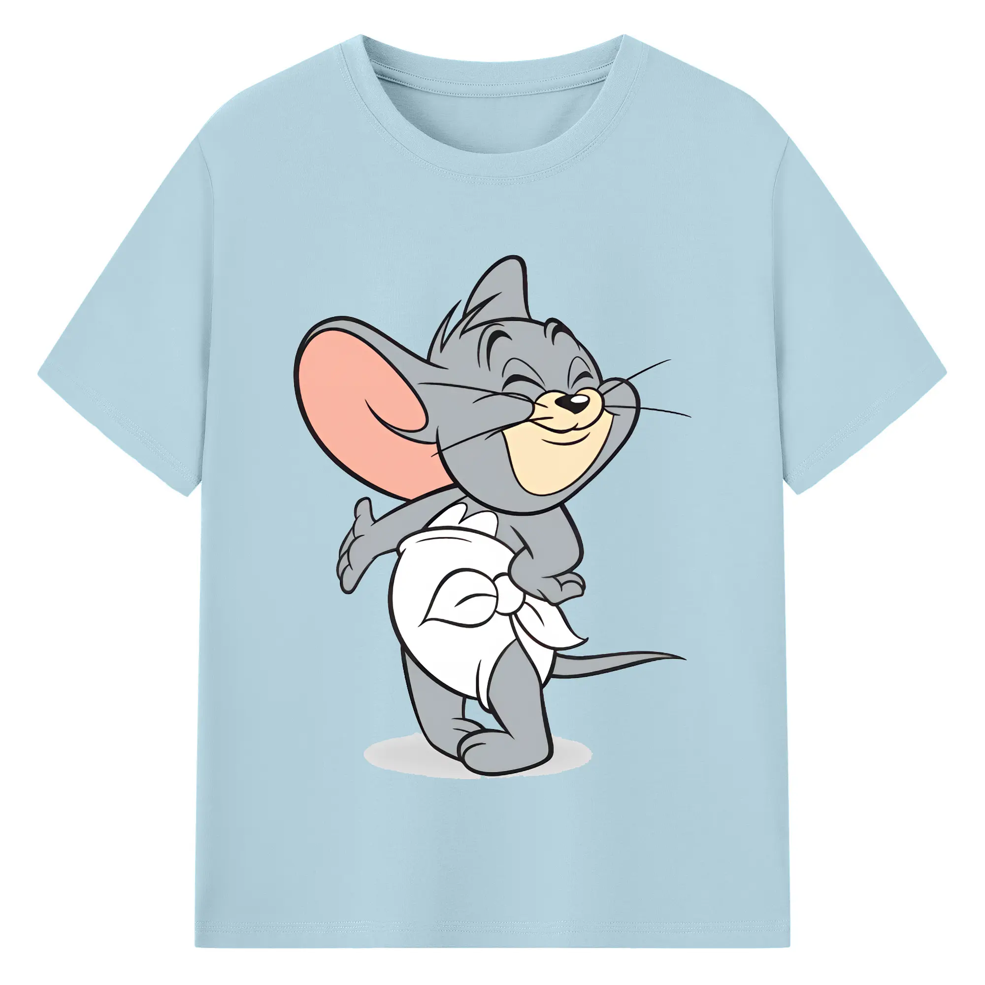 トムとジェリー グッズ トム - 綿100% 半袖Tシャツ ・ フロントプリント ・ 快適 通気性 ・ 日常使い 散歩 スポーツ用