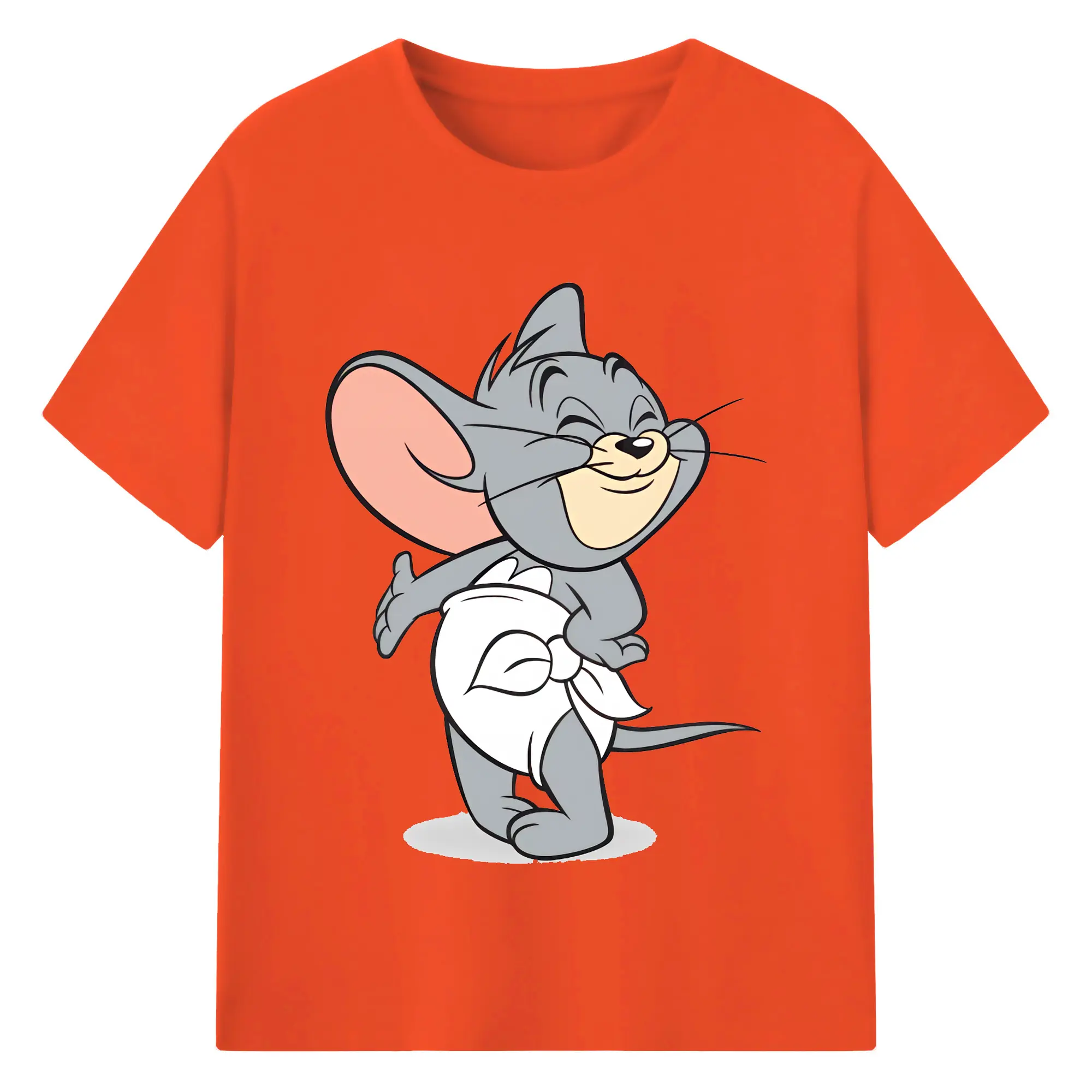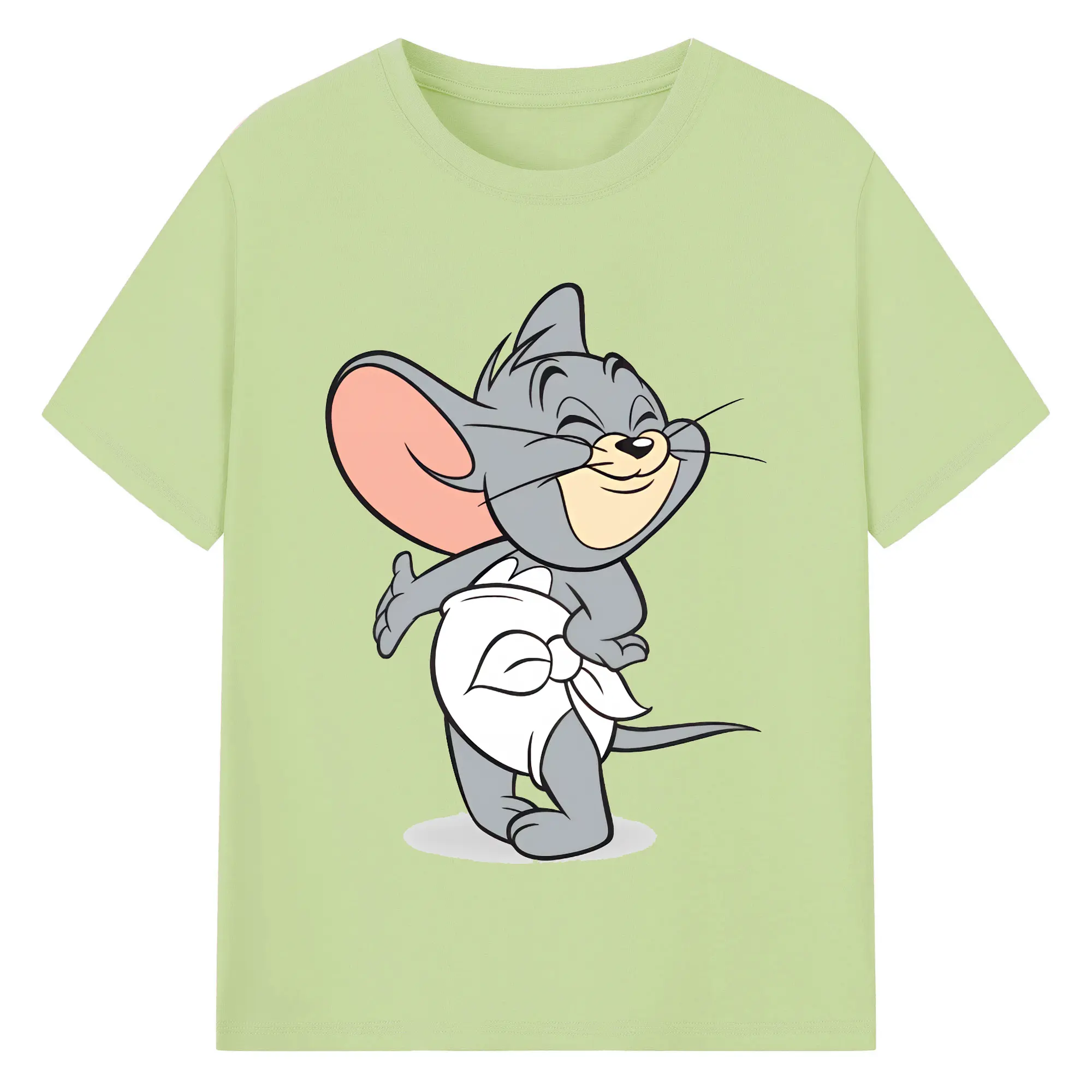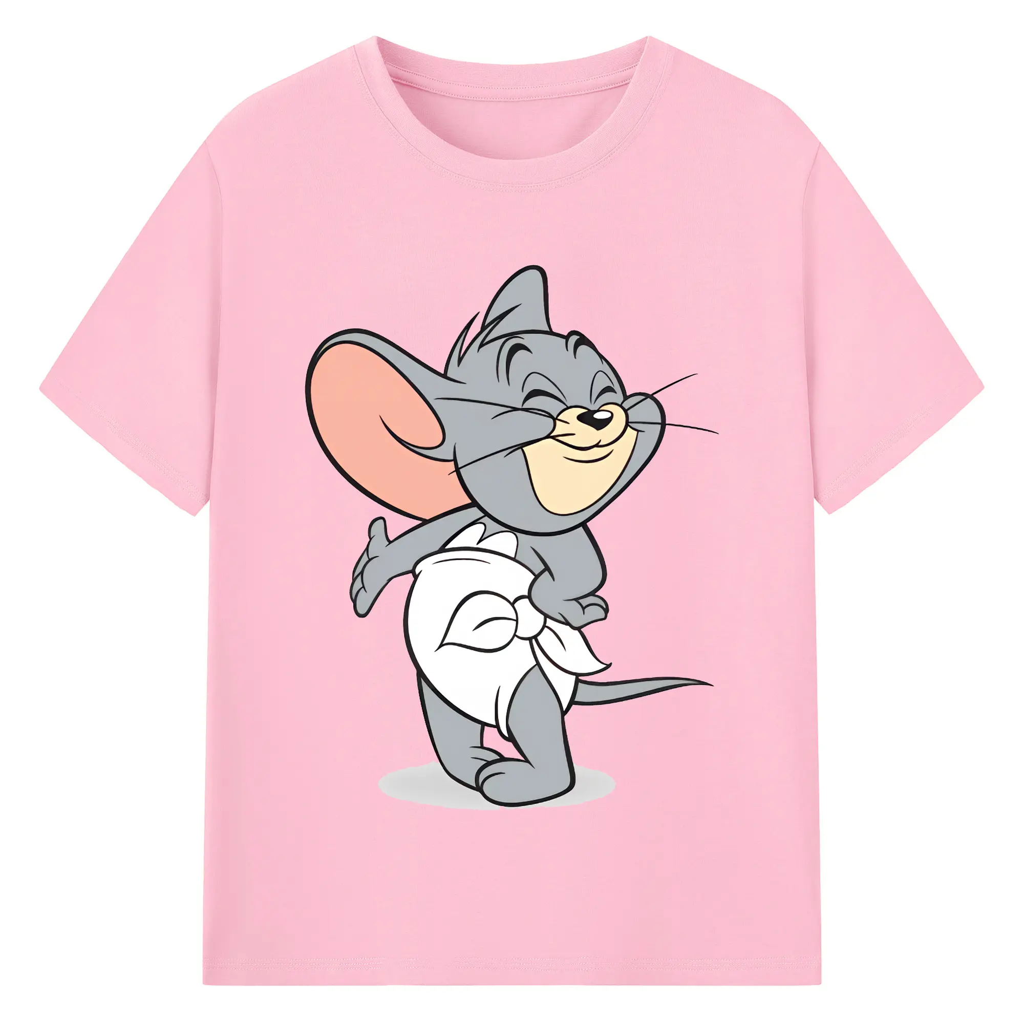 トムとジェリー グッズ トム - 綿100% 半袖Tシャツ ・ フロントプリント ・ 快適 通気性 ・ 日常使い 散歩 スポーツ用