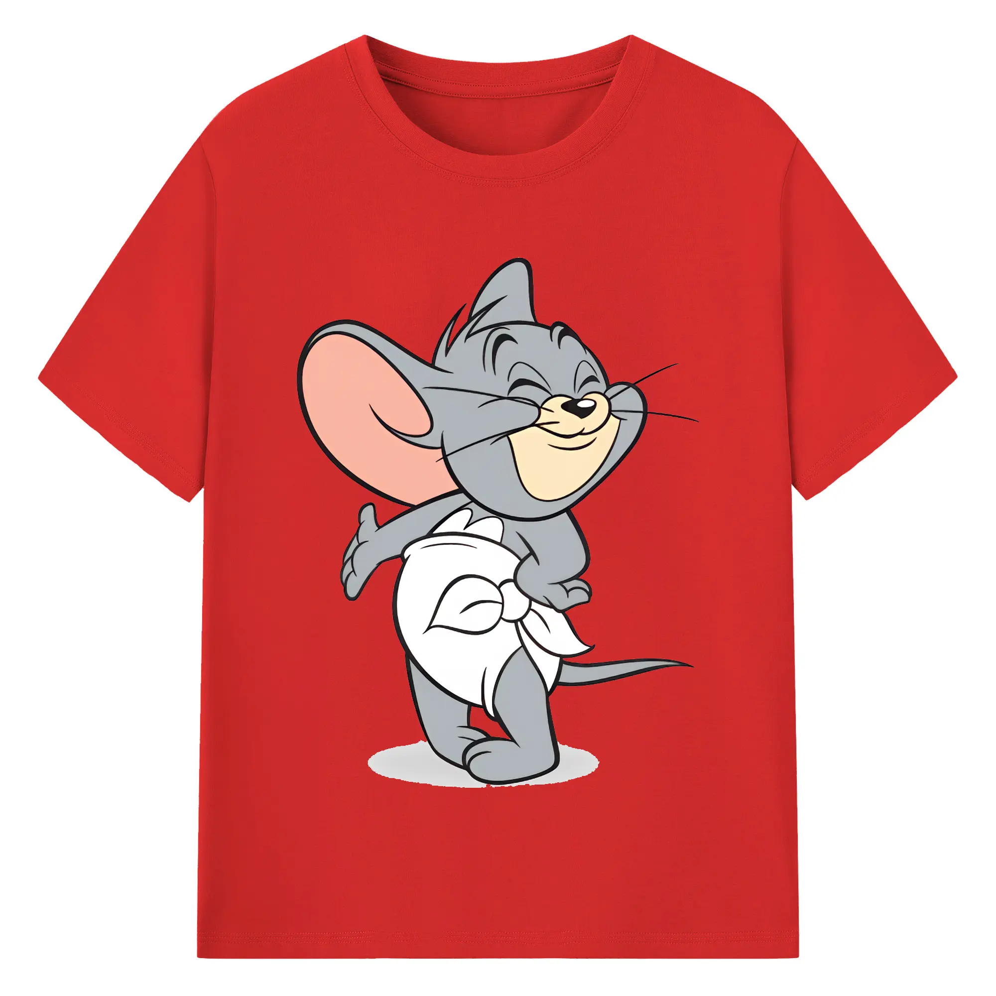 トムとジェリー グッズ タフィー - 綿100% 半袖Tシャツ ・ バックプリント ・ 快適 通気性 ・ 日常使い 散歩 スポーツ用