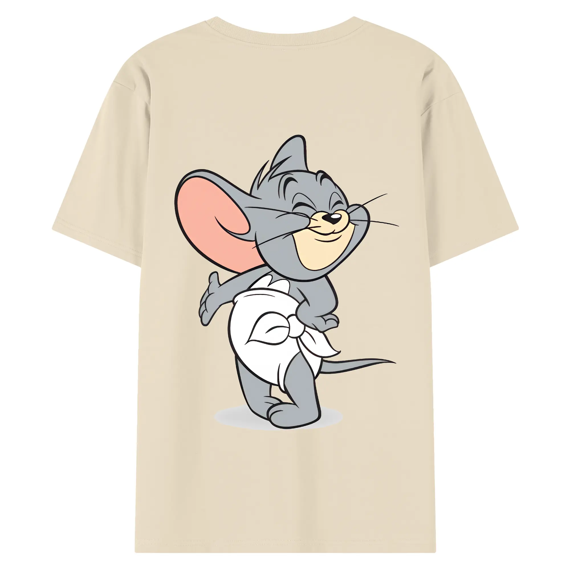 トムとジェリー グッズ タフィー - 綿100% ヴィンテージ風 半袖Tシャツ ・ 背面プリント ・ 柔らか肌触り ・ 通気性 快適 ・ スポーツ カジュアル 外出用