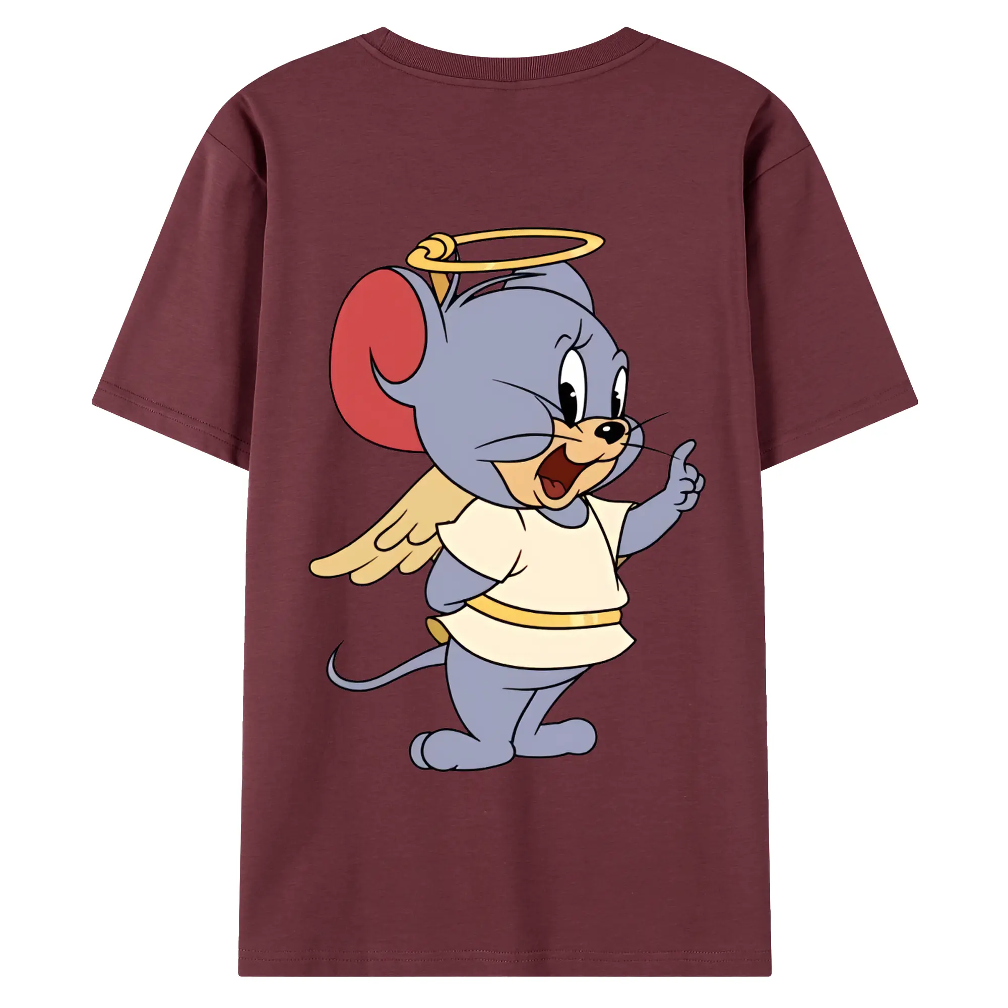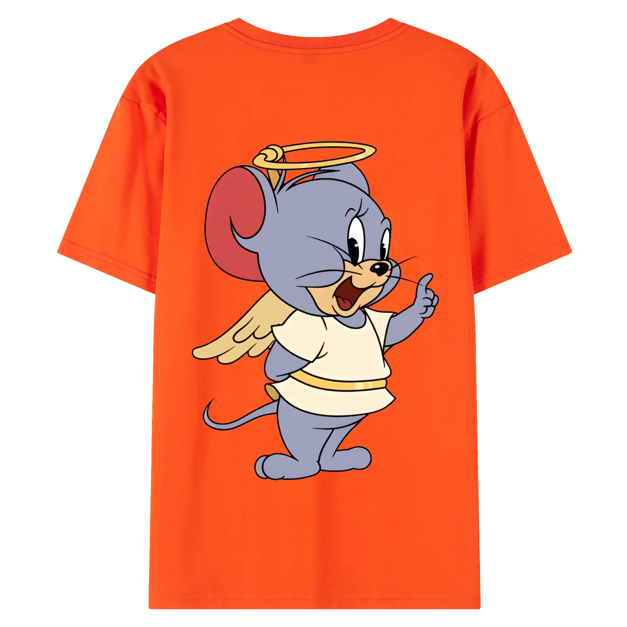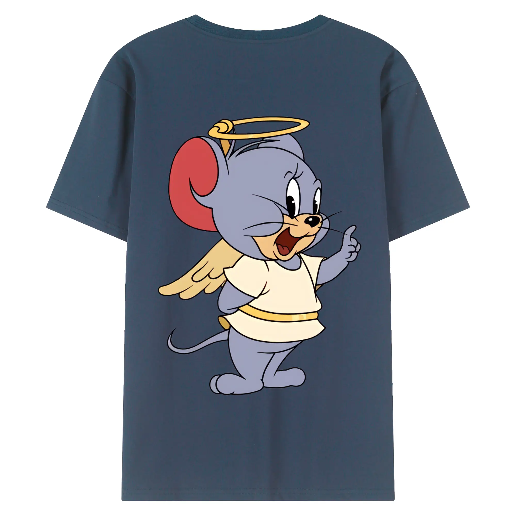 トムとジェリー グッズ タフィー - 綿100% ヴィンテージ風 半袖Tシャツ ・ 背面プリント ・ 柔らか肌触り ・ 通気性 快適 ・ スポーツ カジュアル 外出用