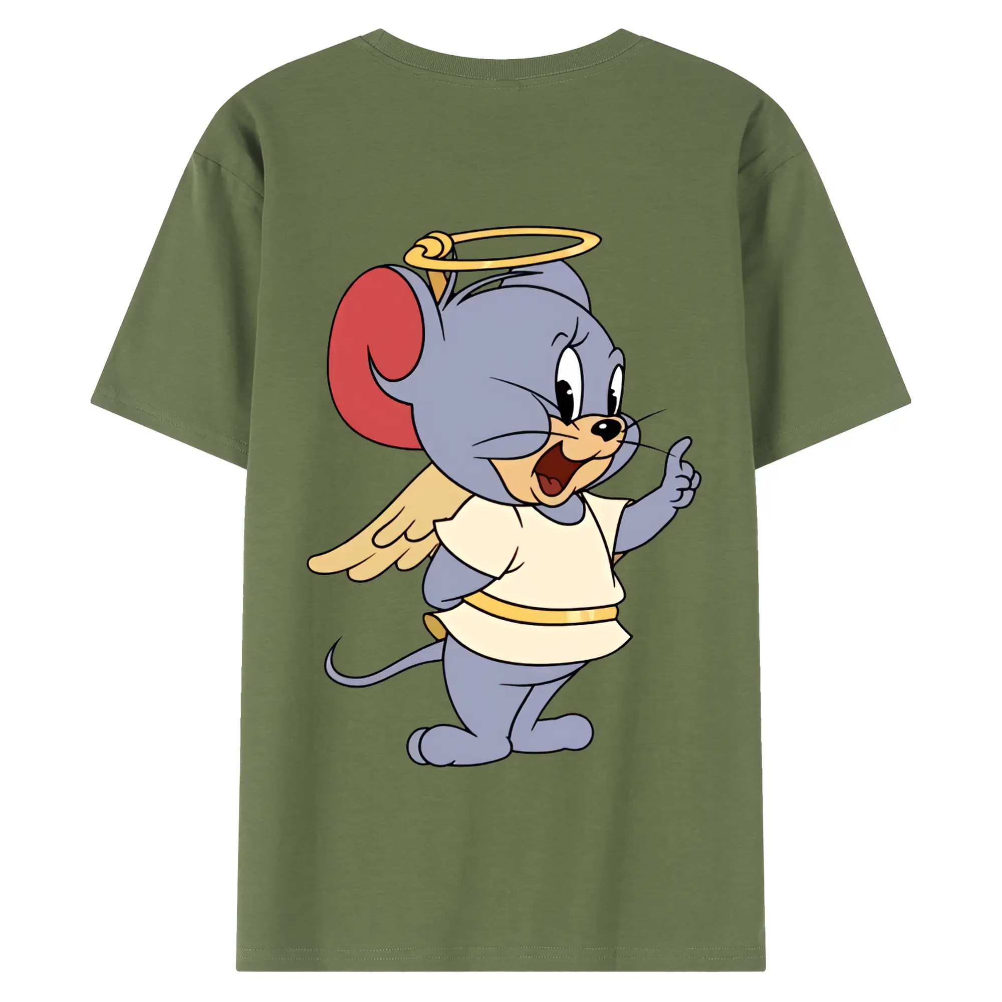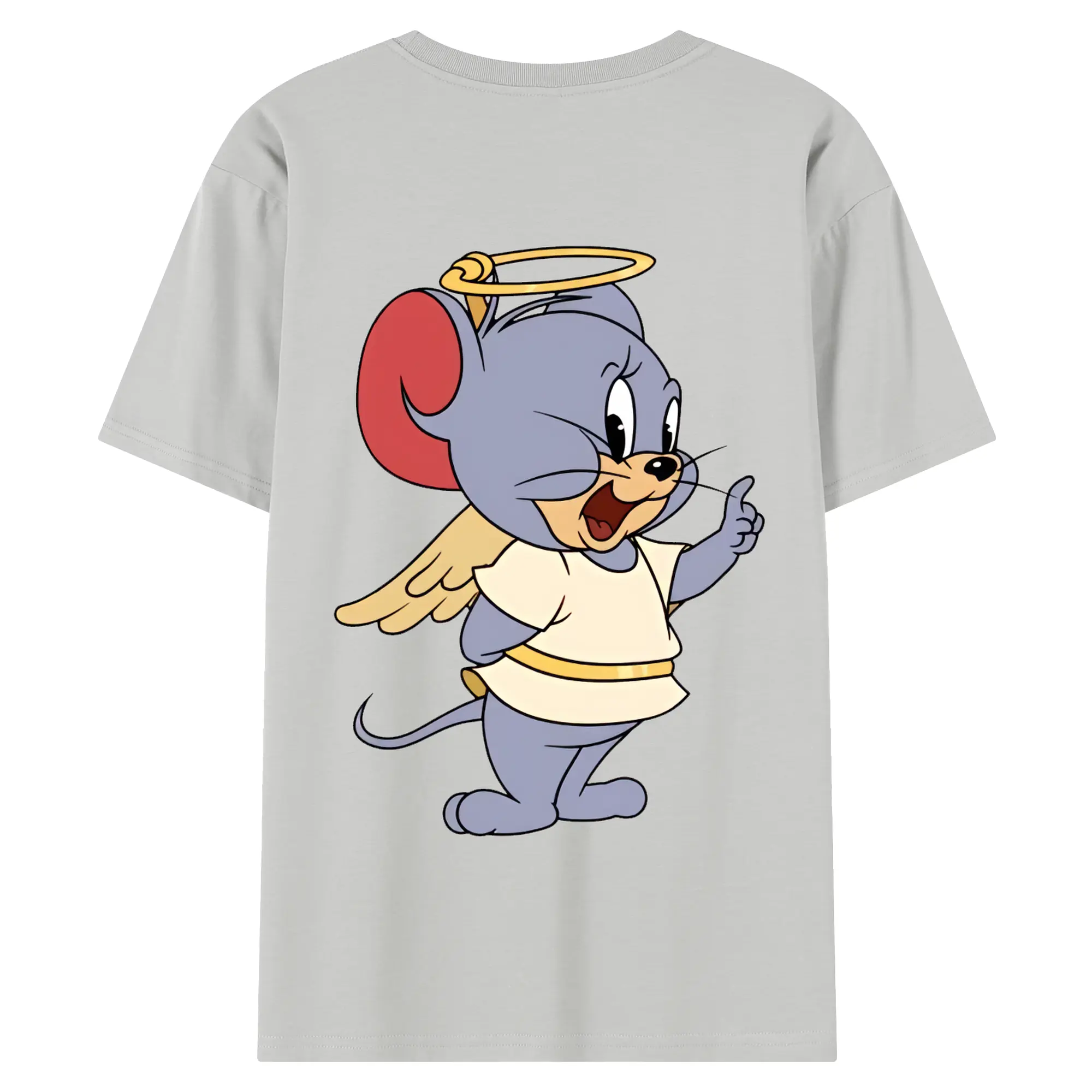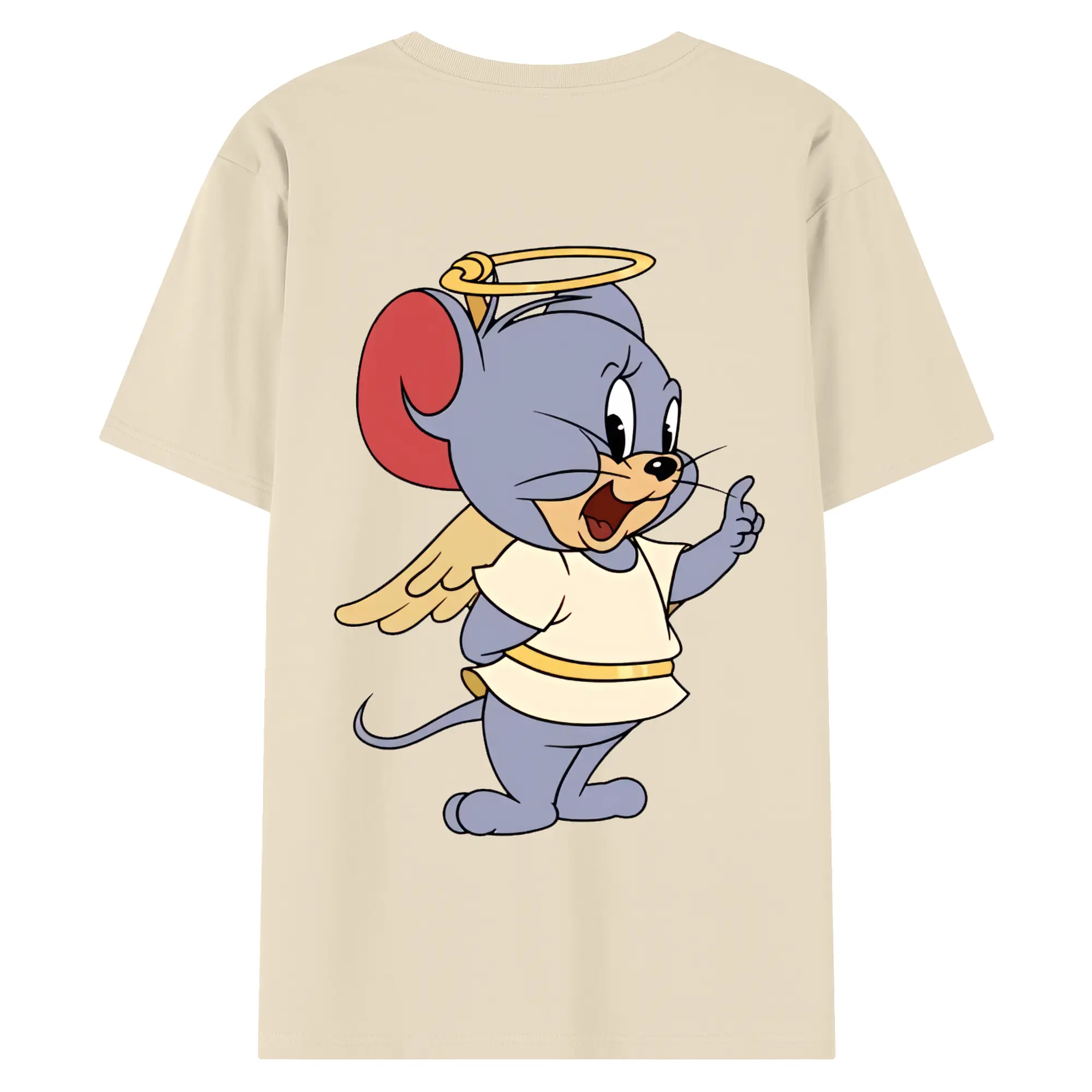 トムとジェリー グッズ タフィー - 綿100% ヴィンテージ風 半袖Tシャツ ・ 背面プリント ・ 柔らか肌触り ・ 通気性 快適 ・ スポーツ カジュアル 外出用