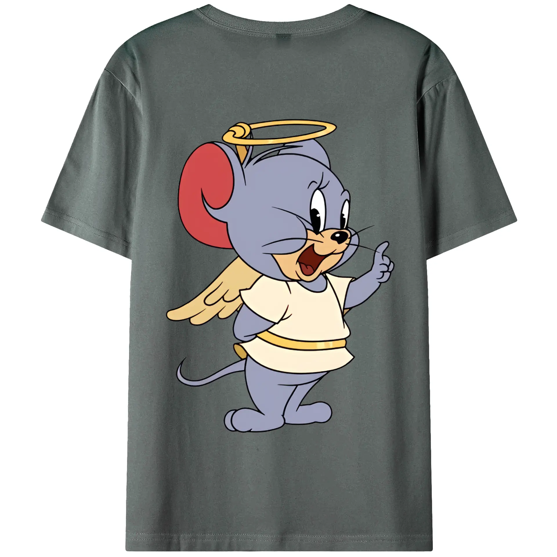 トムとジェリー グッズ タフィー - 綿100% 半袖Tシャツ ・ フロントプリント ・ 快適 通気性 ・ 日常使い 散歩 スポーツ用