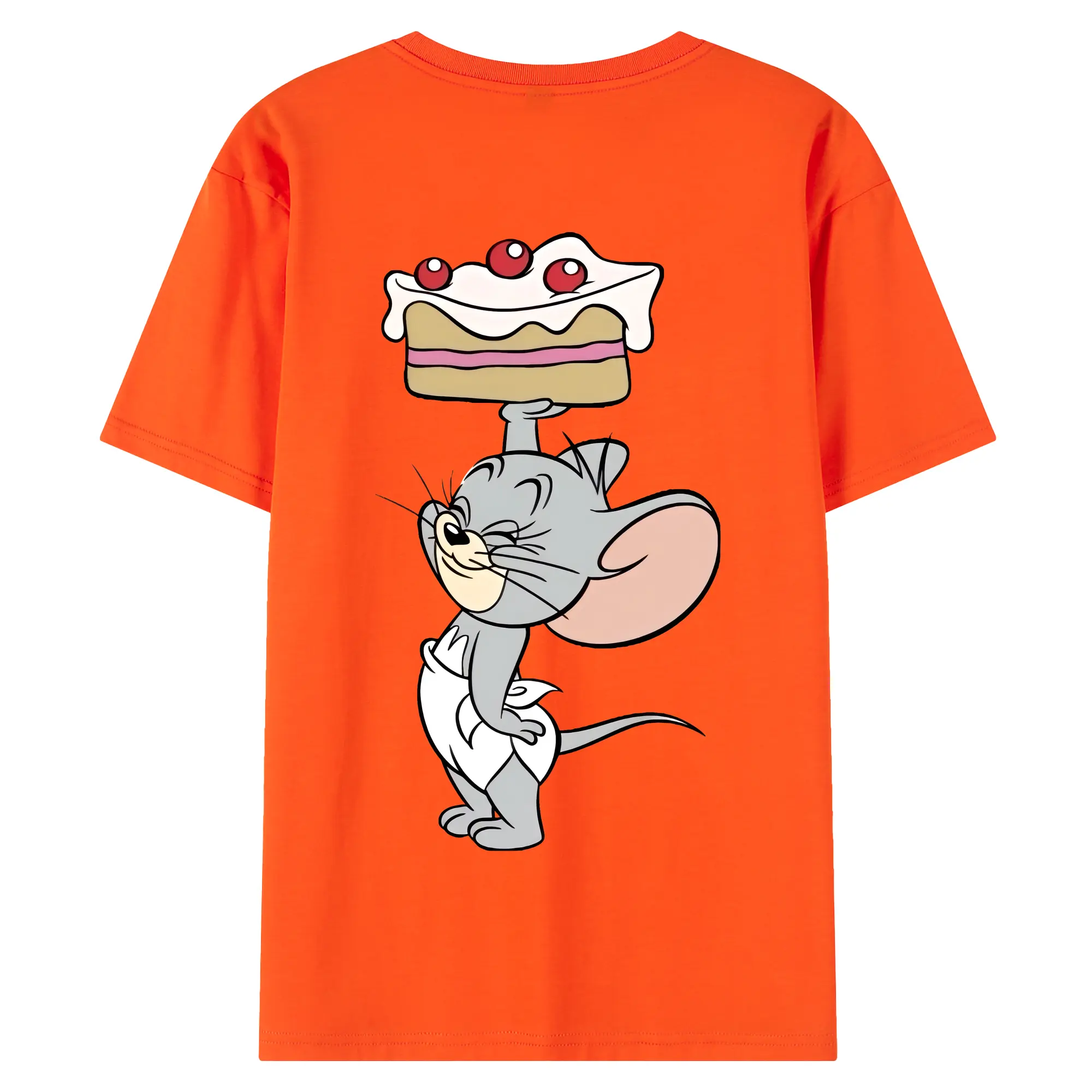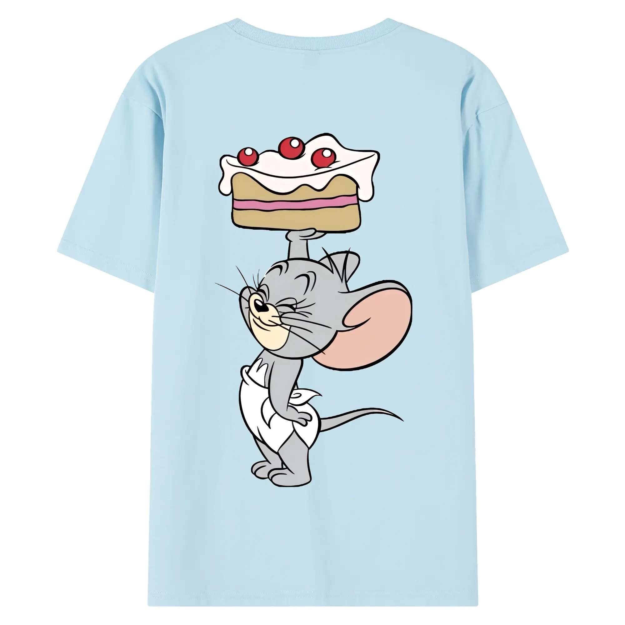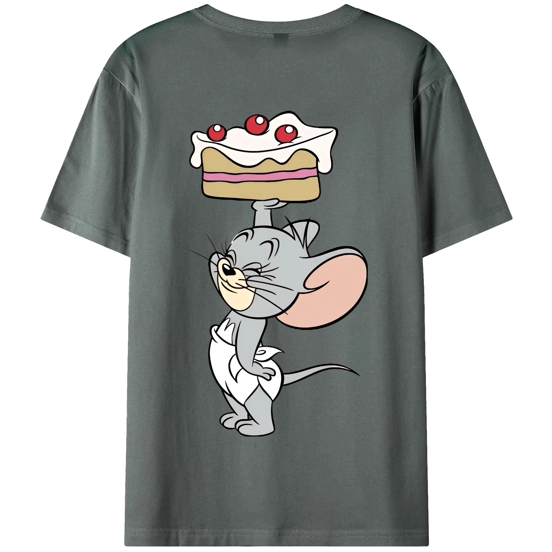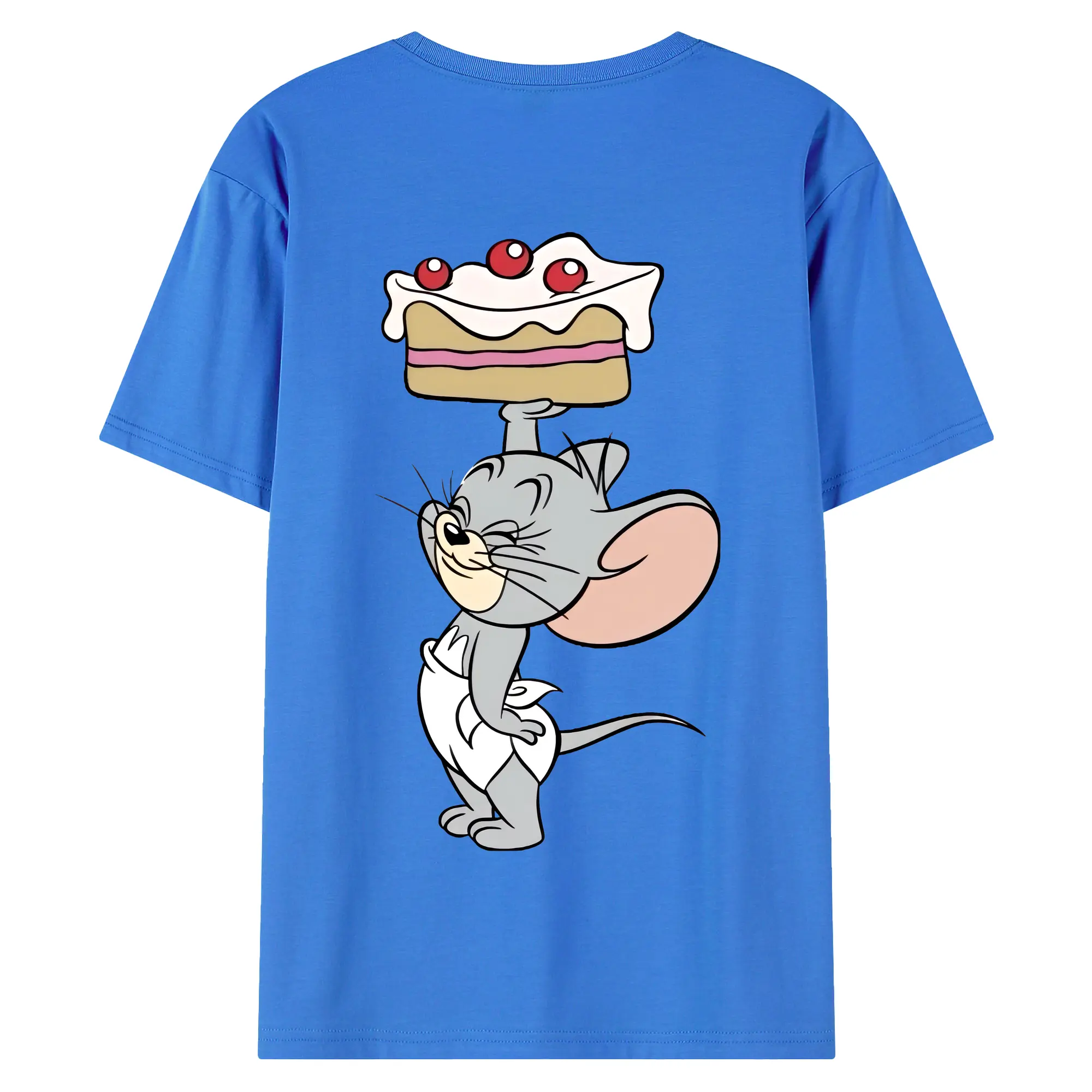 トムとジェリー グッズ トム - 綿100% 半袖Tシャツ ・ バックプリント ・ 快適 通気性 ・ 日常使い 散歩 スポーツ用