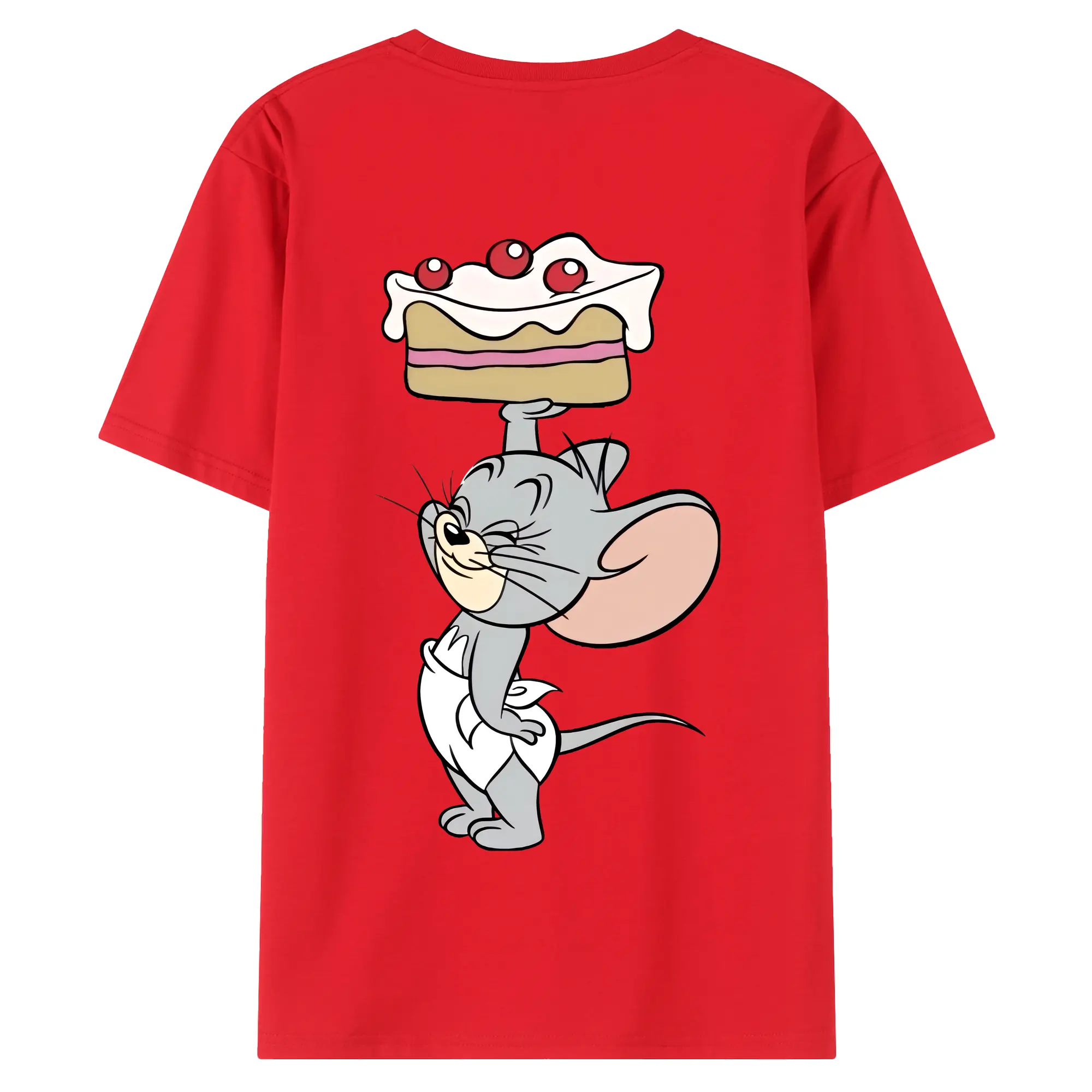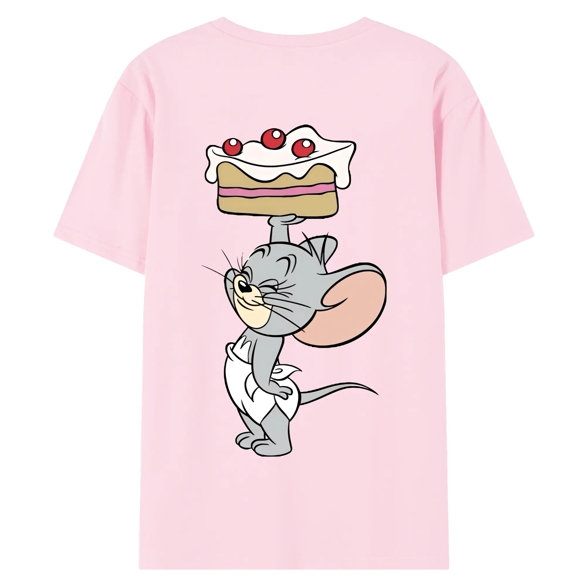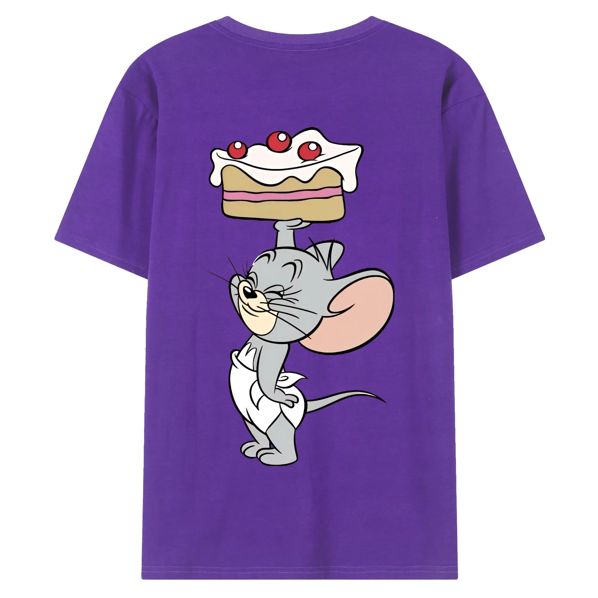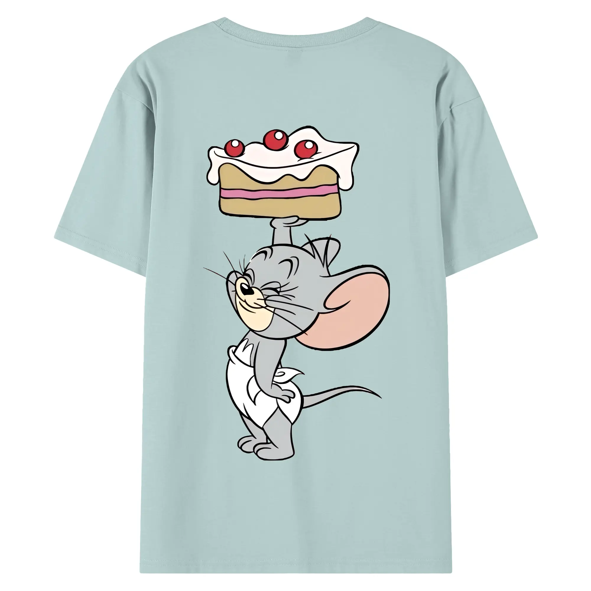 トムとジェリー グッズ トム - 綿100% 半袖Tシャツ ・ バックプリント ・ 快適 通気性 ・ 日常使い 散歩 スポーツ用