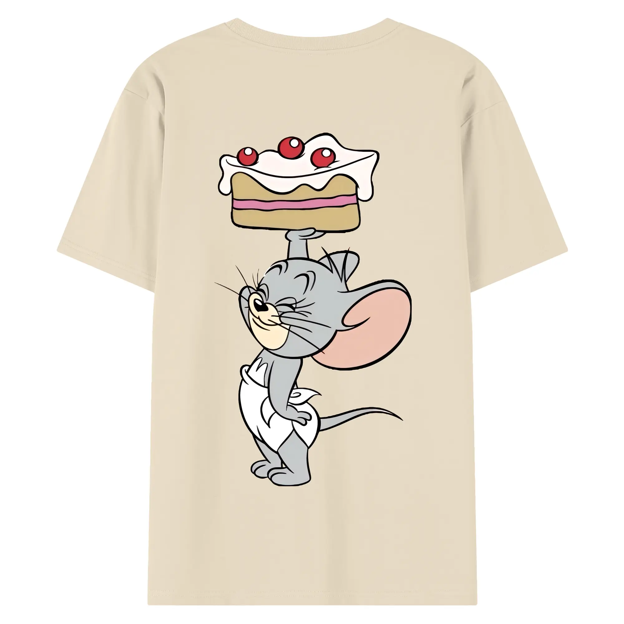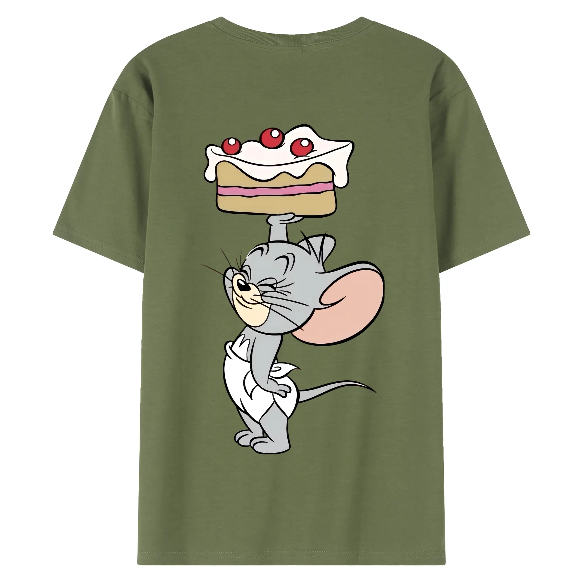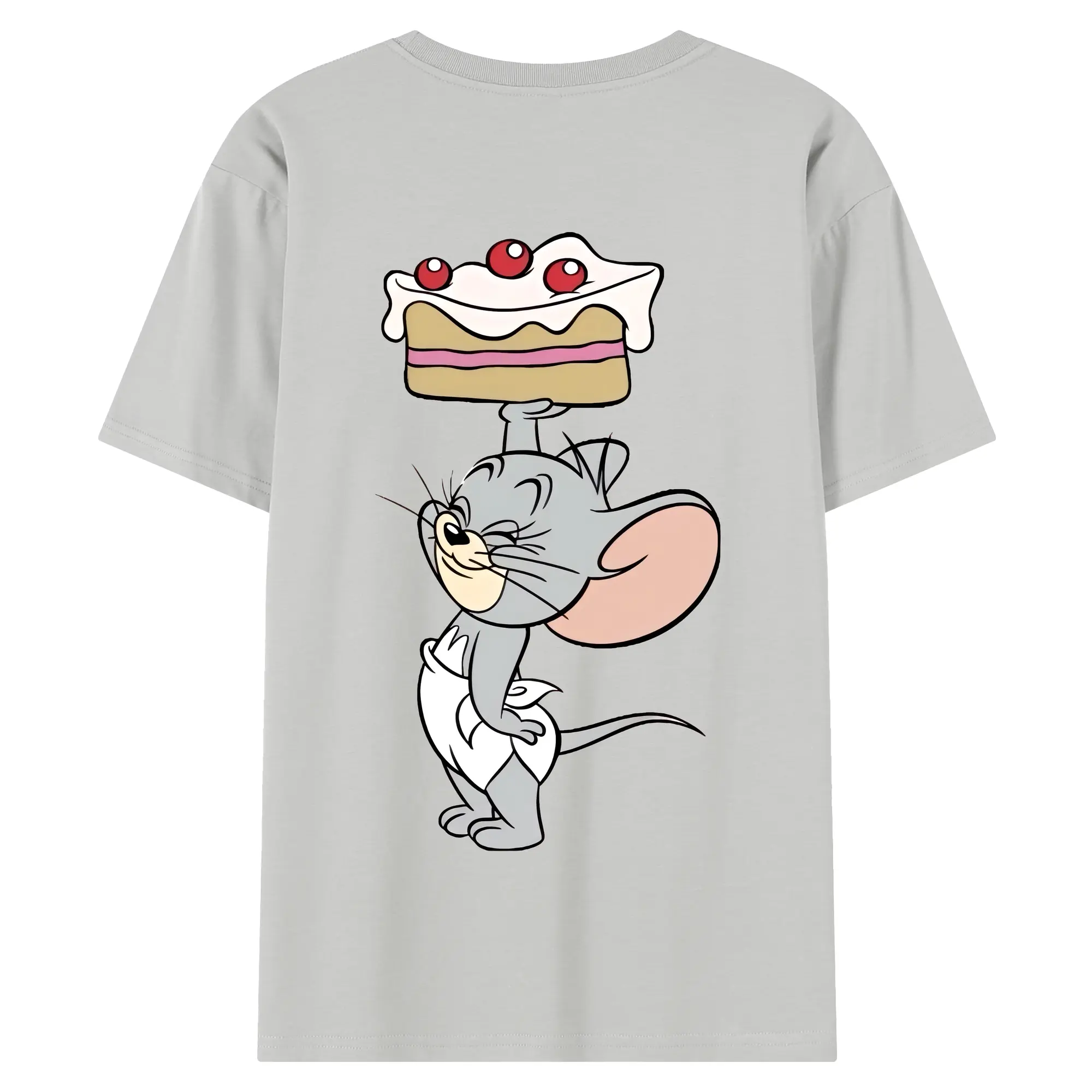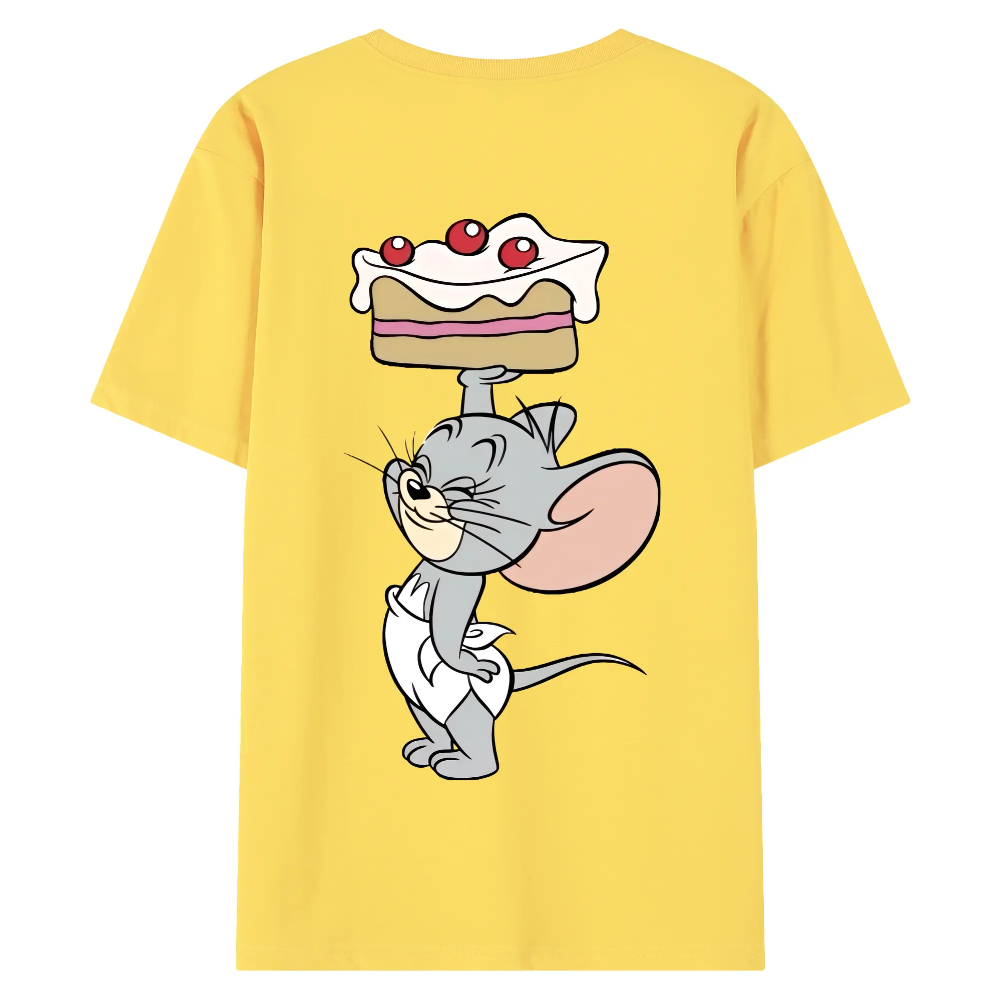 トムとジェリー グッズ トム - 綿100% 半袖Tシャツ ・ バックプリント ・ 快適 通気性 ・ 日常使い 散歩 スポーツ用