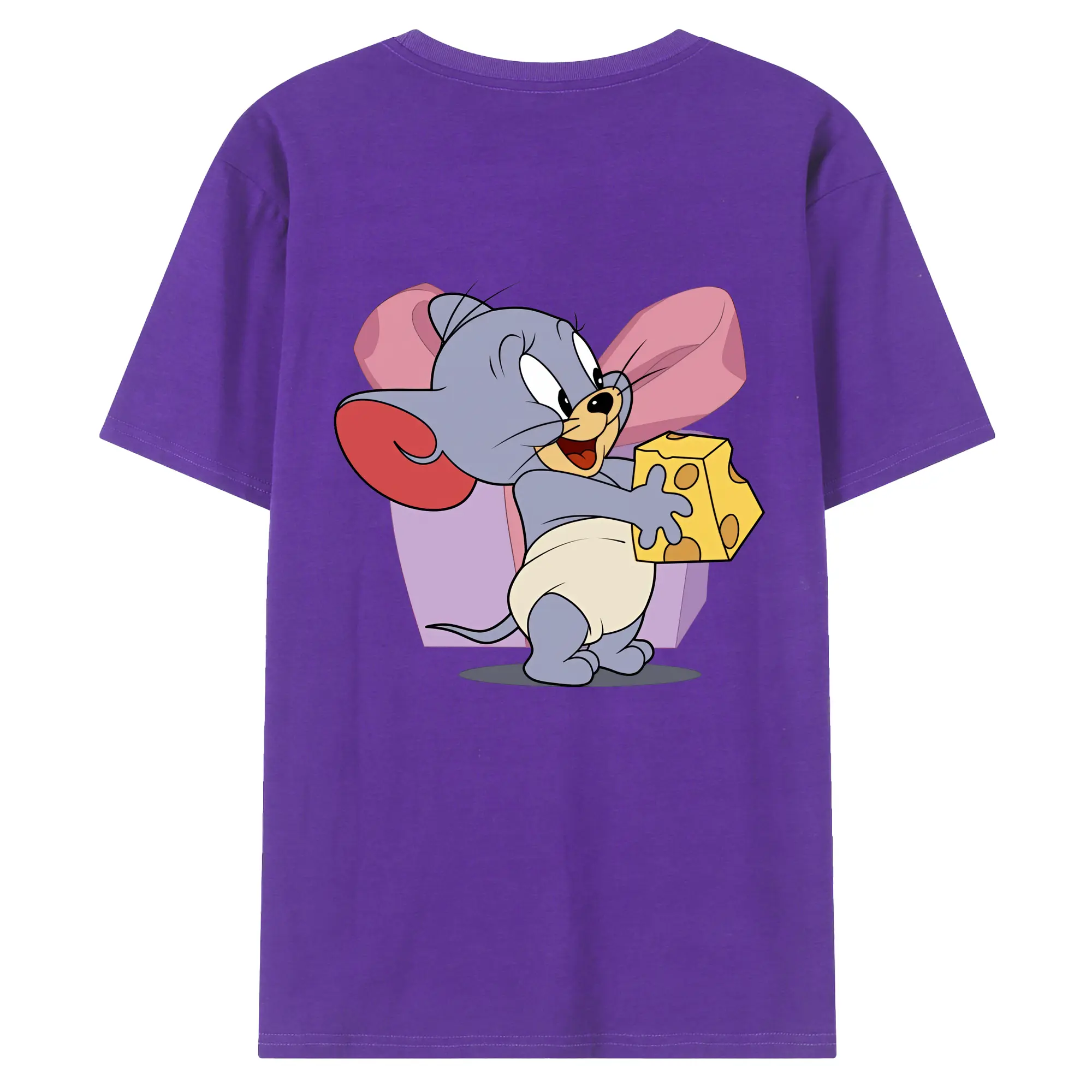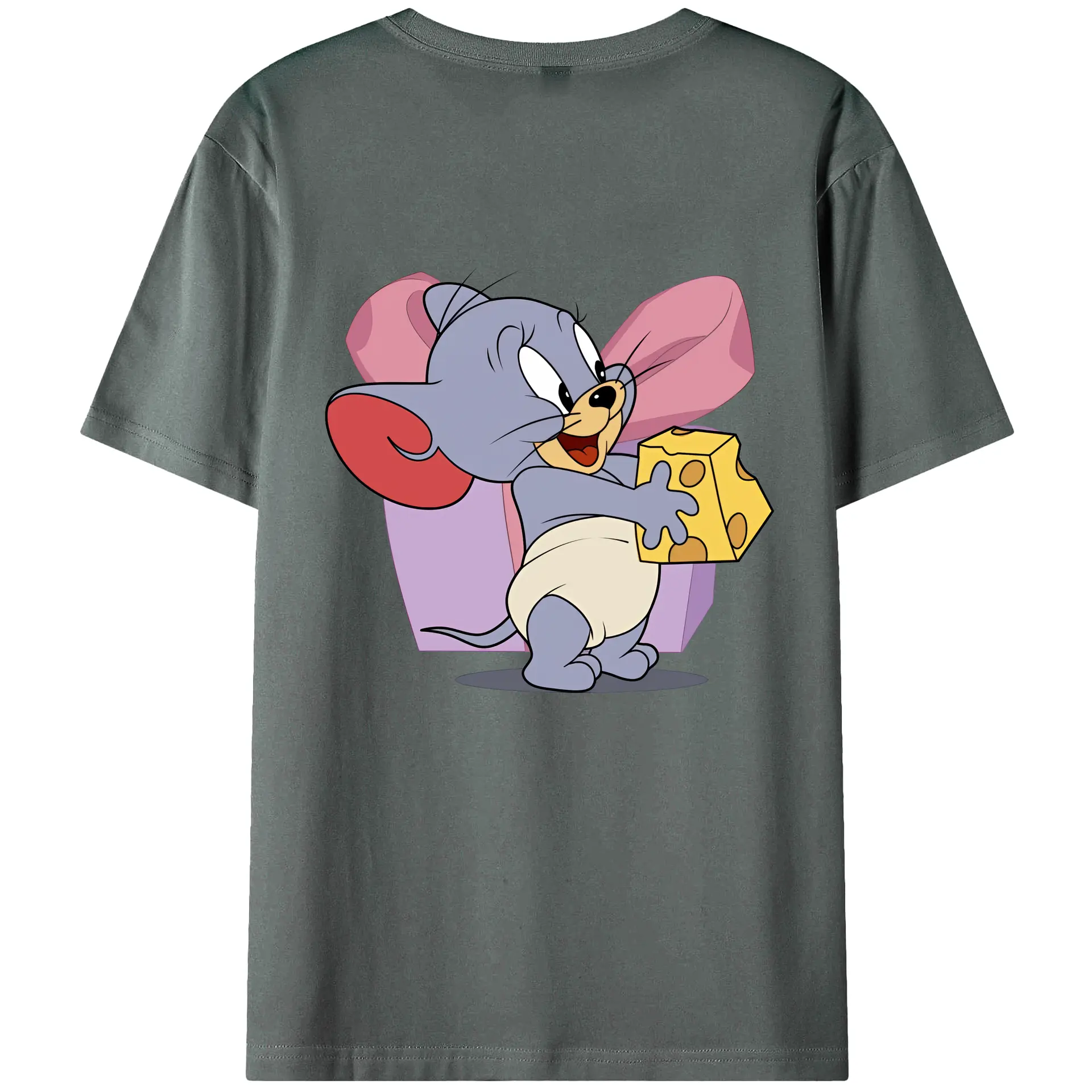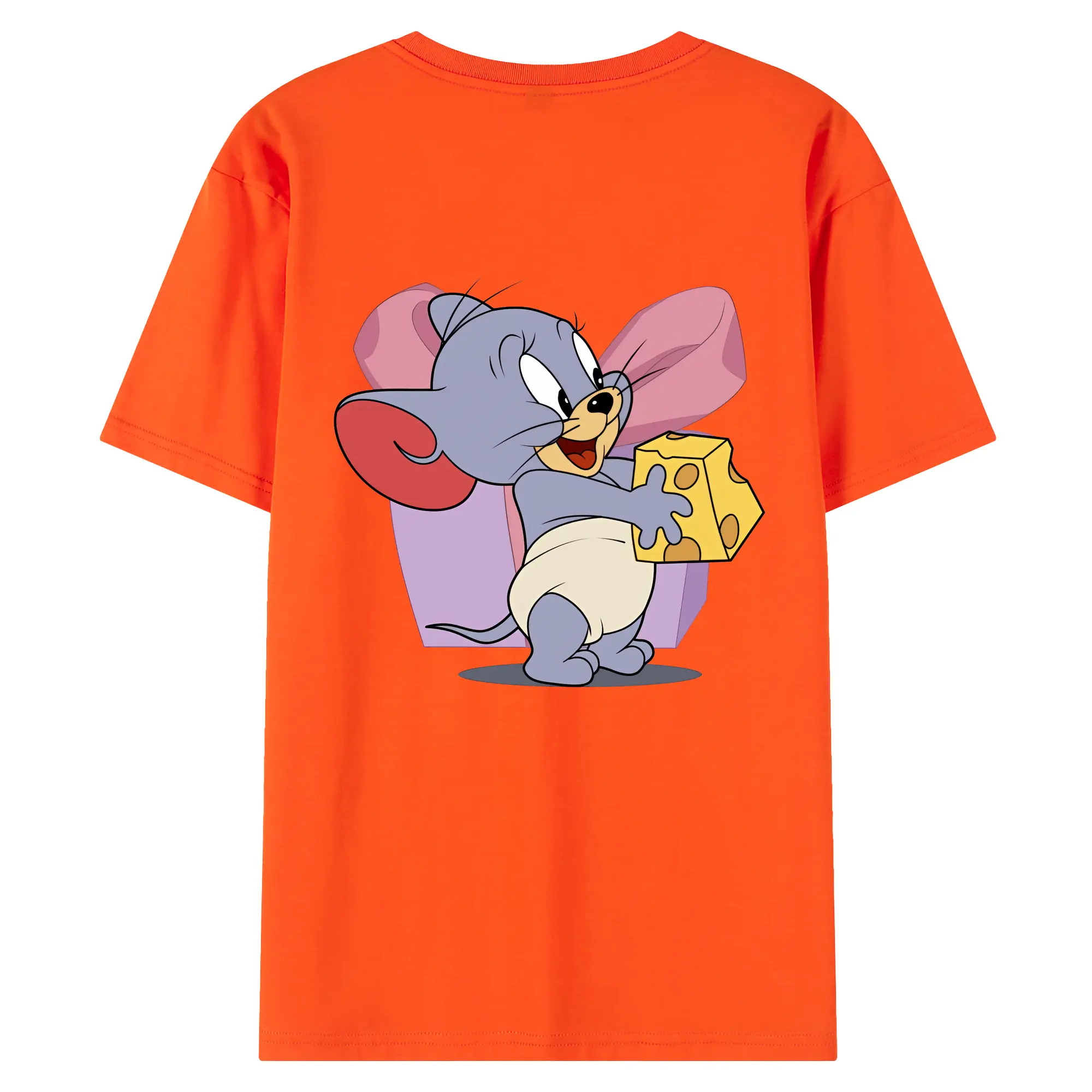 トムとジェリー グッズ タフィー - 綿100% ヴィンテージ風 半袖Tシャツ ・ 背面プリント ・ 柔らか肌触り ・ 通気性 快適 ・ スポーツ カジュアル 外出用