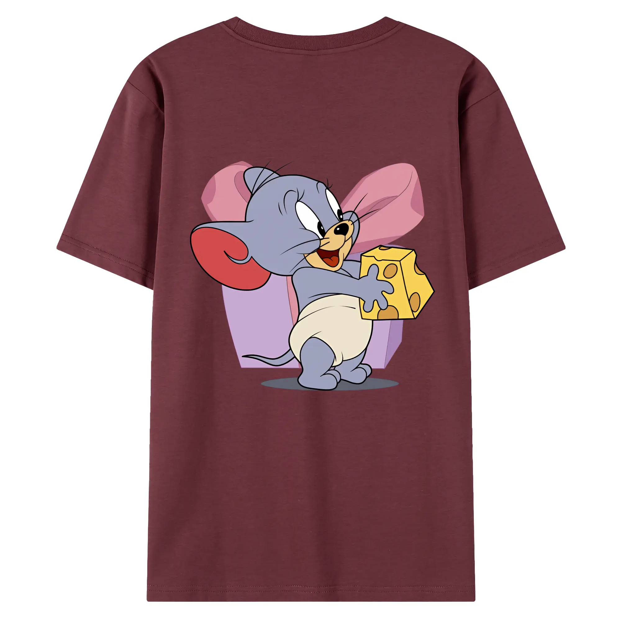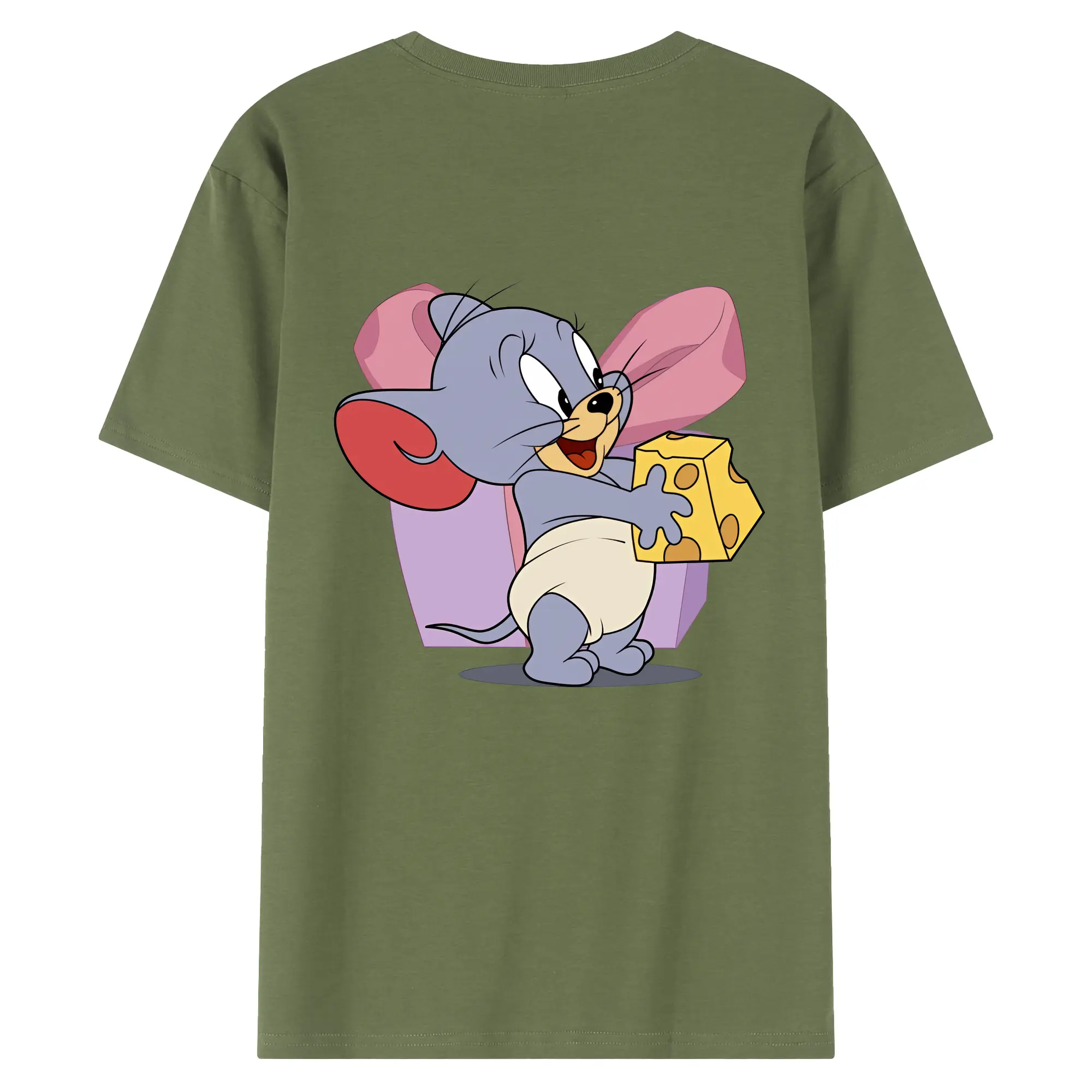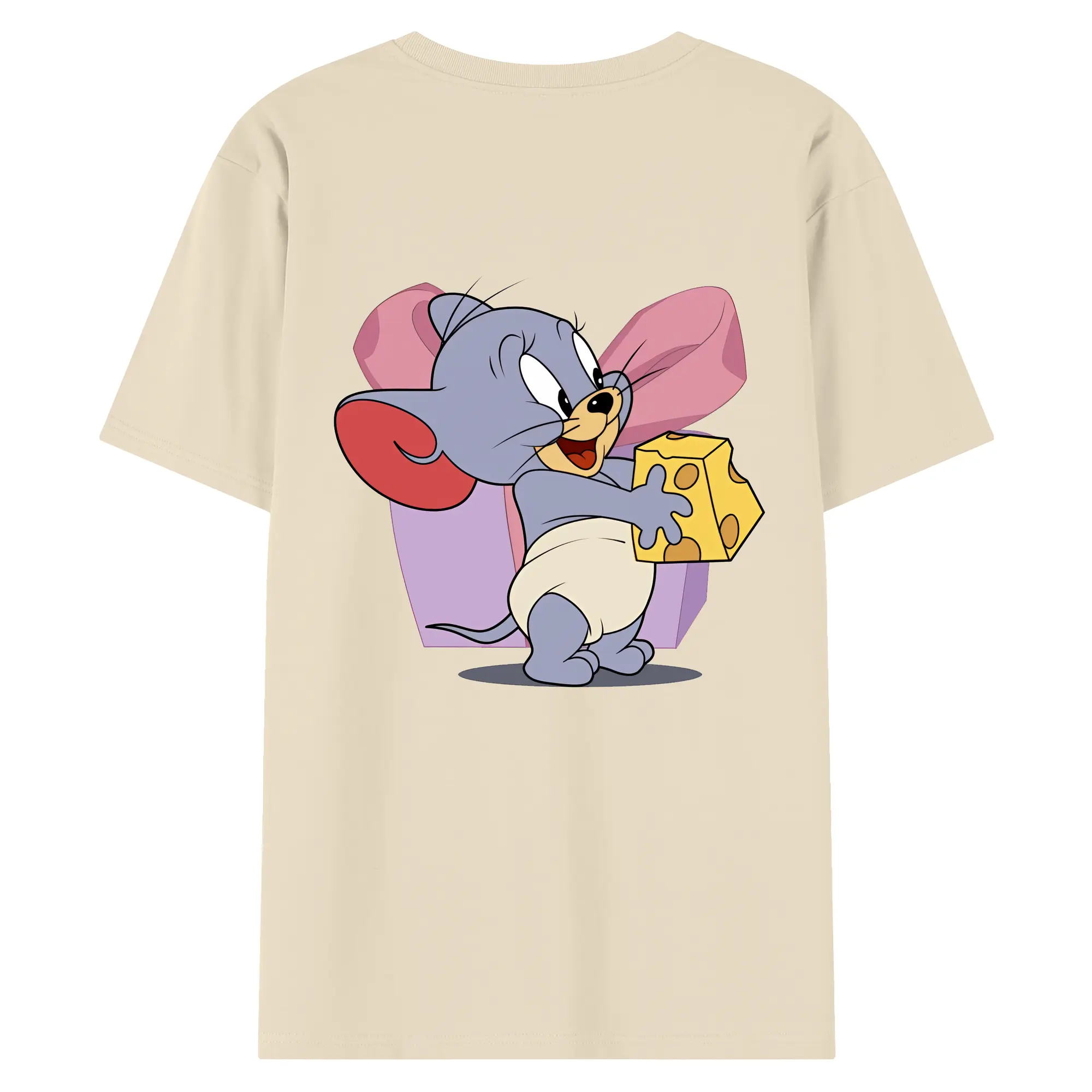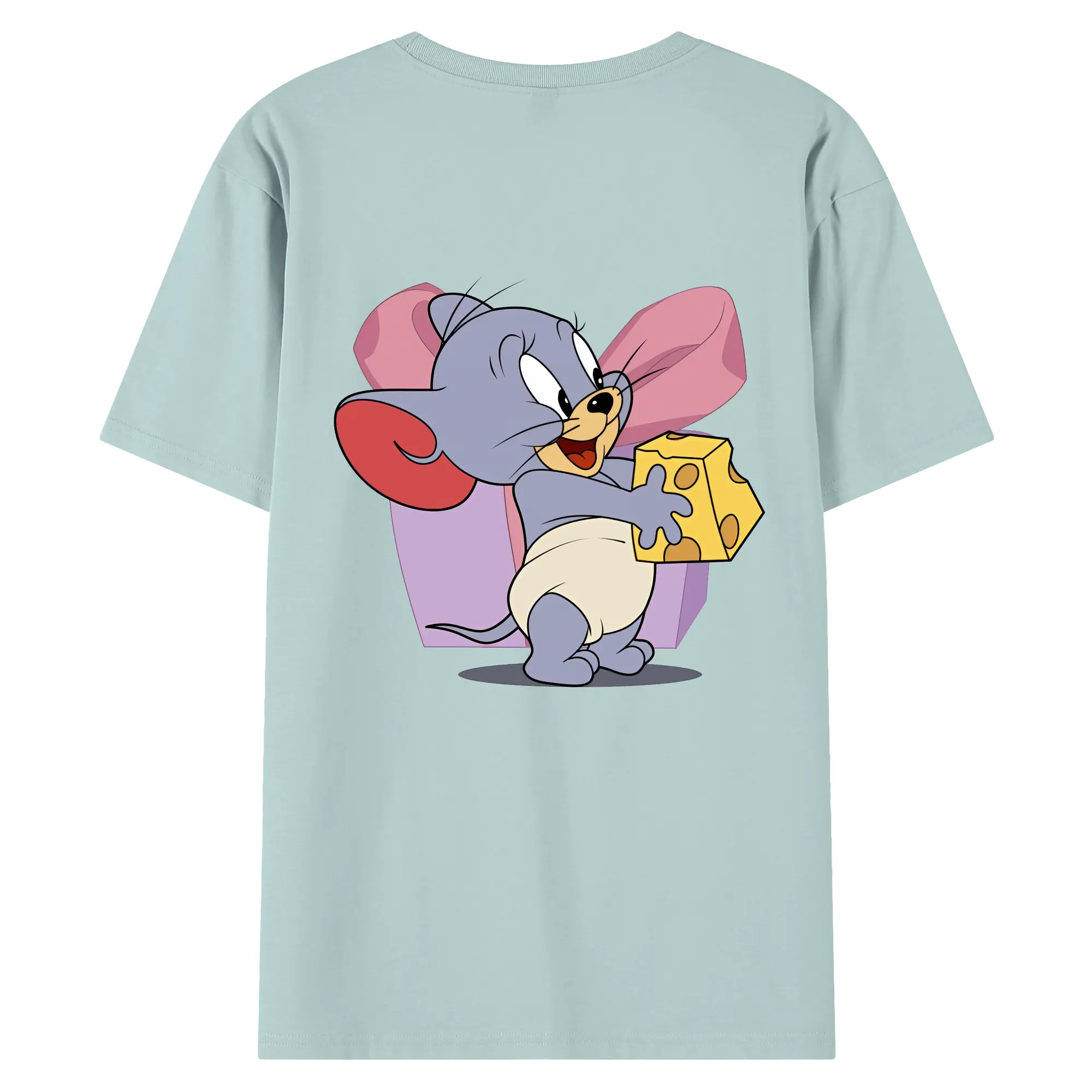 トムとジェリー グッズ タフィー - 綿100% ヴィンテージ風 半袖Tシャツ ・ 背面プリント ・ 柔らか肌触り ・ 通気性 快適 ・ スポーツ カジュアル 外出用