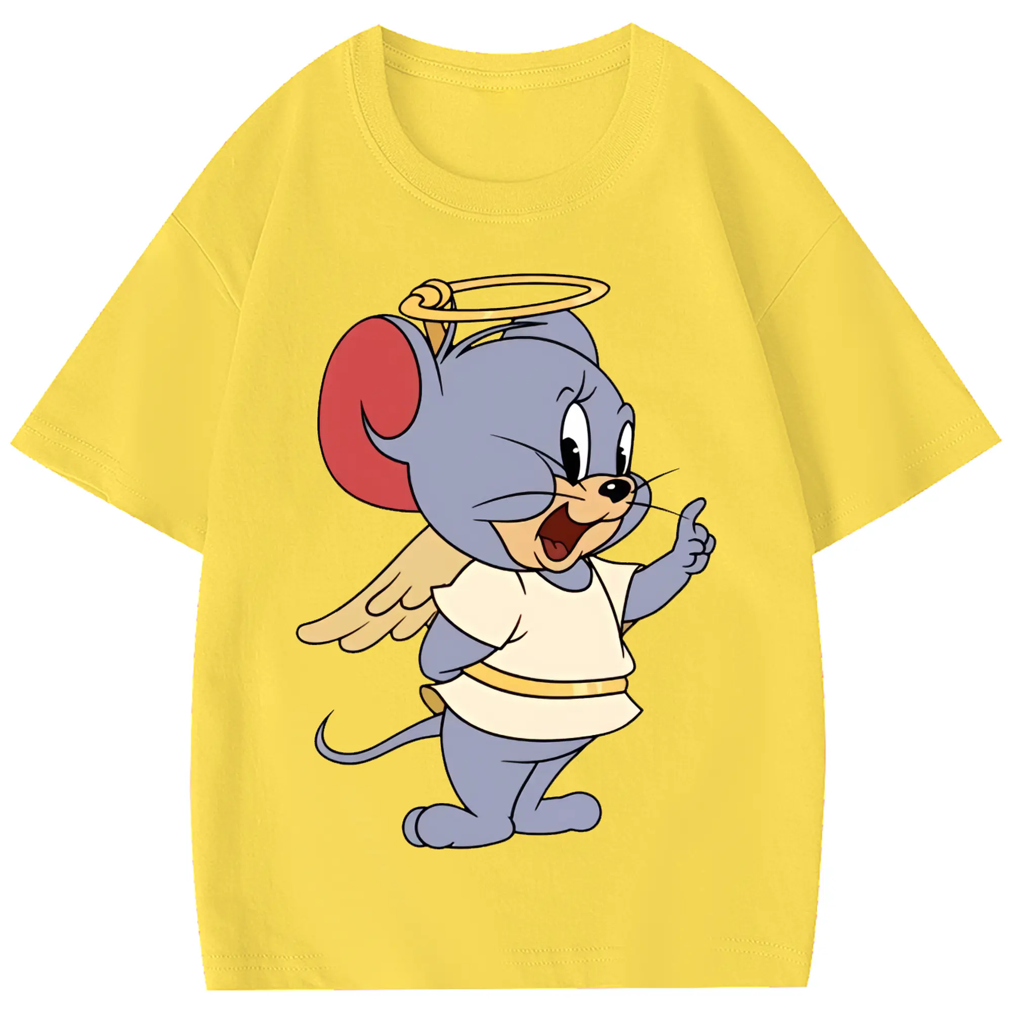 トムとジェリー グッズ タフィー - 綿100% 半袖Tシャツ ・ フロントプリント ・ 快適 通気性 ・ 日常使い 散歩 スポーツ用