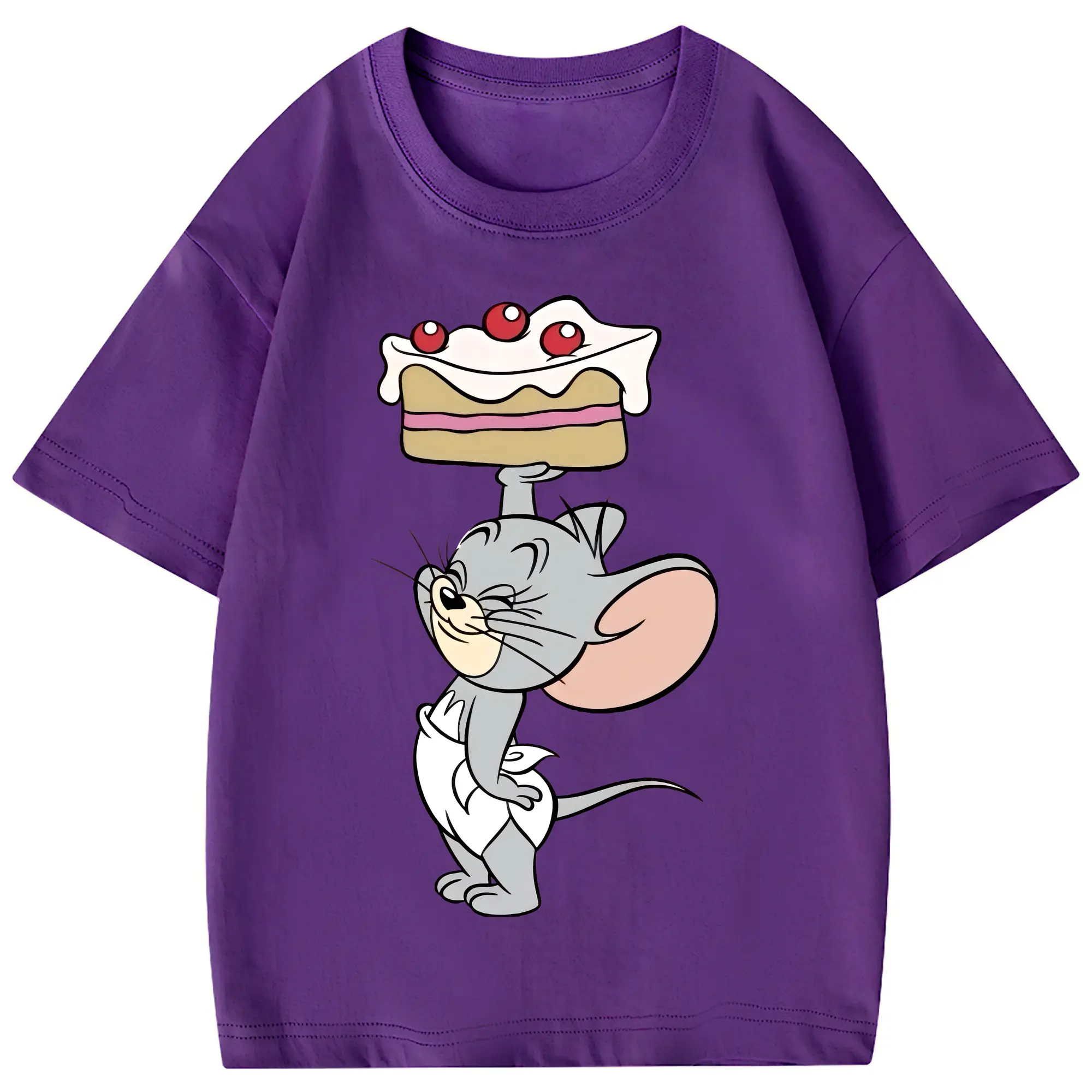 トムとジェリー グッズ タフィー - 綿100% 半袖Tシャツ ・ フロントプリント ・ 快適 通気性 ・ 日常使い 散歩 スポーツ用