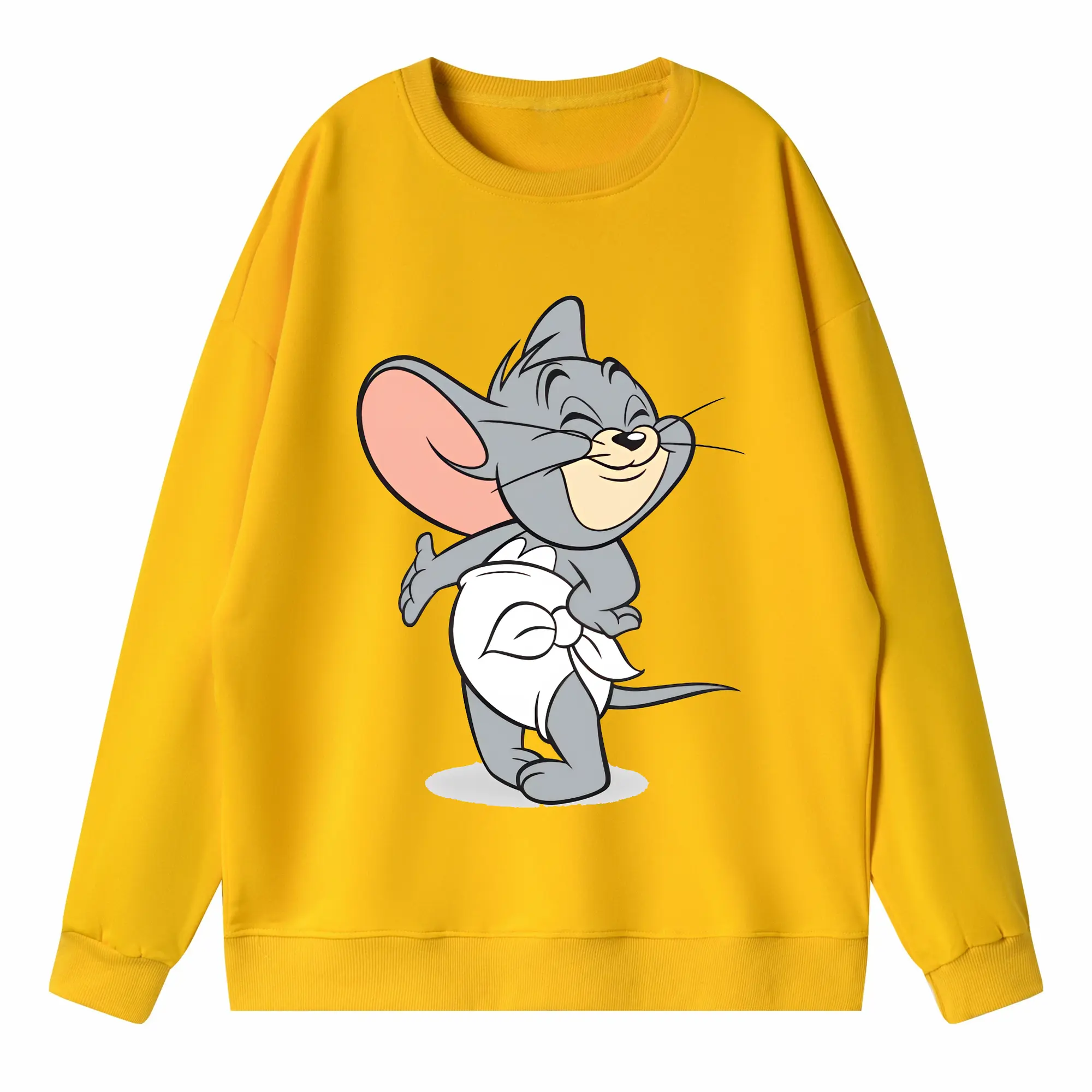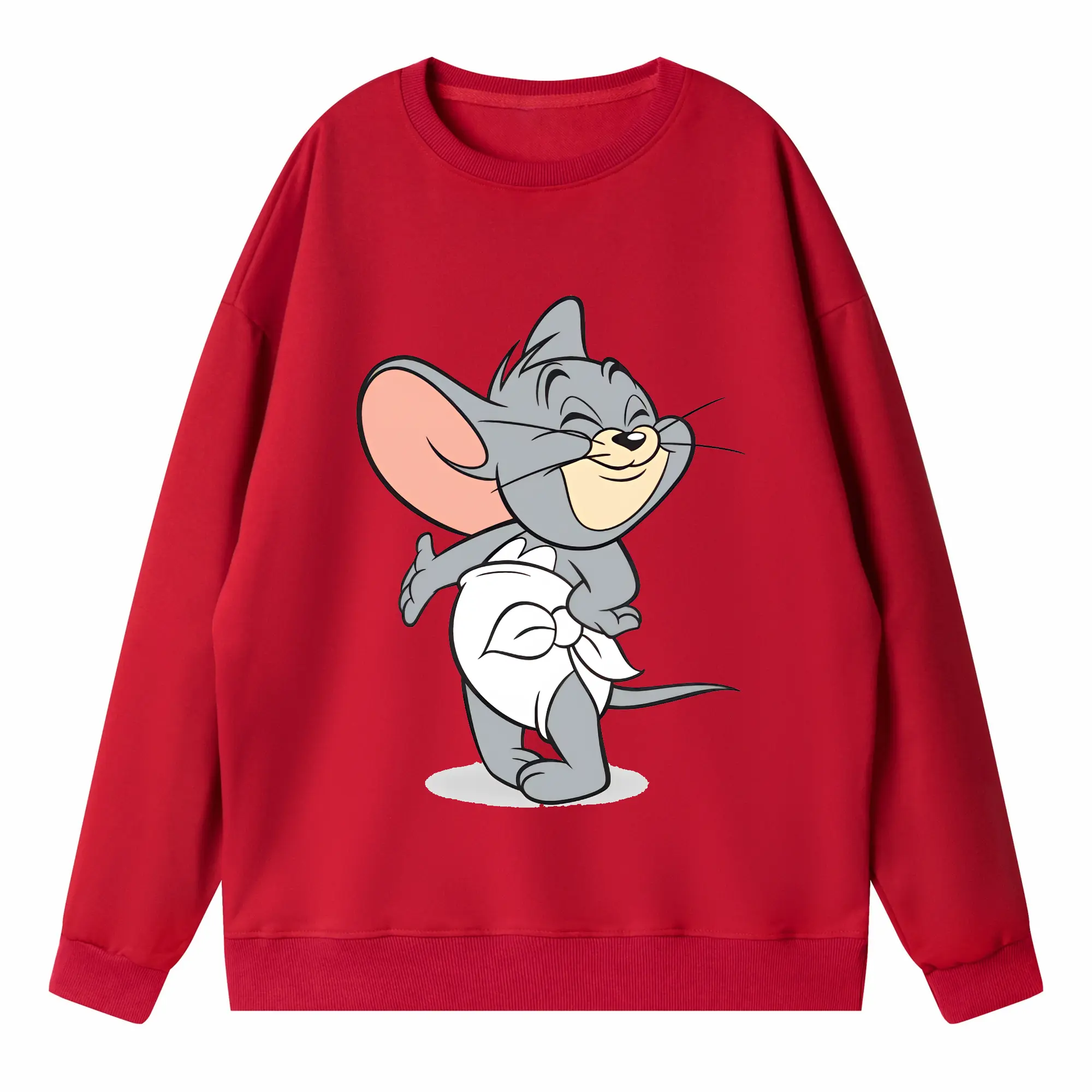 トムとジェリー グッズ タフィー - 高品質 クルーネック スウェット ・ コットン59% ポリエステル41% ・ ユニセックス 長袖 トレーナー ・ カジュアル デイリー スポーツ 散歩用