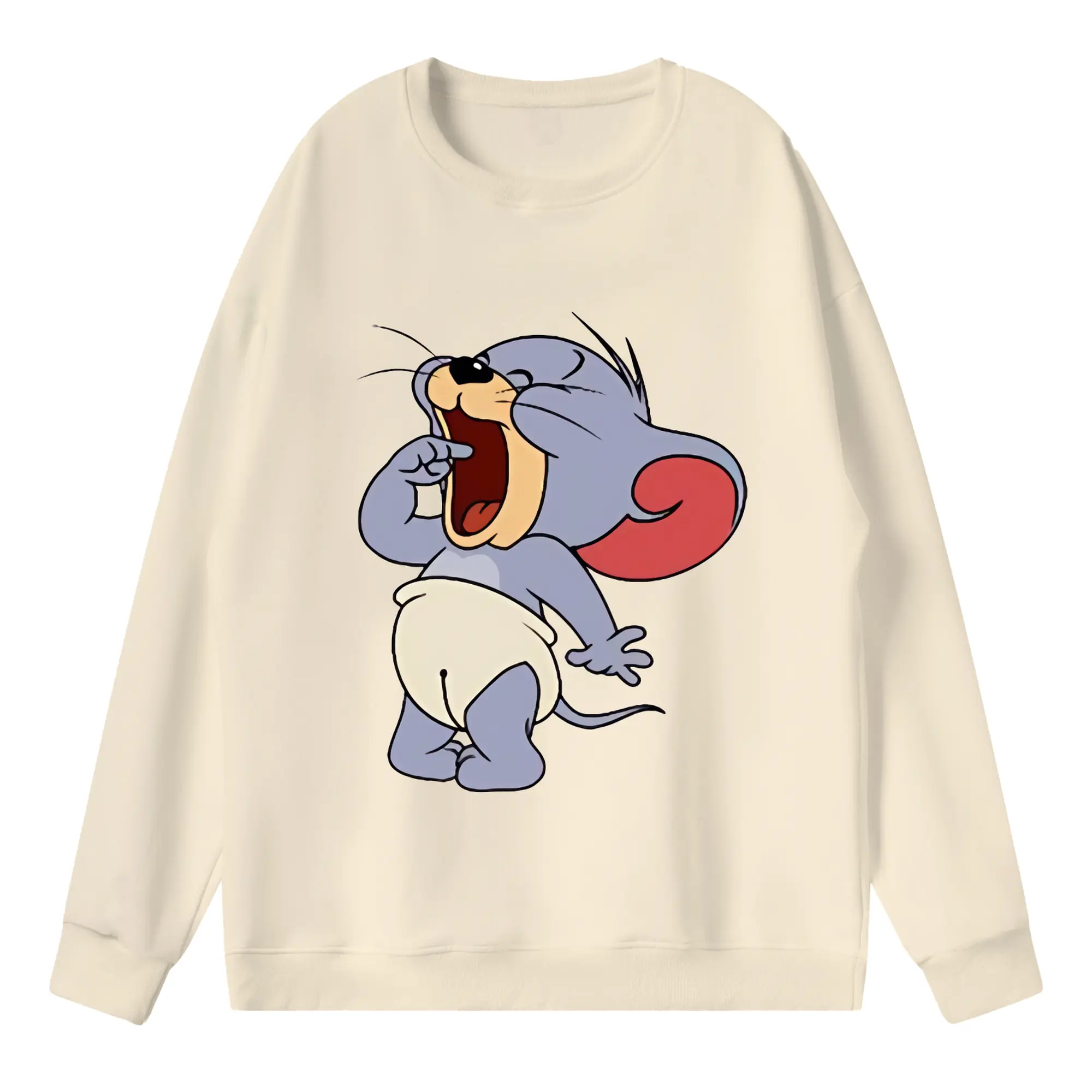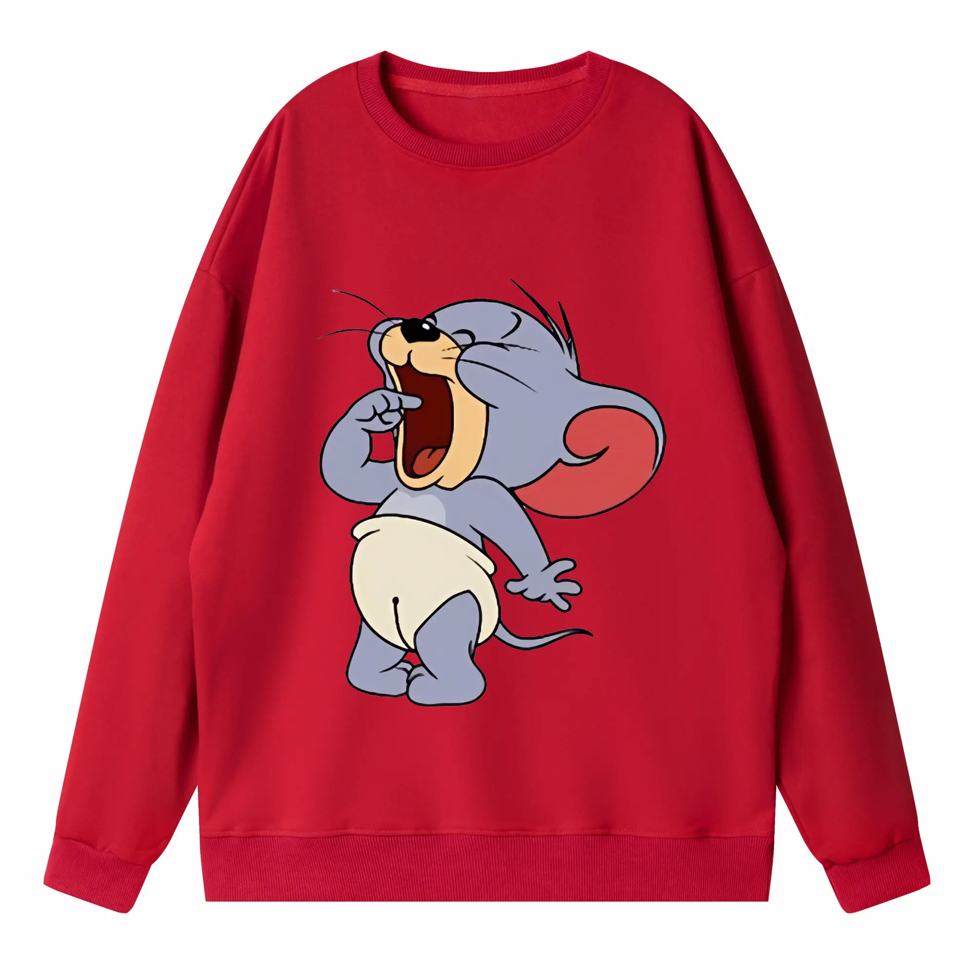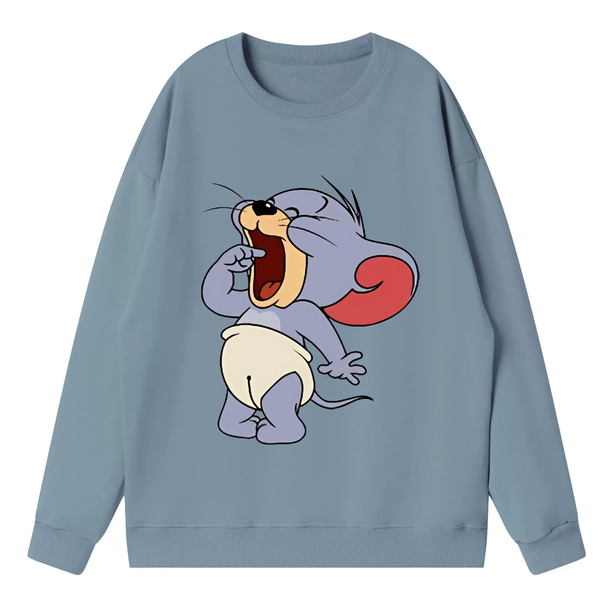 トムとジェリー グッズ タフィー - 高品質 クルーネック スウェット ・ コットン59% ポリエステル41% ・ ユニセックス 長袖 トレーナー ・ カジュアル デイリー スポーツ 散歩用