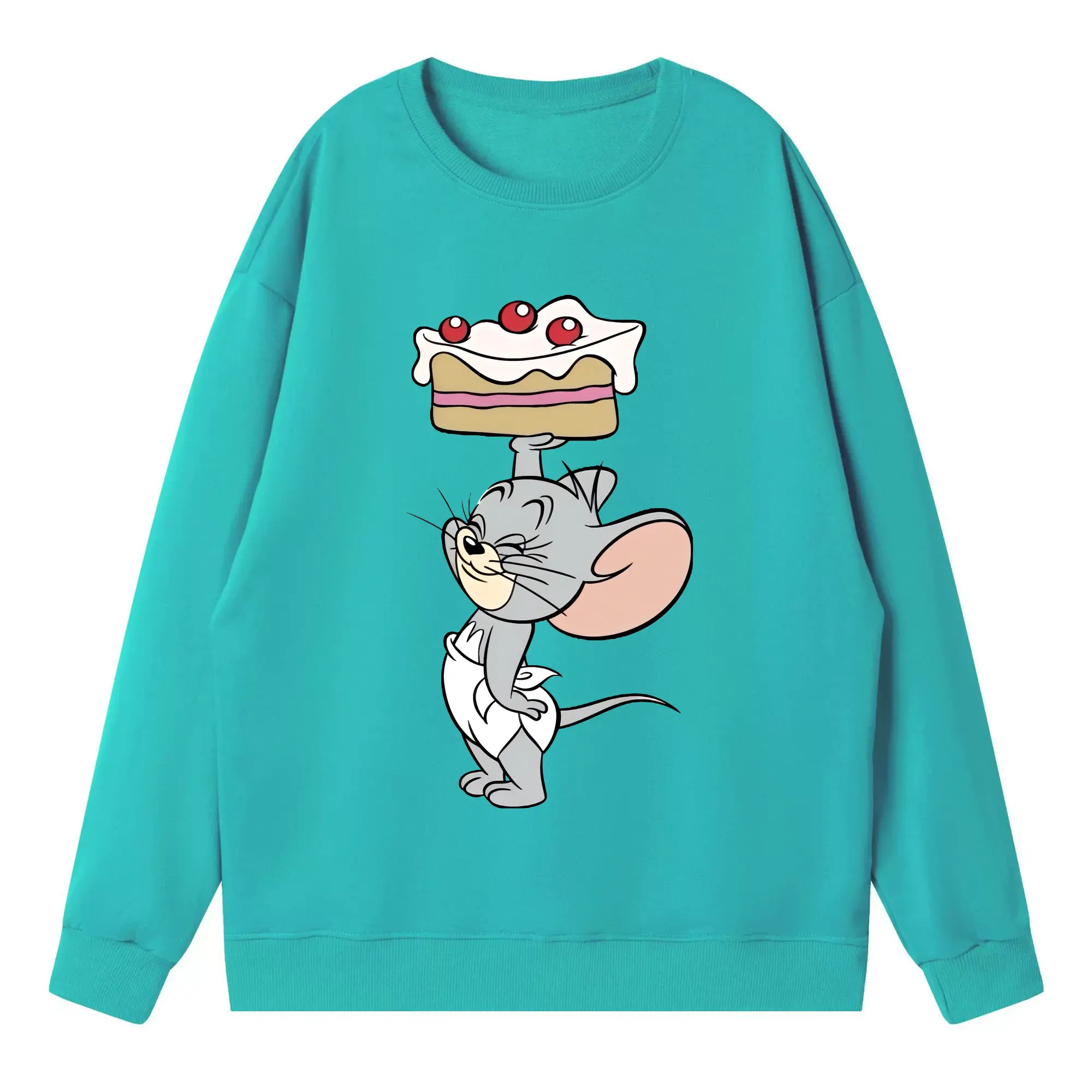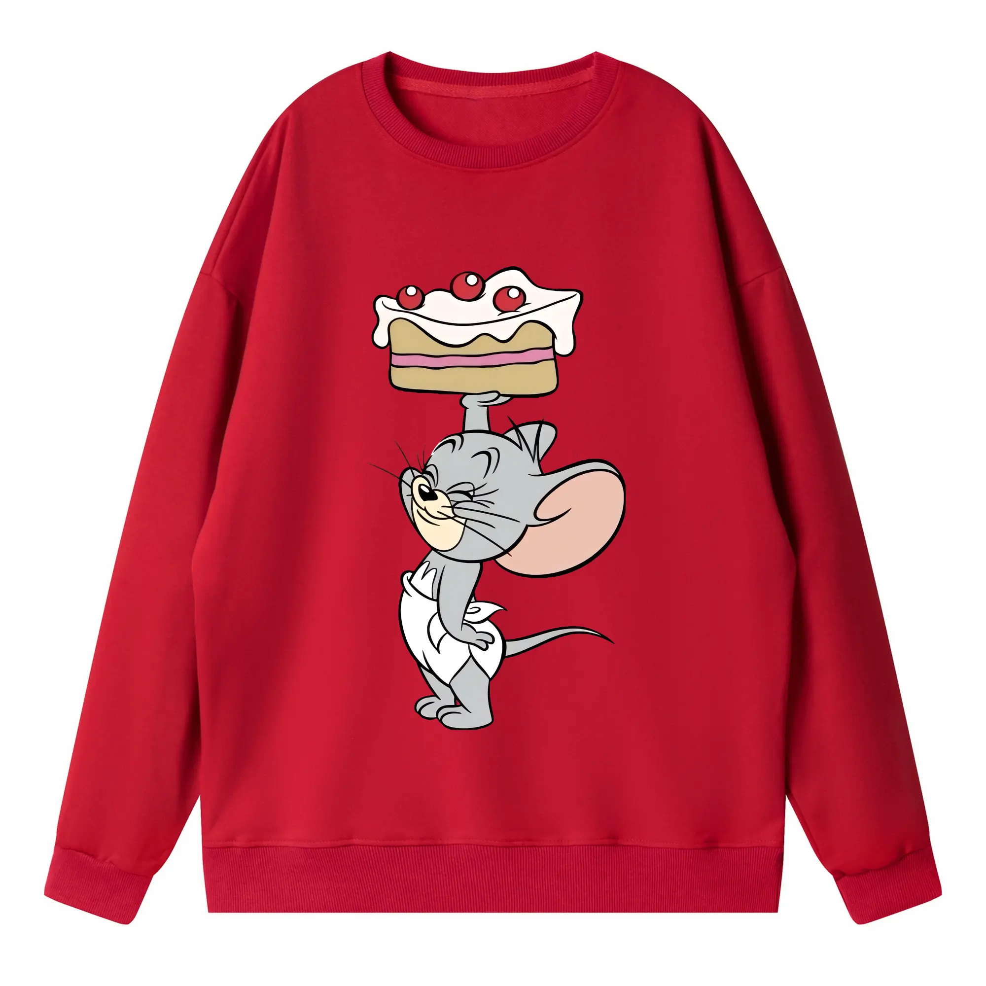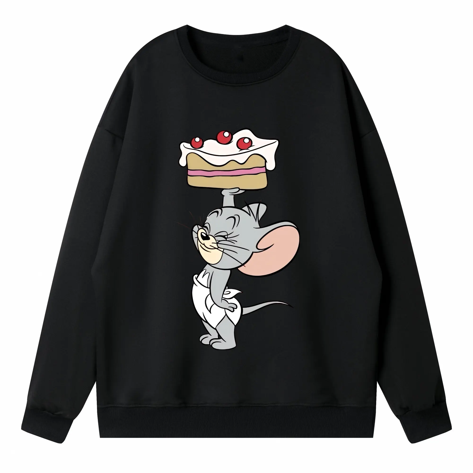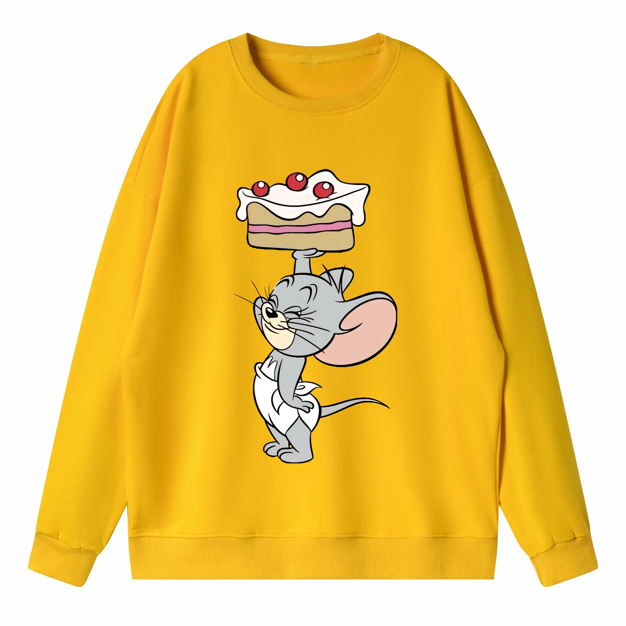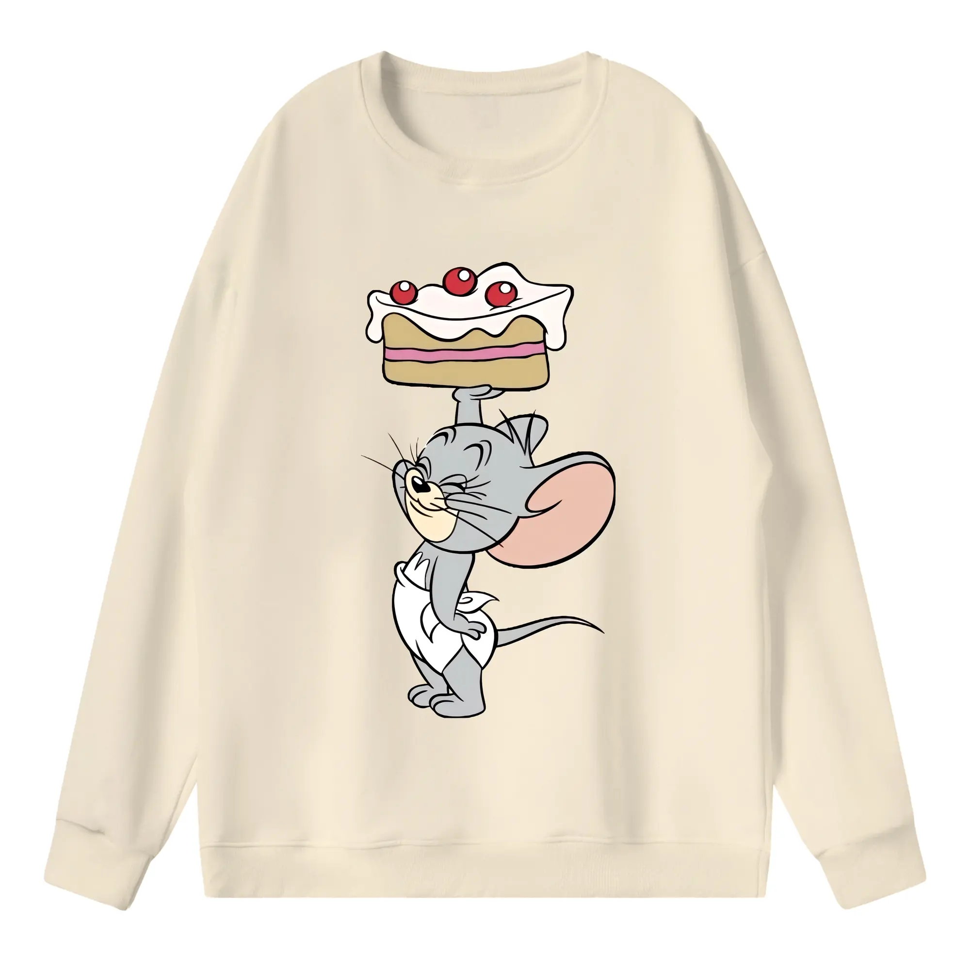 トムとジェリー グッズ タフィー - 高品質 クルーネック スウェット ・ コットン59% ポリエステル41% ・ ユニセックス 長袖 トレーナー ・ カジュアル デイリー スポーツ 散歩用
