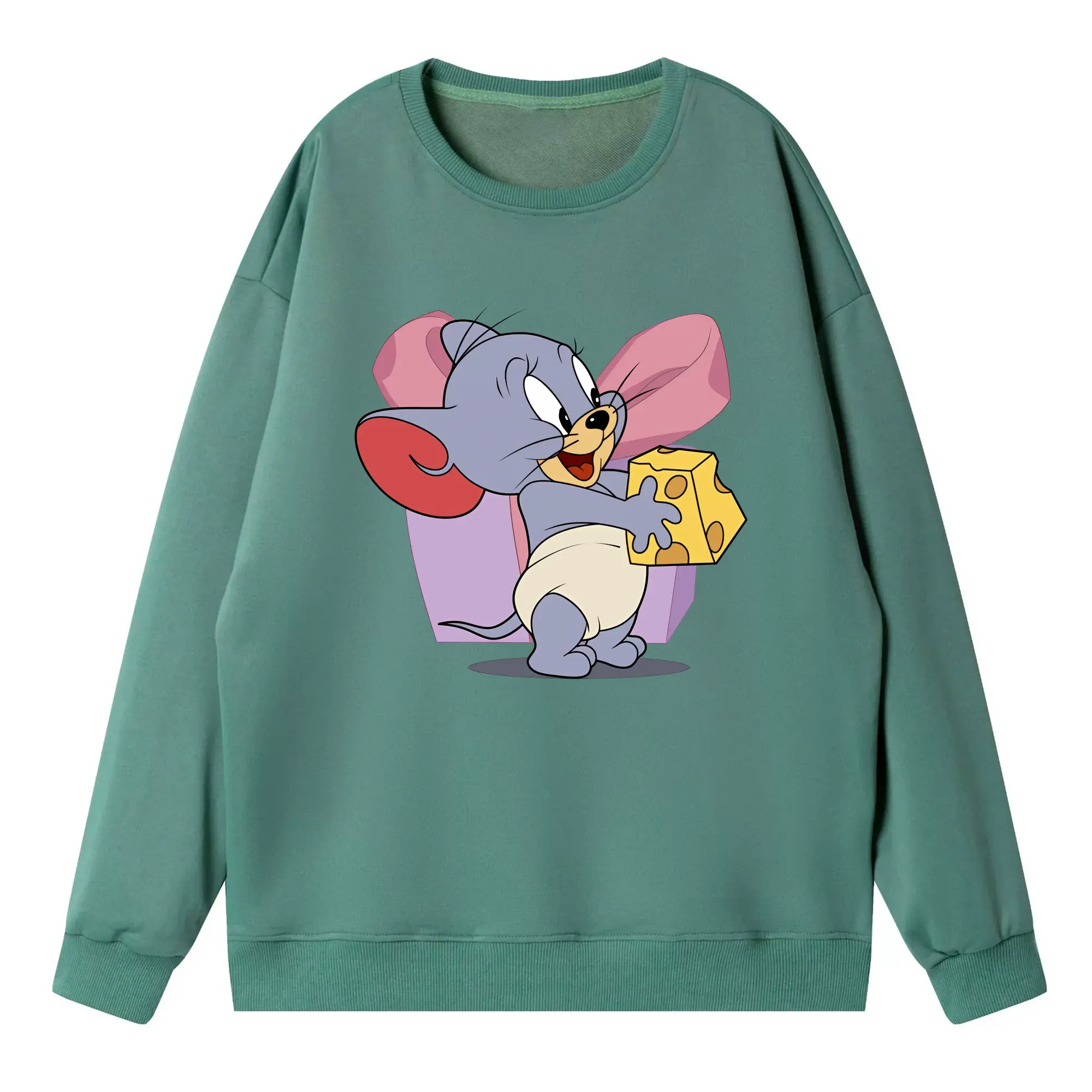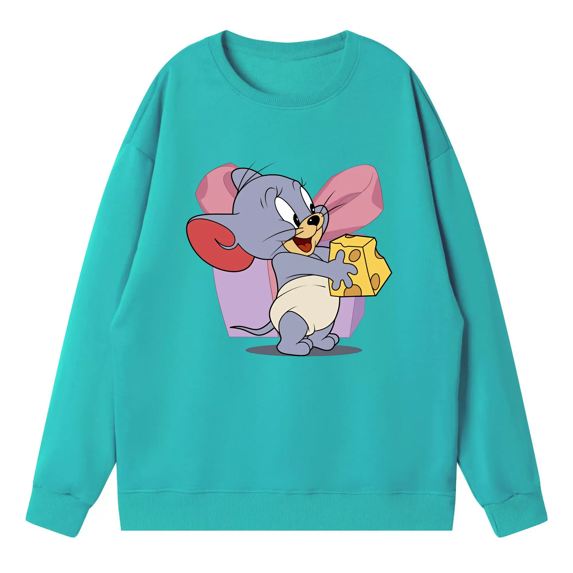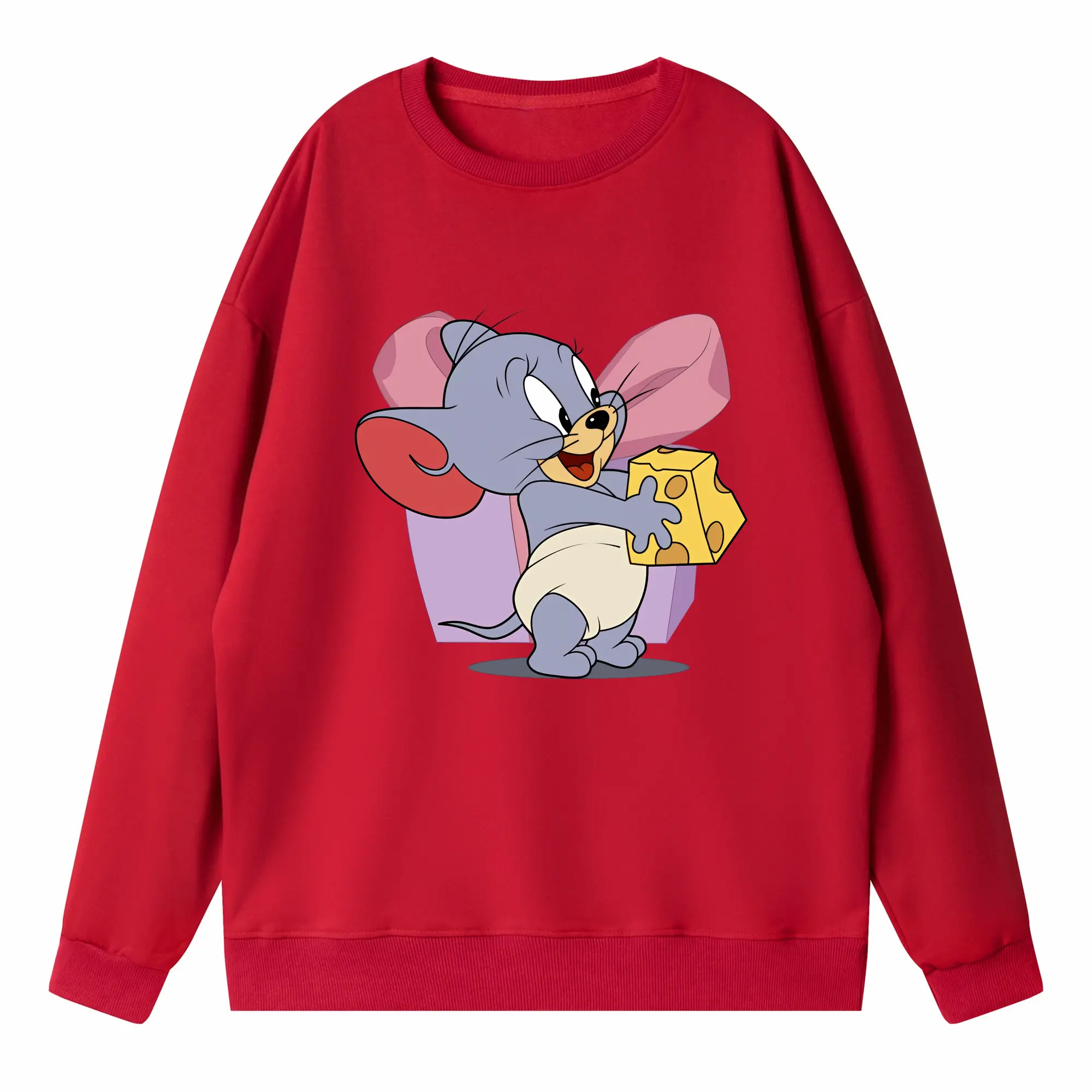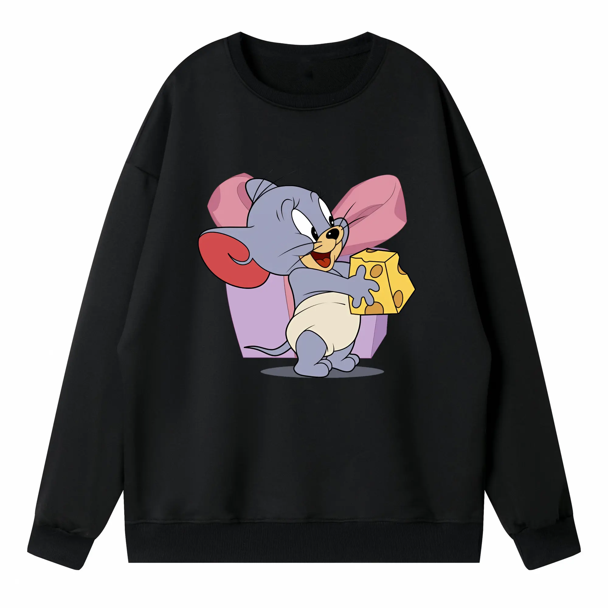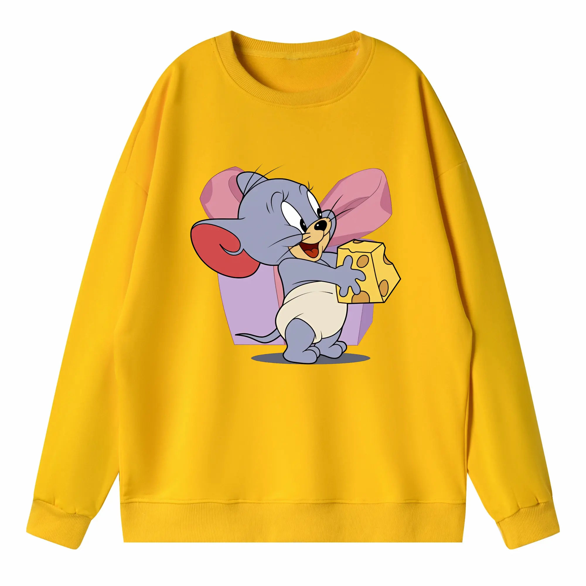 トムとジェリー グッズ タフィー - 高品質 クルーネック スウェット ・ コットン59% ポリエステル41% ・ ユニセックス 長袖 トレーナー ・ カジュアル デイリー スポーツ 散歩用