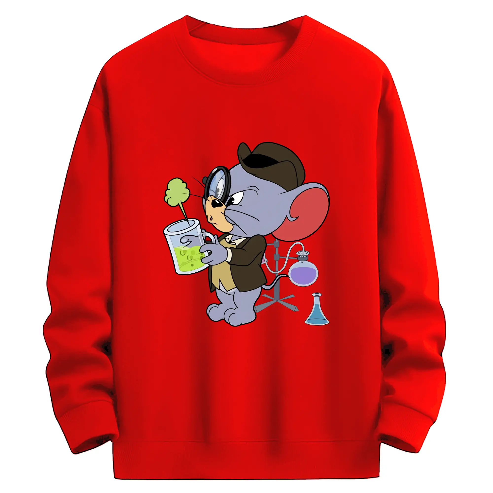 トムとジェリー グッズ タフィー - 高品質 クルーネック スウェット ・ コットン59% ポリエステル41% ・ ユニセックス 長袖 トレーナー ・ カジュアル デイリー スポーツ 散歩用