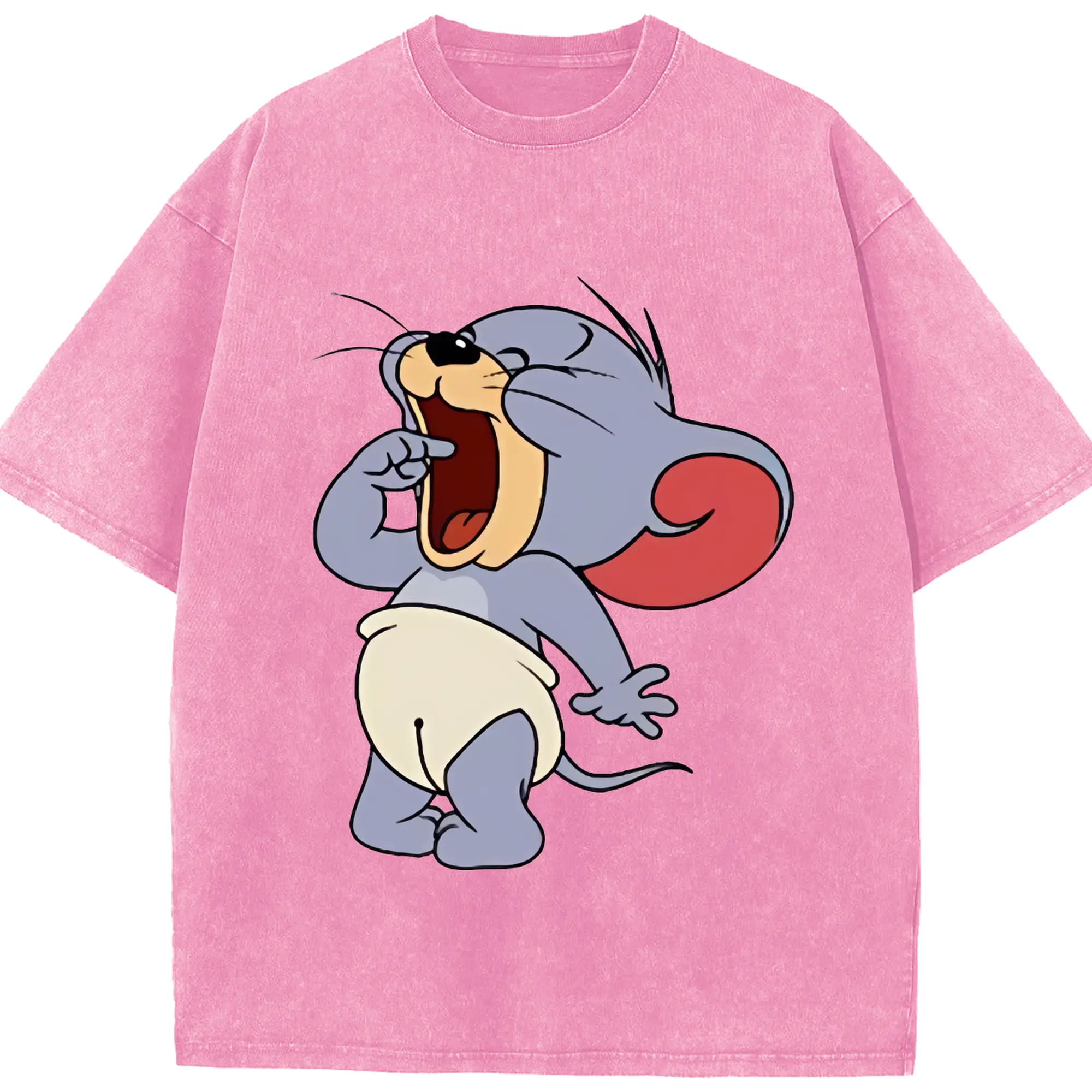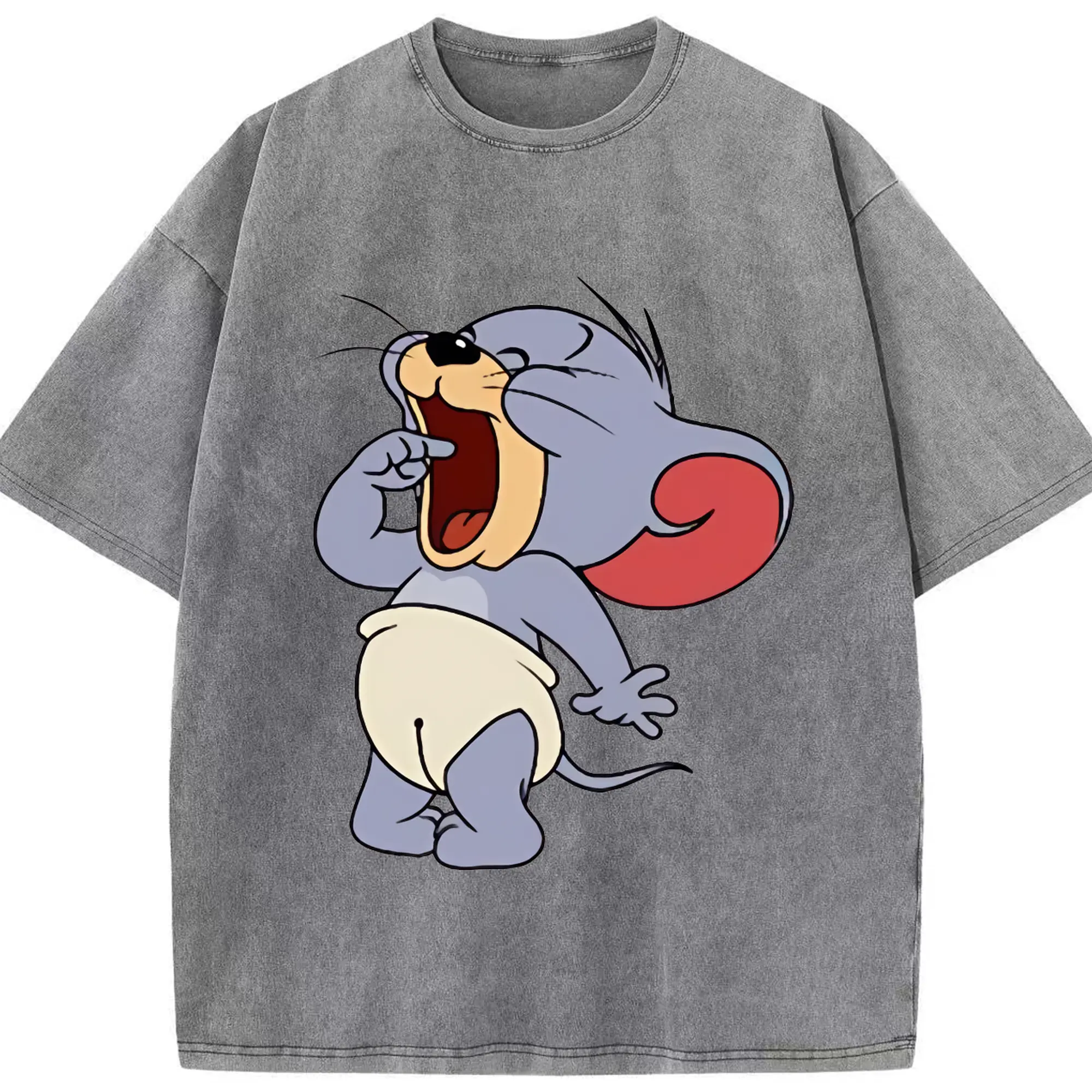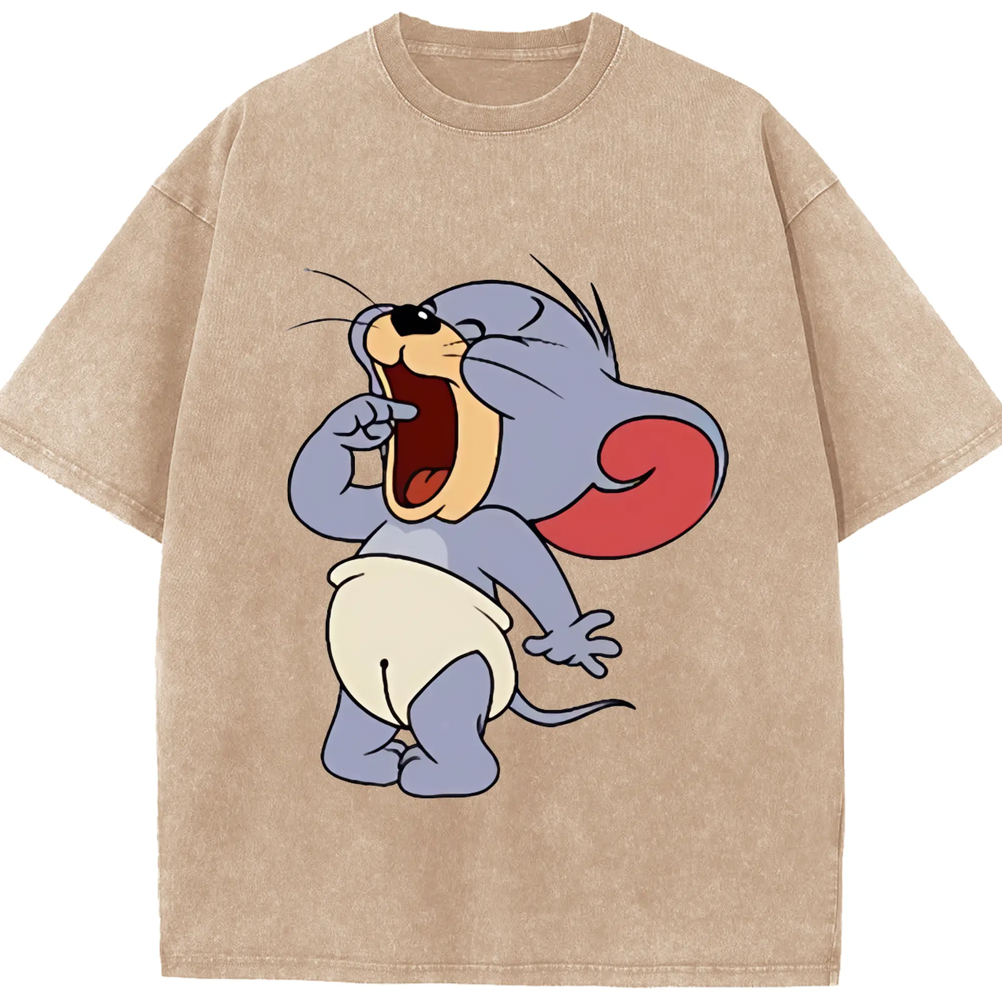 トムとジェリー グッズ タフィー - 綿100% ヴィンテージ風 半袖Tシャツ ・ 背面プリント ・ 柔らか肌触り ・ 通気性 快適 ・ スポーツ カジュアル 外出用