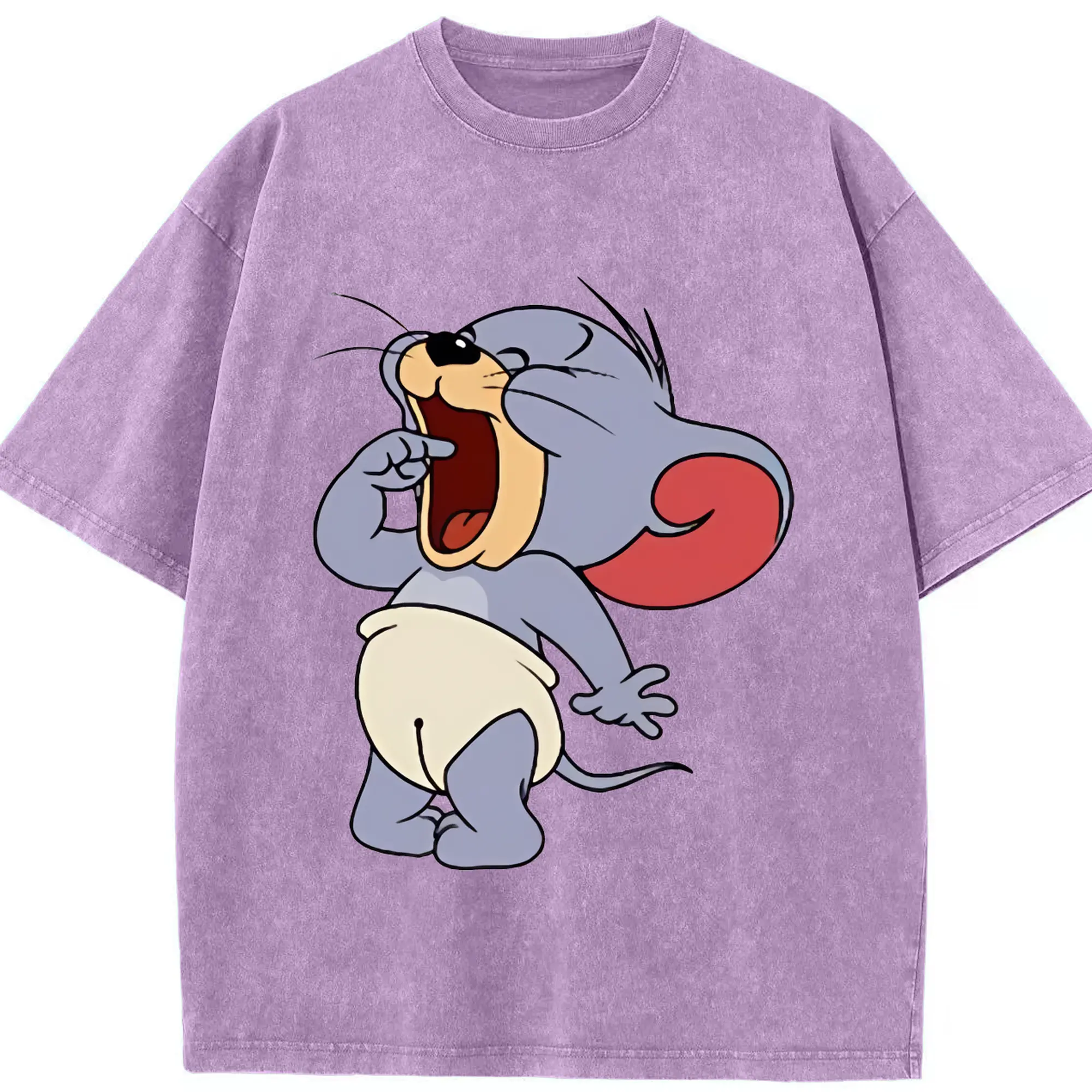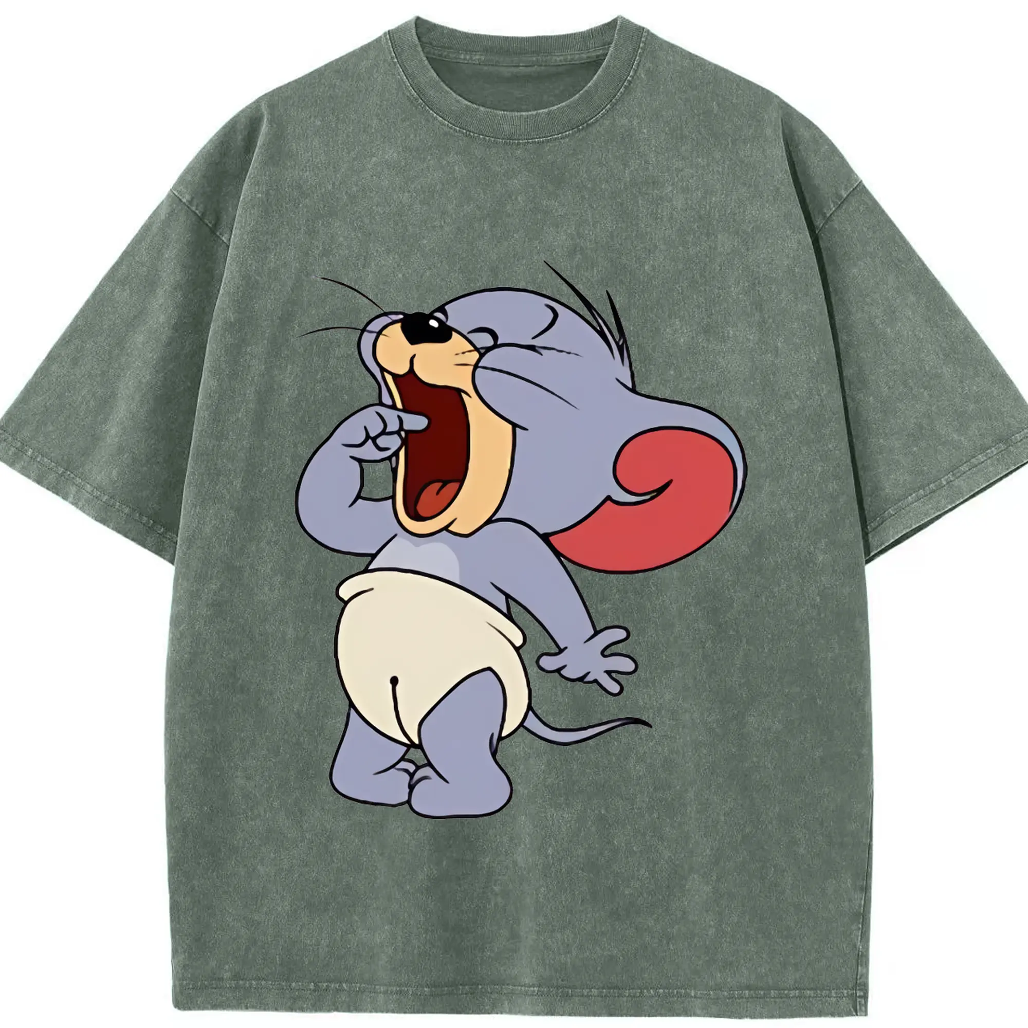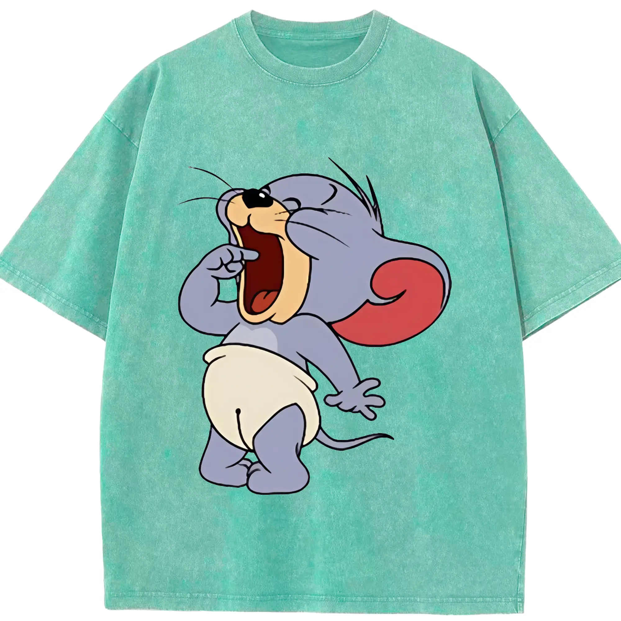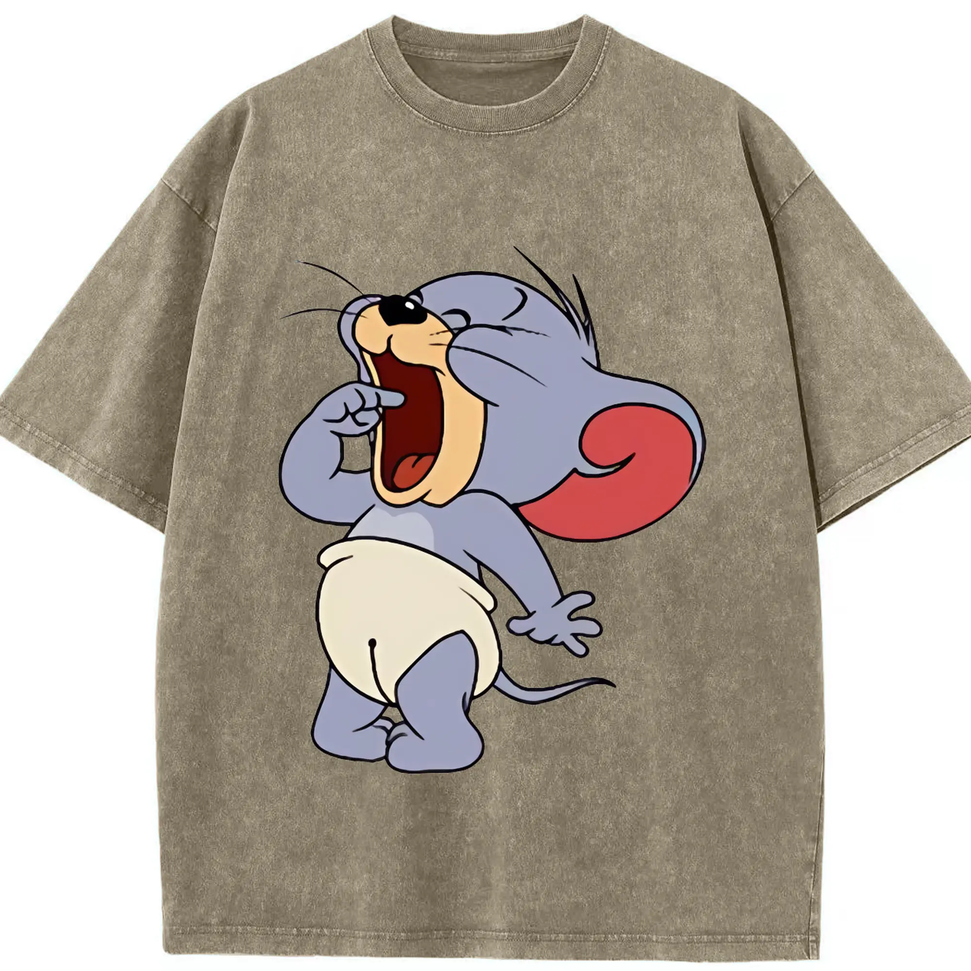 トムとジェリー グッズ タフィー - 綿100% ヴィンテージ風 半袖Tシャツ ・ 背面プリント ・ 柔らか肌触り ・ 通気性 快適 ・ スポーツ カジュアル 外出用