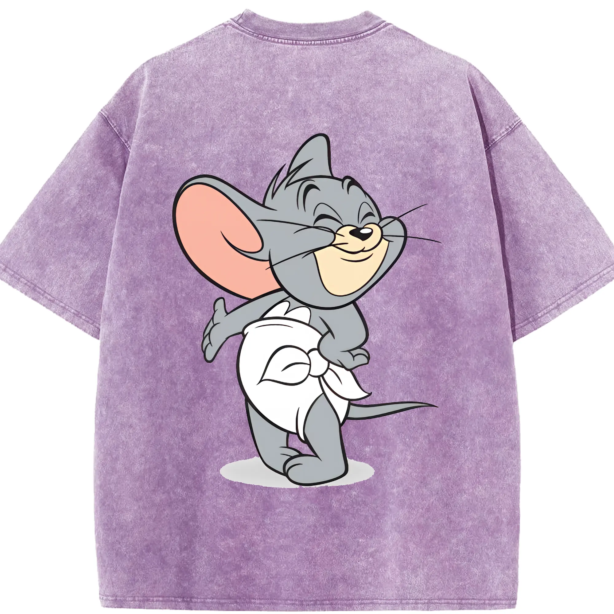 トムとジェリー グッズ タフィー - 綿100% 半袖Tシャツ ・ バックプリント ・ 快適 通気性 ・ 日常使い 散歩 スポーツ用