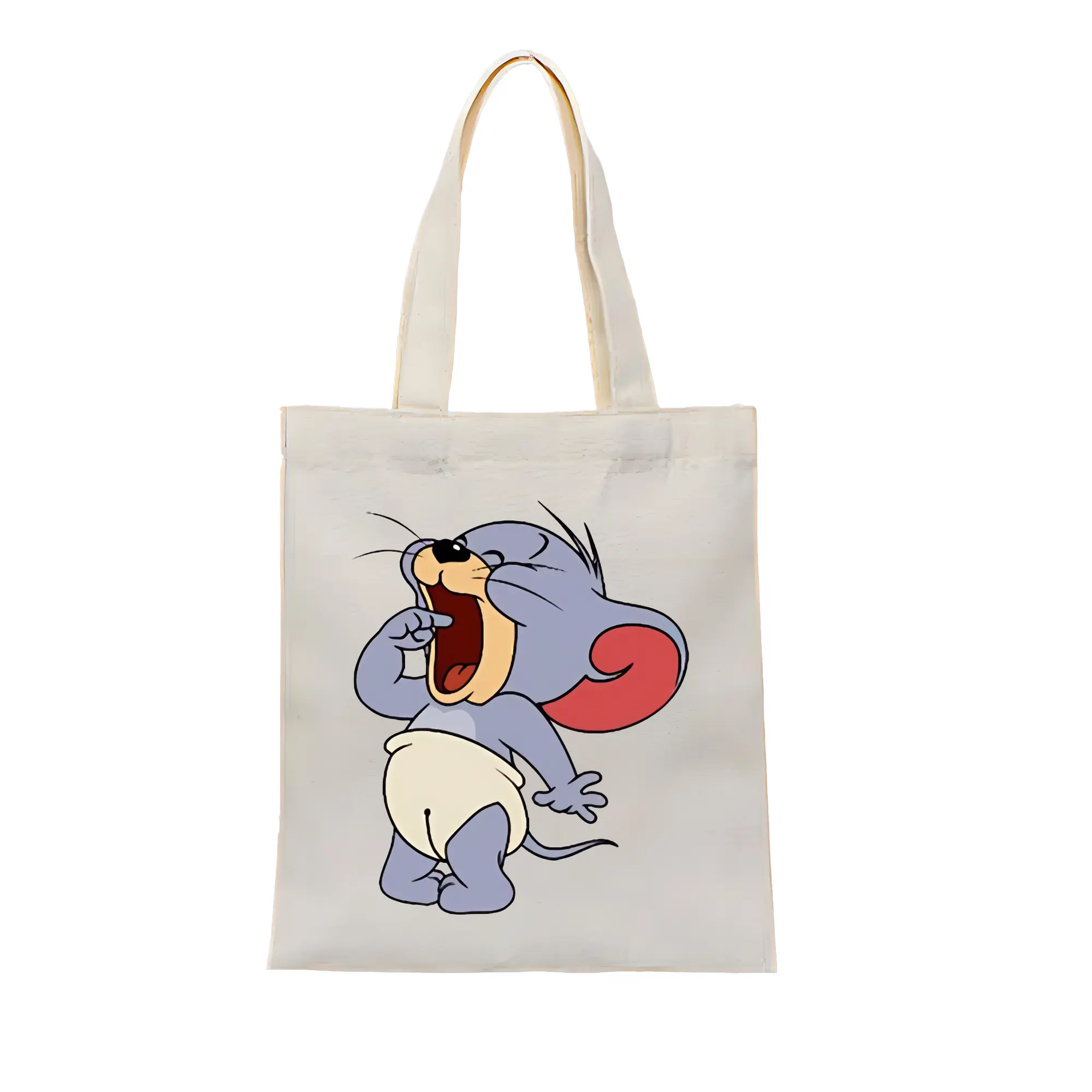 トムとジェリー グッズ タフィー - 縦型キャンバス手提げバッグ(トートバッグ) ・ キャンバス素材 ・ ショッピング用 ・ 軽量 丈夫 お手入れ簡単